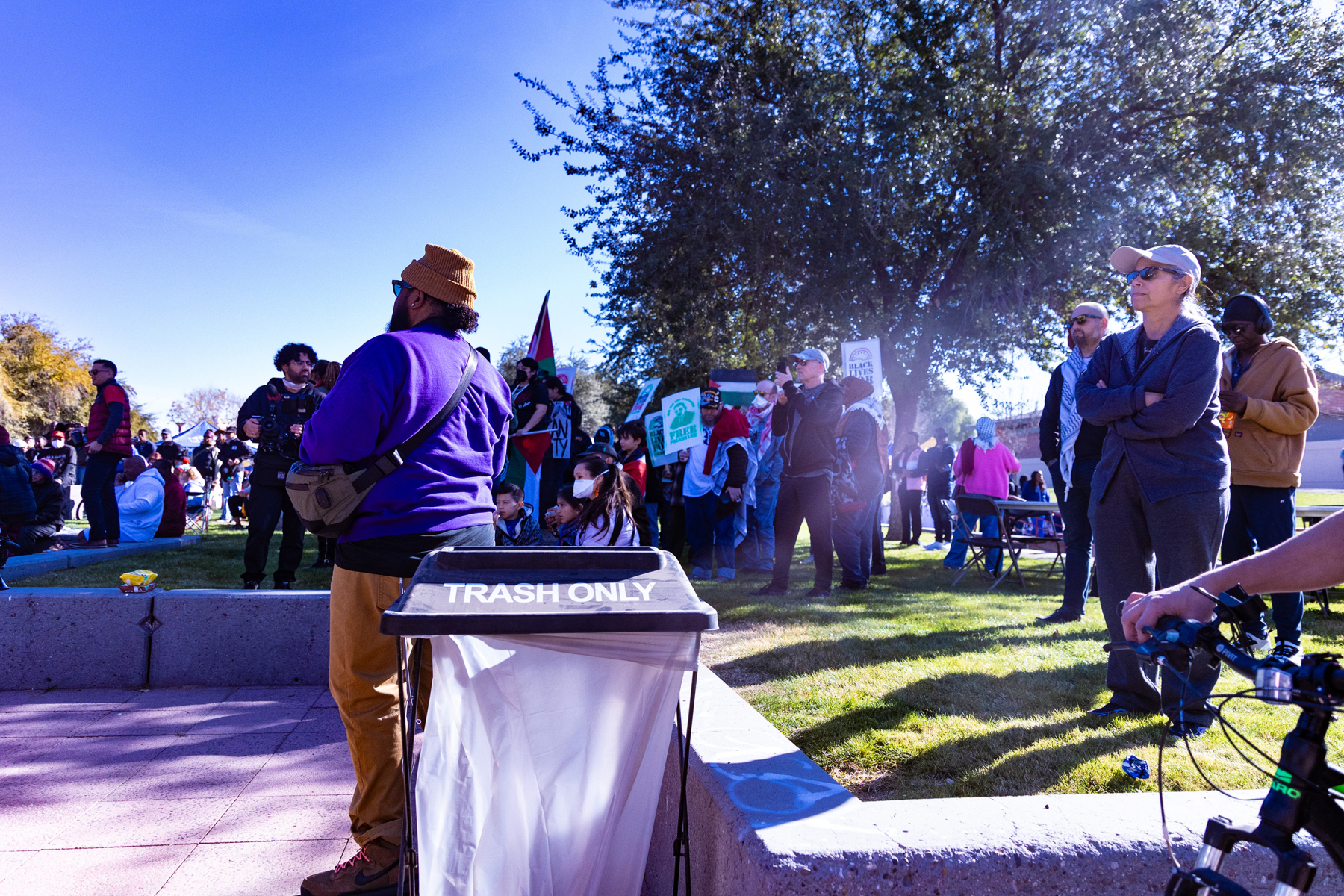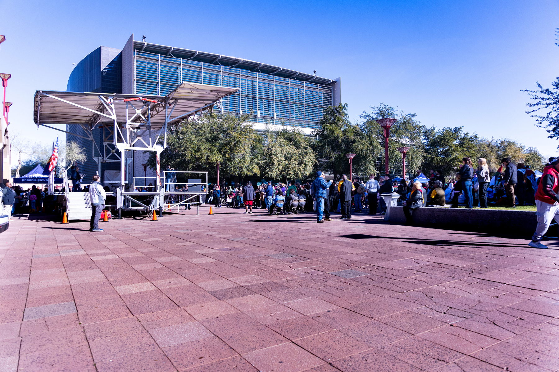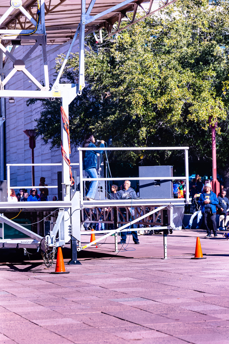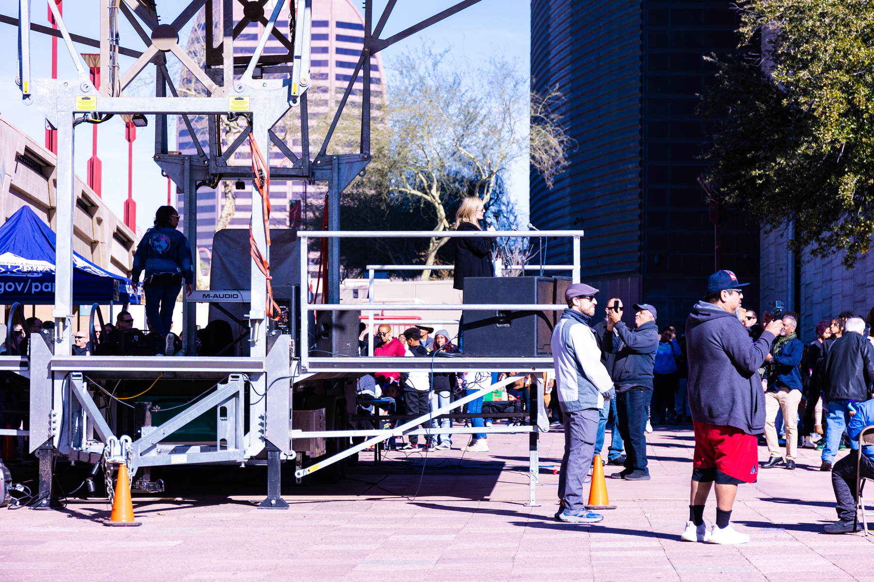 We had a wonderful time together; but we happened upon an unexpected surprise at our first stop when we arrived at the park and heard the strains of a beautiful a capella voice singing the Star Spangled Banner in the distance. We followed the music and found ourselves at a MLK Jr. celebration! I was able to take a few photos of the singer, the crowd, and Mayor as she was giving a short address, but things started to get loud when protesters began shouting her down. I felt uncomfortable with the escalation in the mood, and vulnerable in my wheelchair, so I decided we should move on to another stop. I hope and assume that all remained peaceful there, and the police presence was only precautionary.
