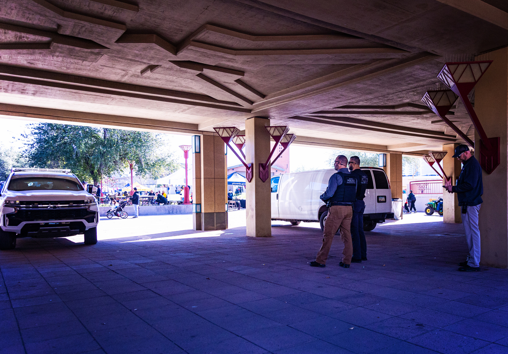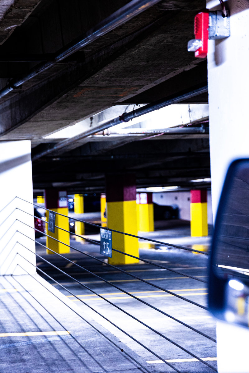 The parking garage where we parked had a 6’9″ clearance, which was juuuuuuuust a little bit too short for the van. Unfortunately, there’s no way to back out once you’ve already committed to entering the garage, so we crept along and found a place to park on the first level and seemed to be clearing everything just fine.