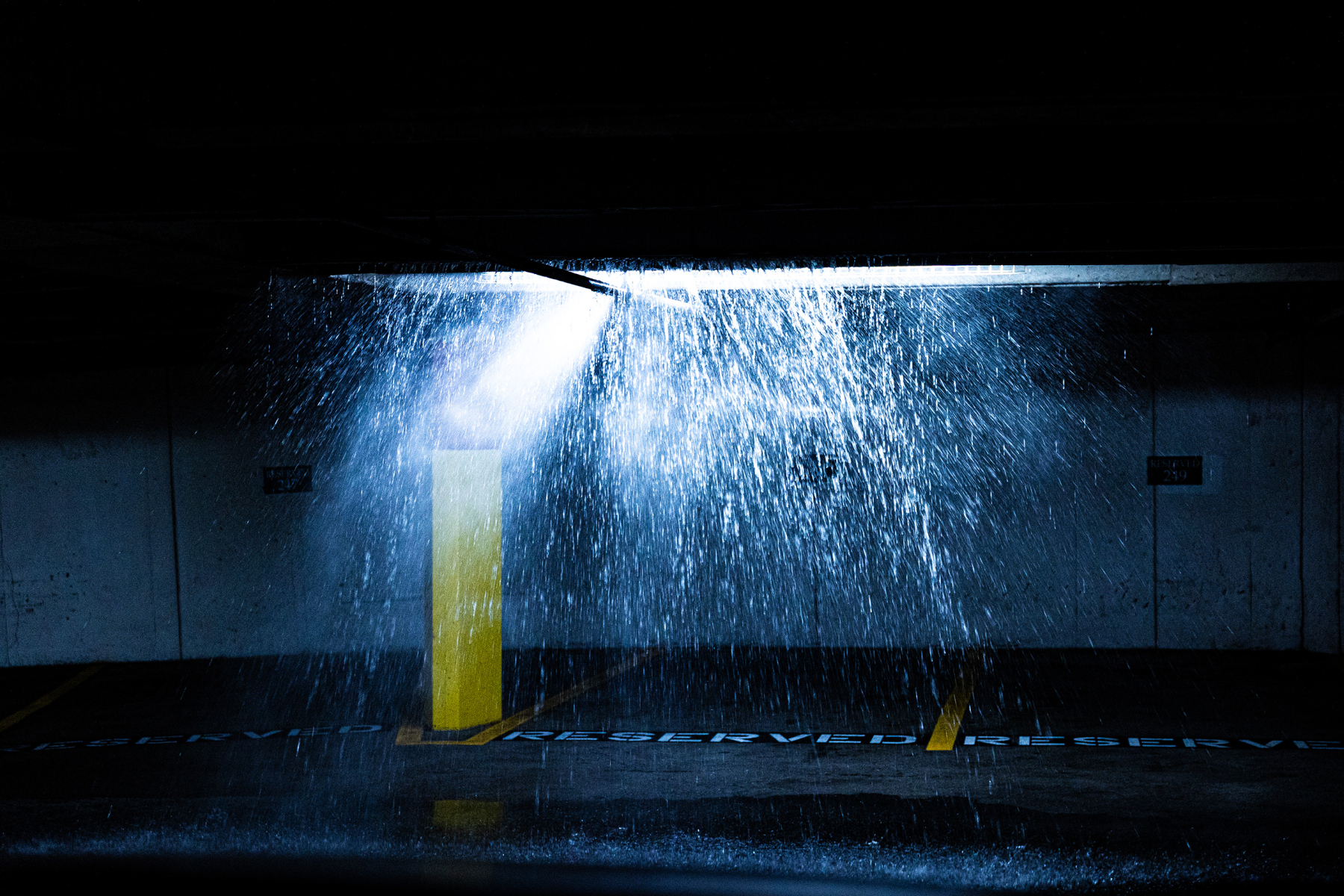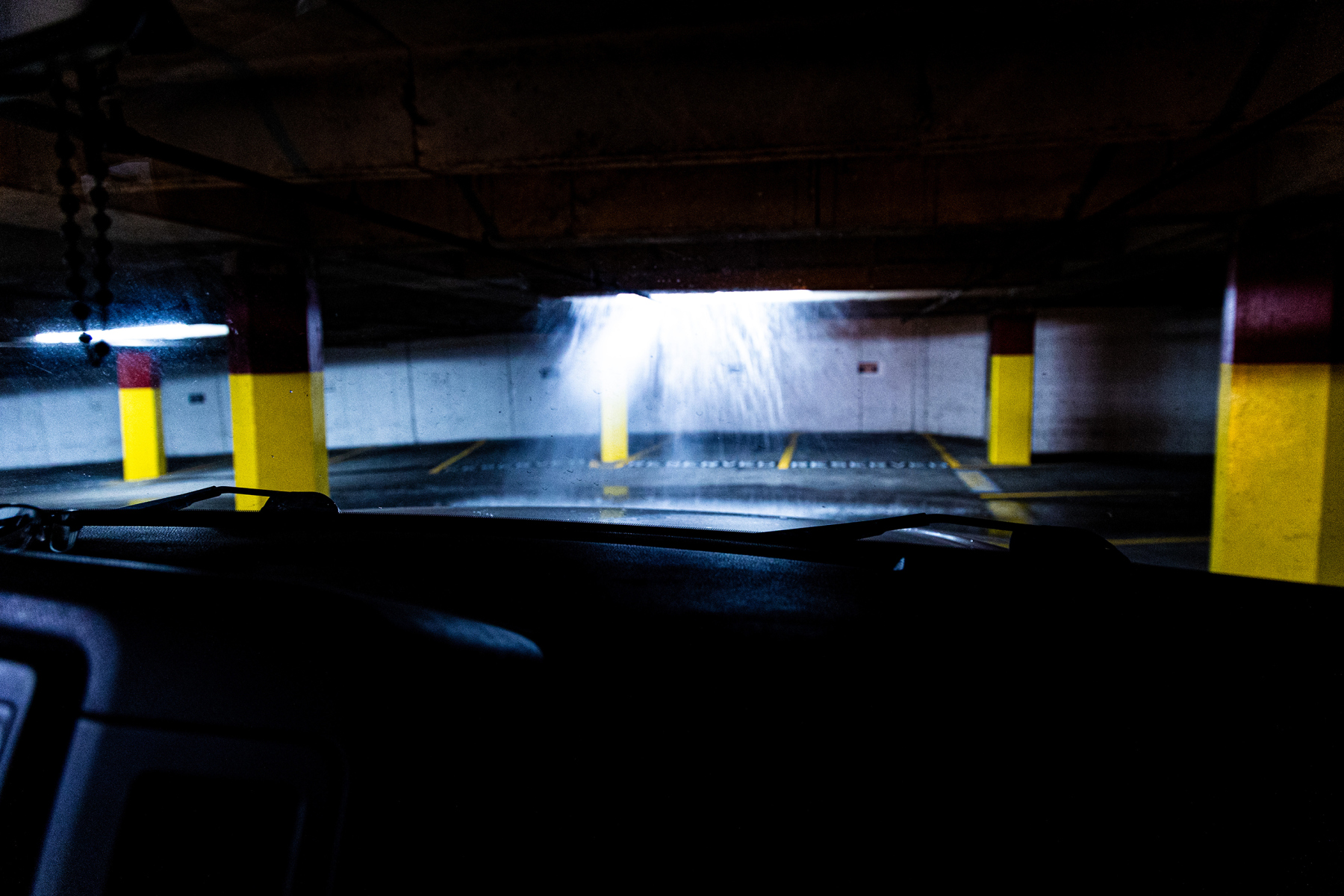 Security arrived, the fire department arrived, they figured out that when we hit the pipe above us, it shoved the end of it further along and when that broke the water burst forth. Eventually the water slowed to a trickle and then a drip and finally stopped; the alarms were turned off, and it was decided the only way out was to let a whole lot of air out of all our tires. So Paul did that and then we followed the security guys to exit in a different direction and made it out with great sighs of relief.