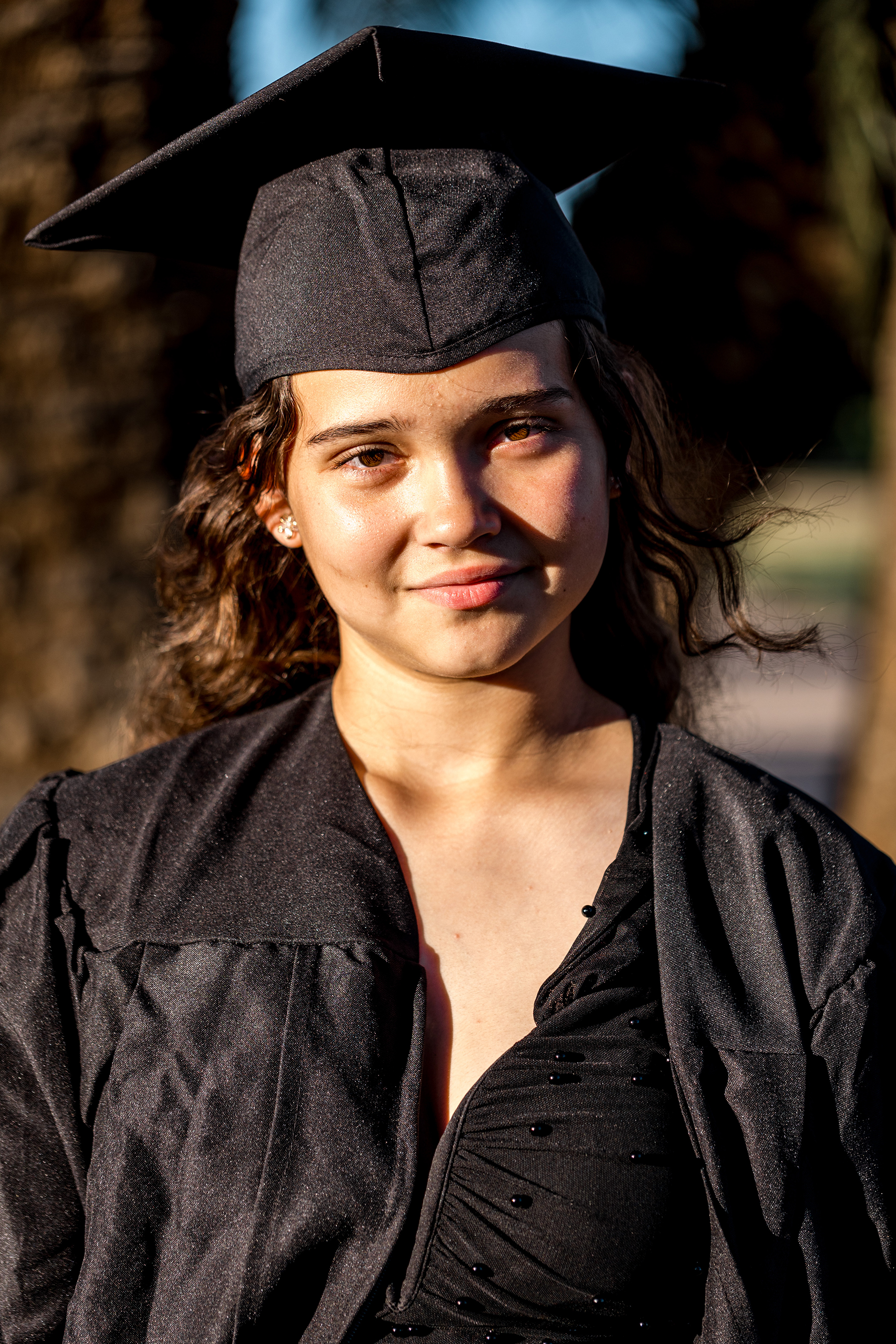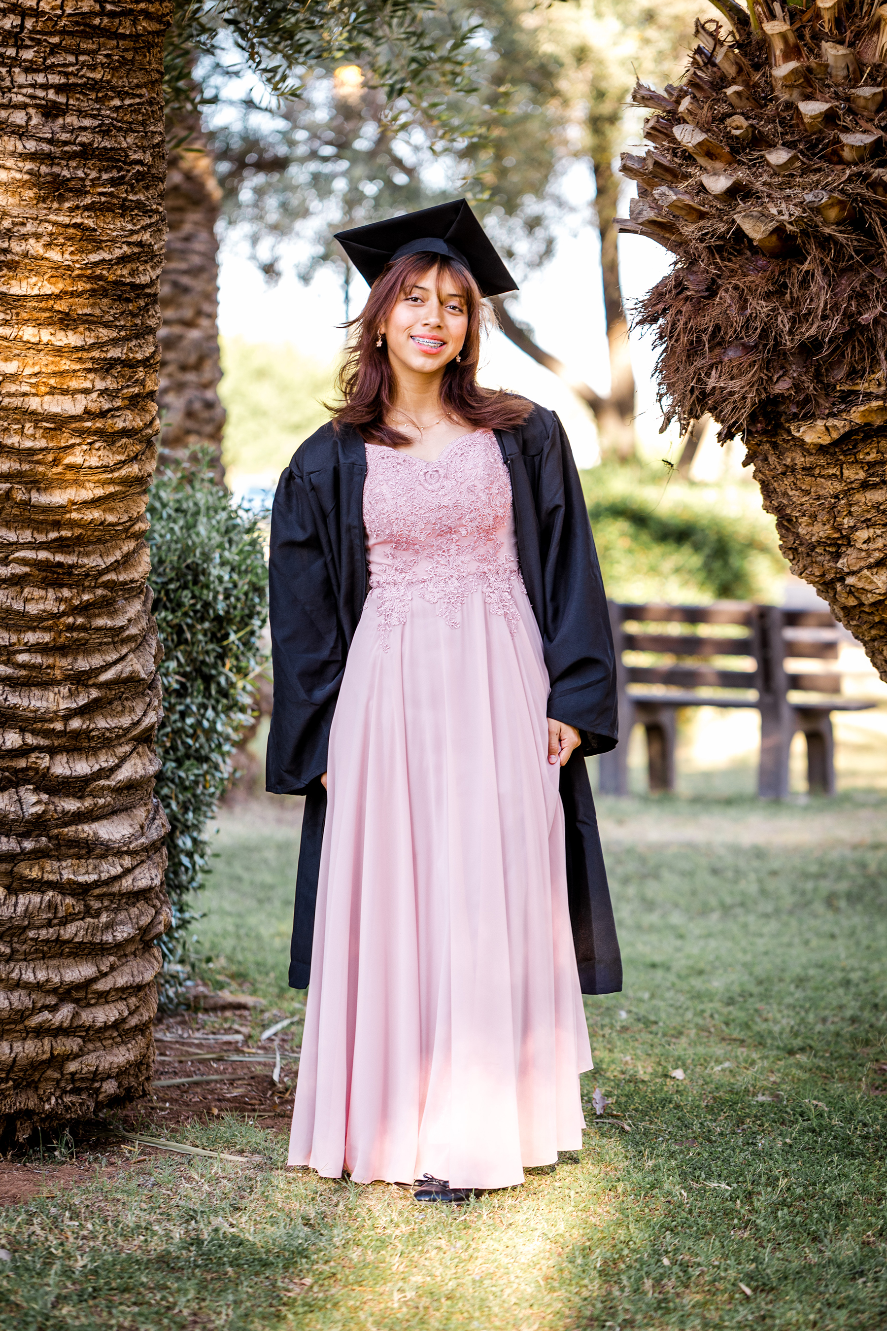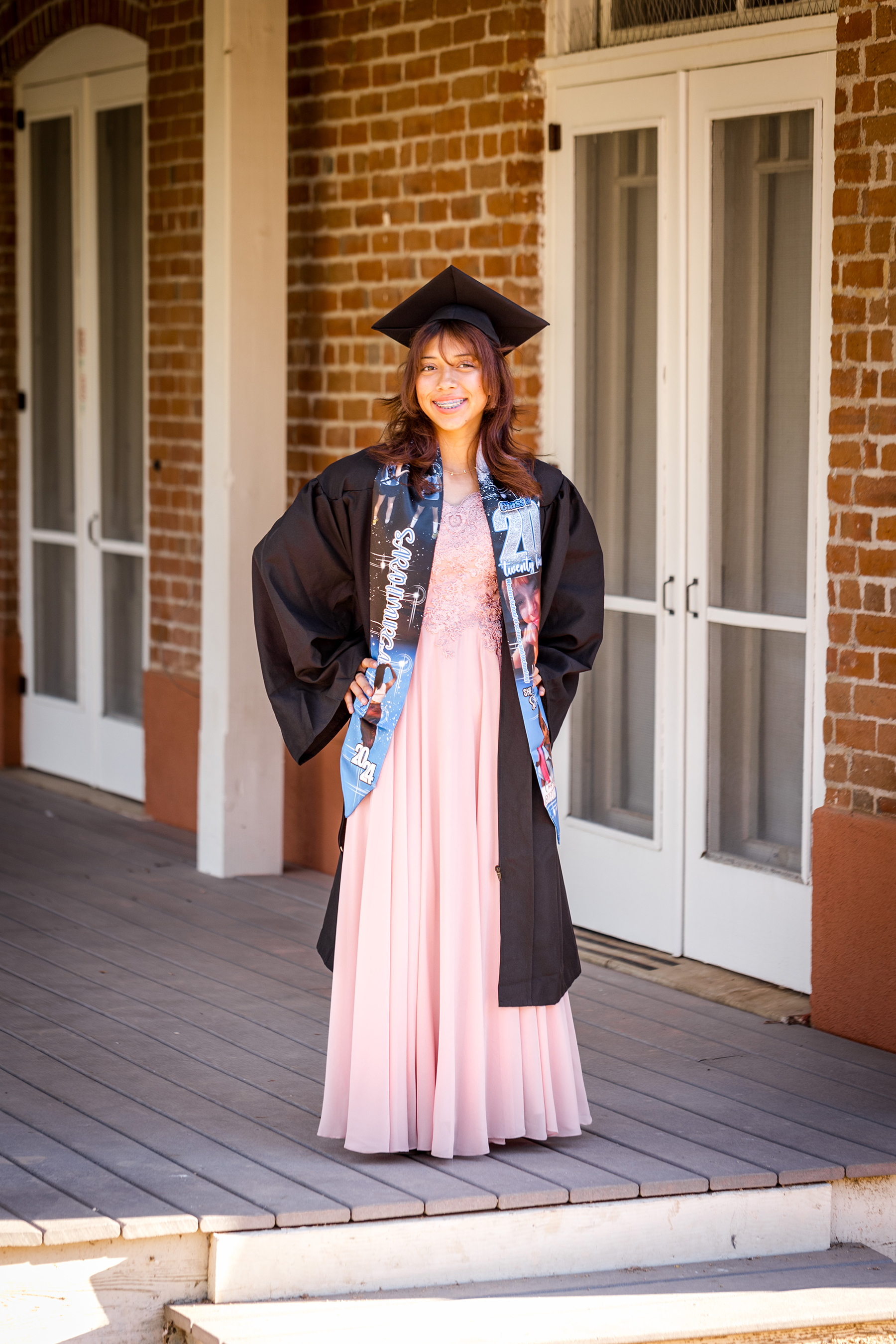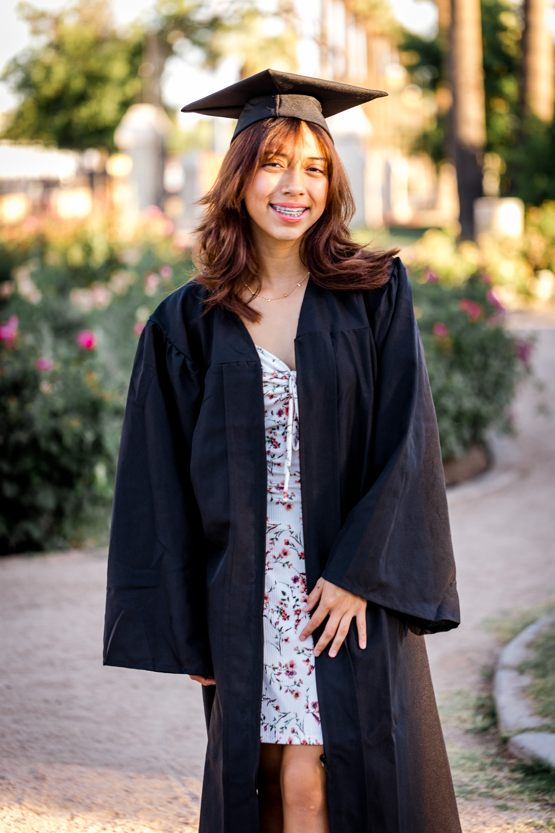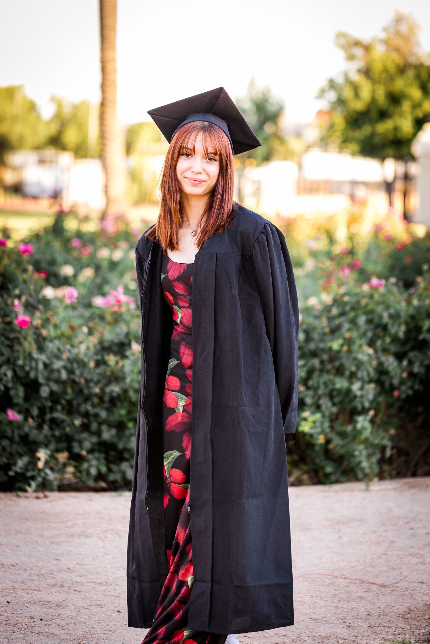 On Saturday, I had the honor of taking graduation photos for my goddaughter, Layla. It’s a little outside my comfort zone, taking on the responsibility of recording such a momentous rite of passage, but I am happy for the opportunity to stretch my wings a little. The place she chose for the shoot is a popular park here in Glendale, Saguaro Ranch Park. It’s a working farm, with a large farmhouse, several picturesque outbuildings, a citrus grove, vineyard, and rose garden. And if you come at the right time of day, you can see chickens, peacocks, and bunnies galore as well.