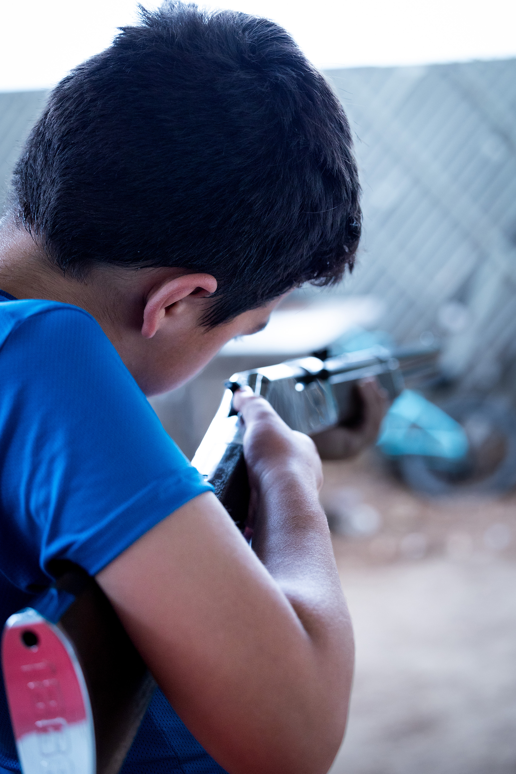 Ruben’s birthday present was supposed to come on Saturday, the day before the party – but in fact it did not arrive until Tuesday. Here he is with his brand new pellet gun! Daddy taught him the Rules of Shooting, how to use the gun, and he has been having the best time target shooting ever since! All the kids have taken turns in fact, so it turned out to be fun for everyone.