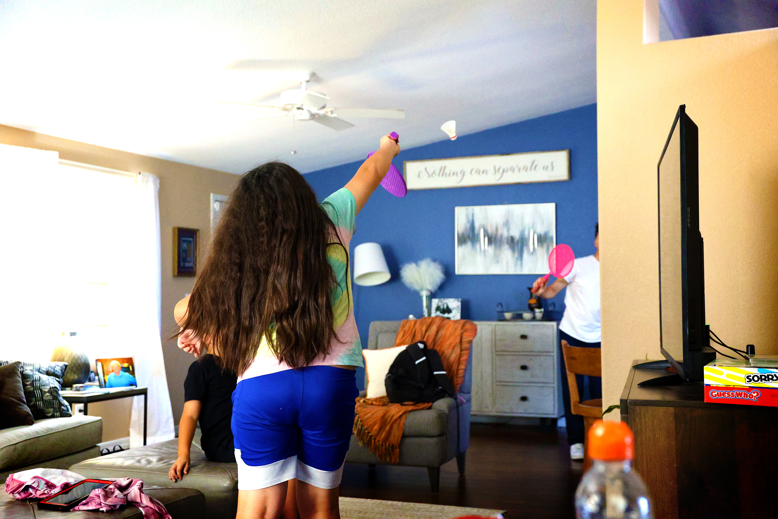 Today was par for the course. Jenga is quiet enough, except when everything crashes down… badminton indoors is a bit questionable… there may have been some chasing around in circles between Efrain and Ruben, stealing my phone and making videos, and there was definitely wrestling between Ellie and Ruben, and later, Lyss and Natalie! What a lot of nonsense.