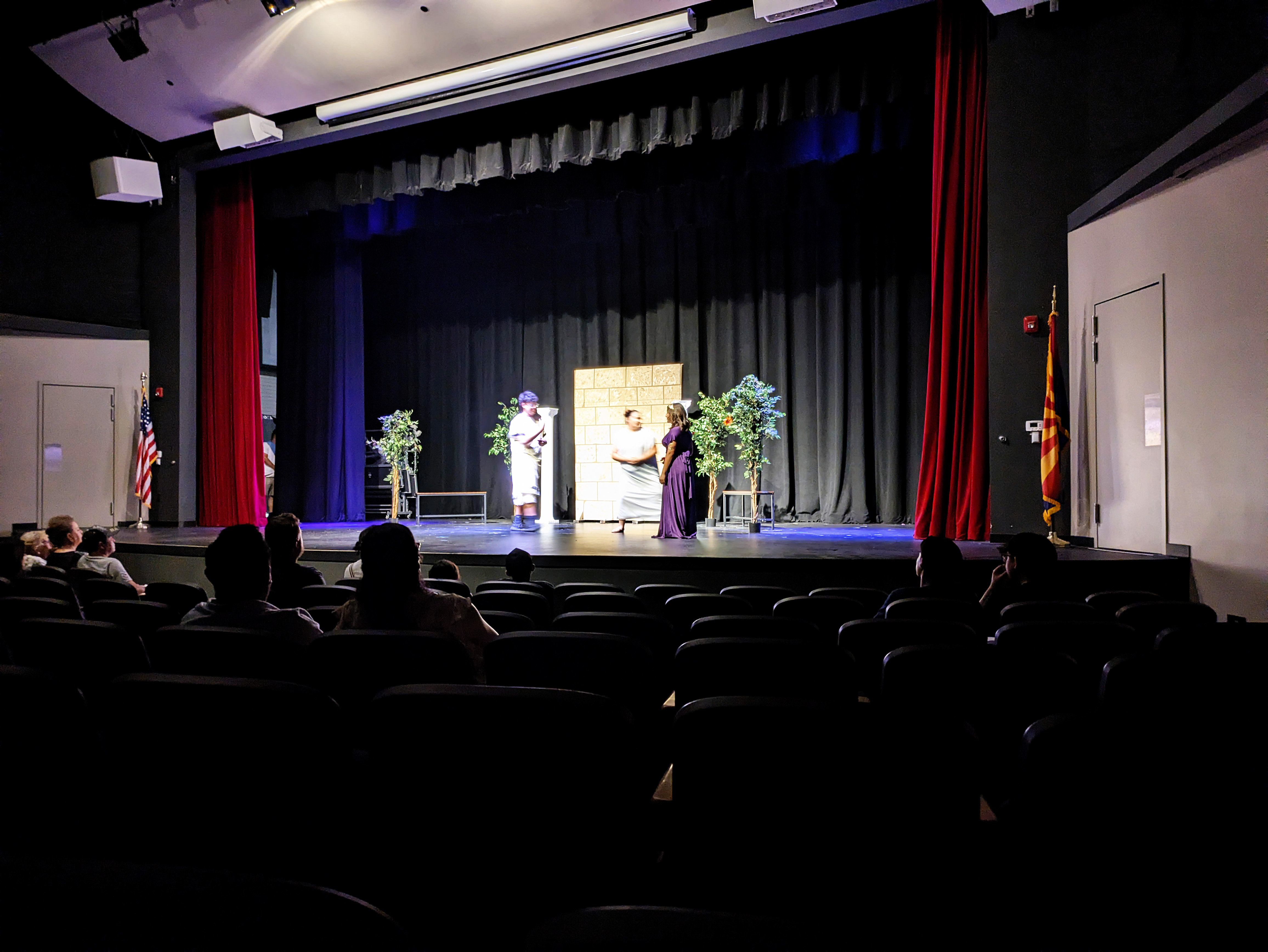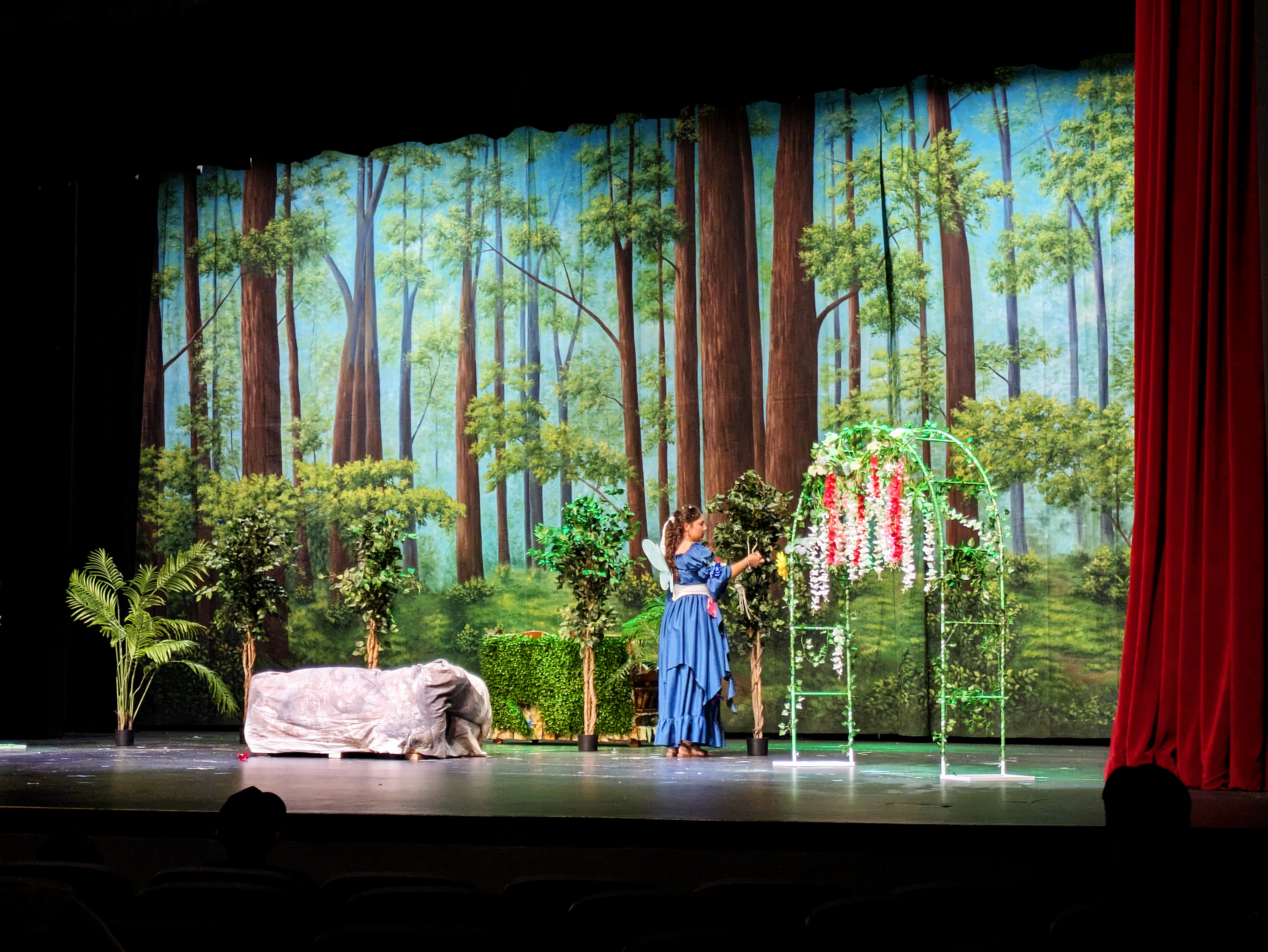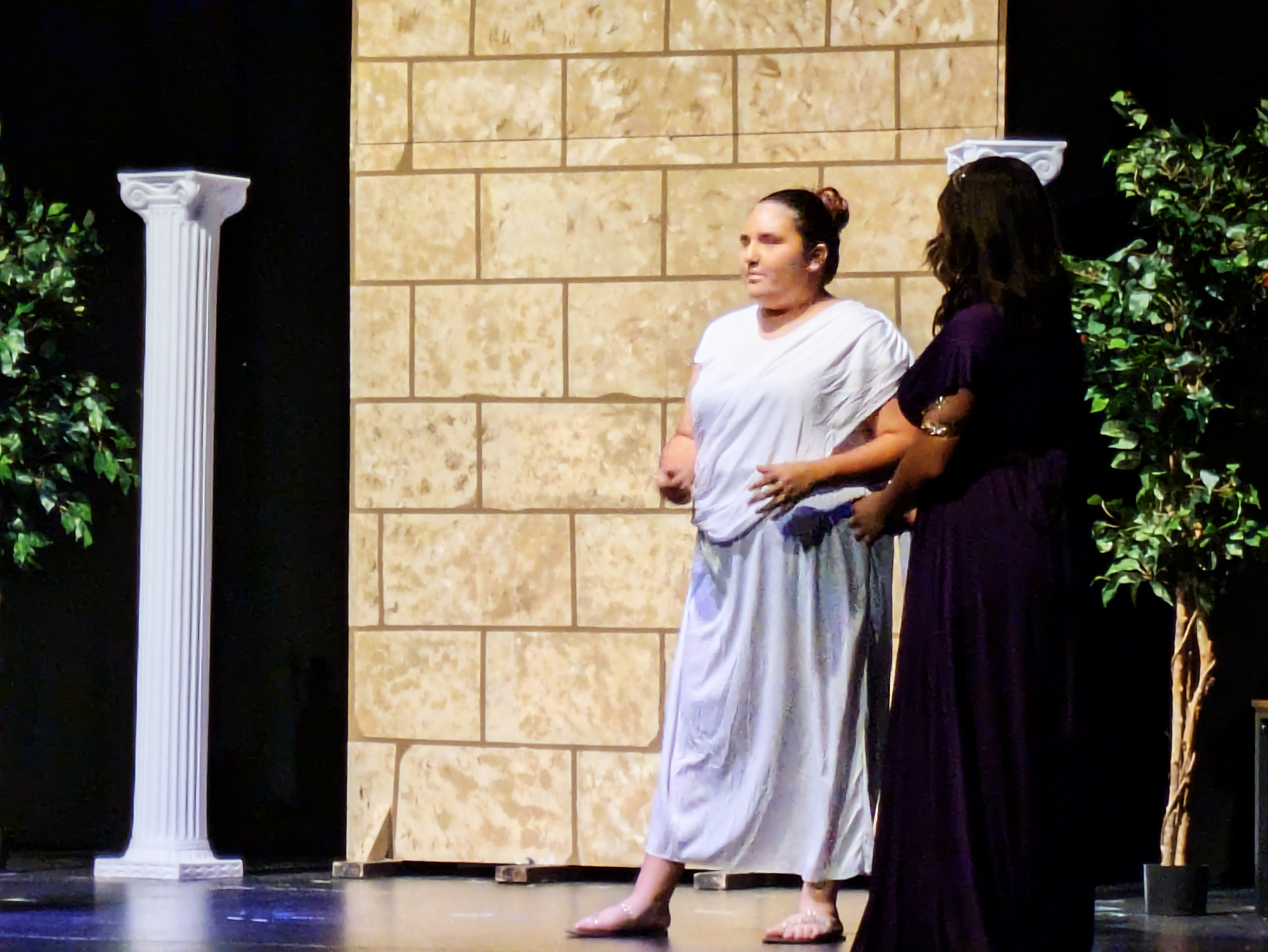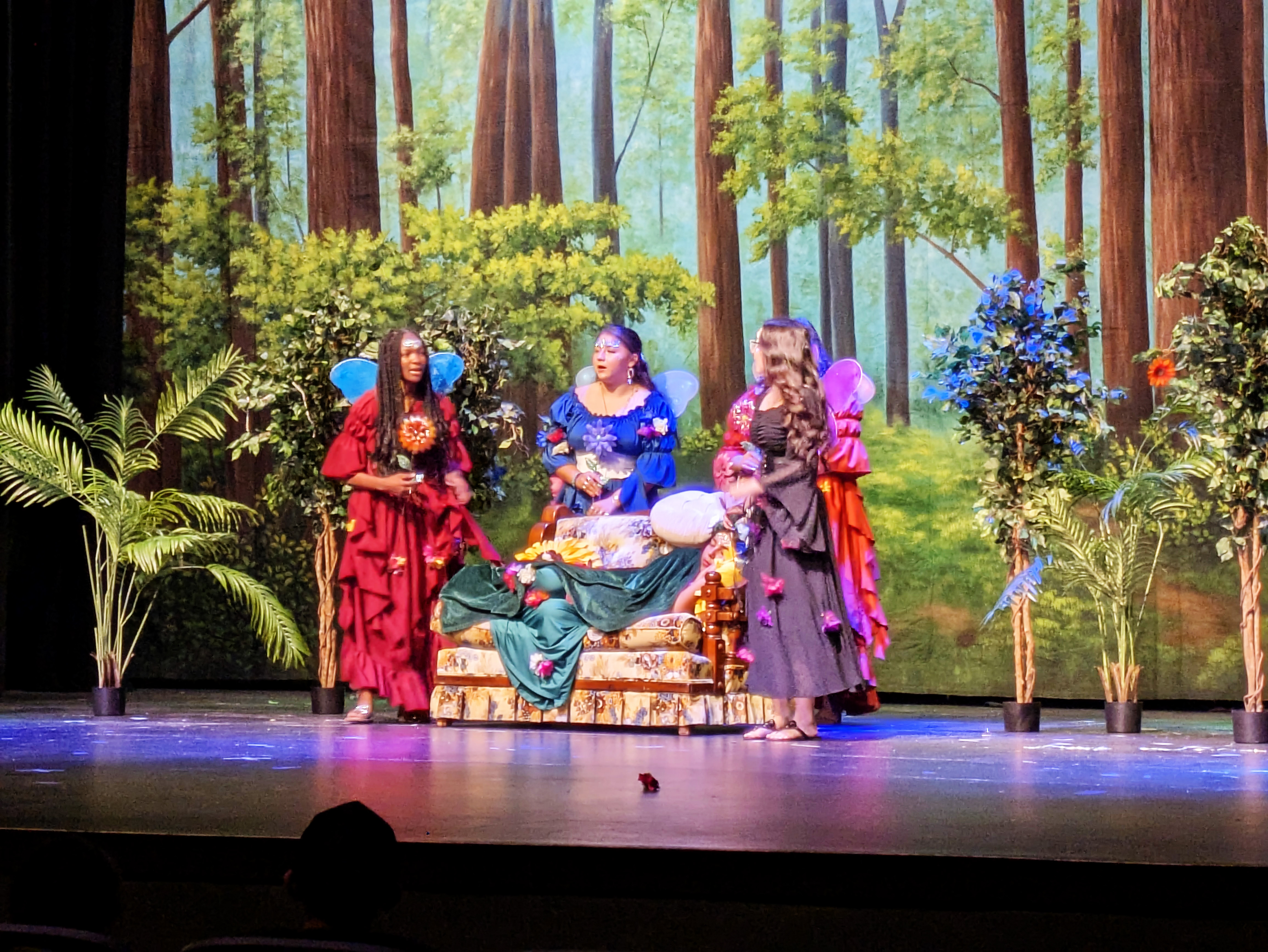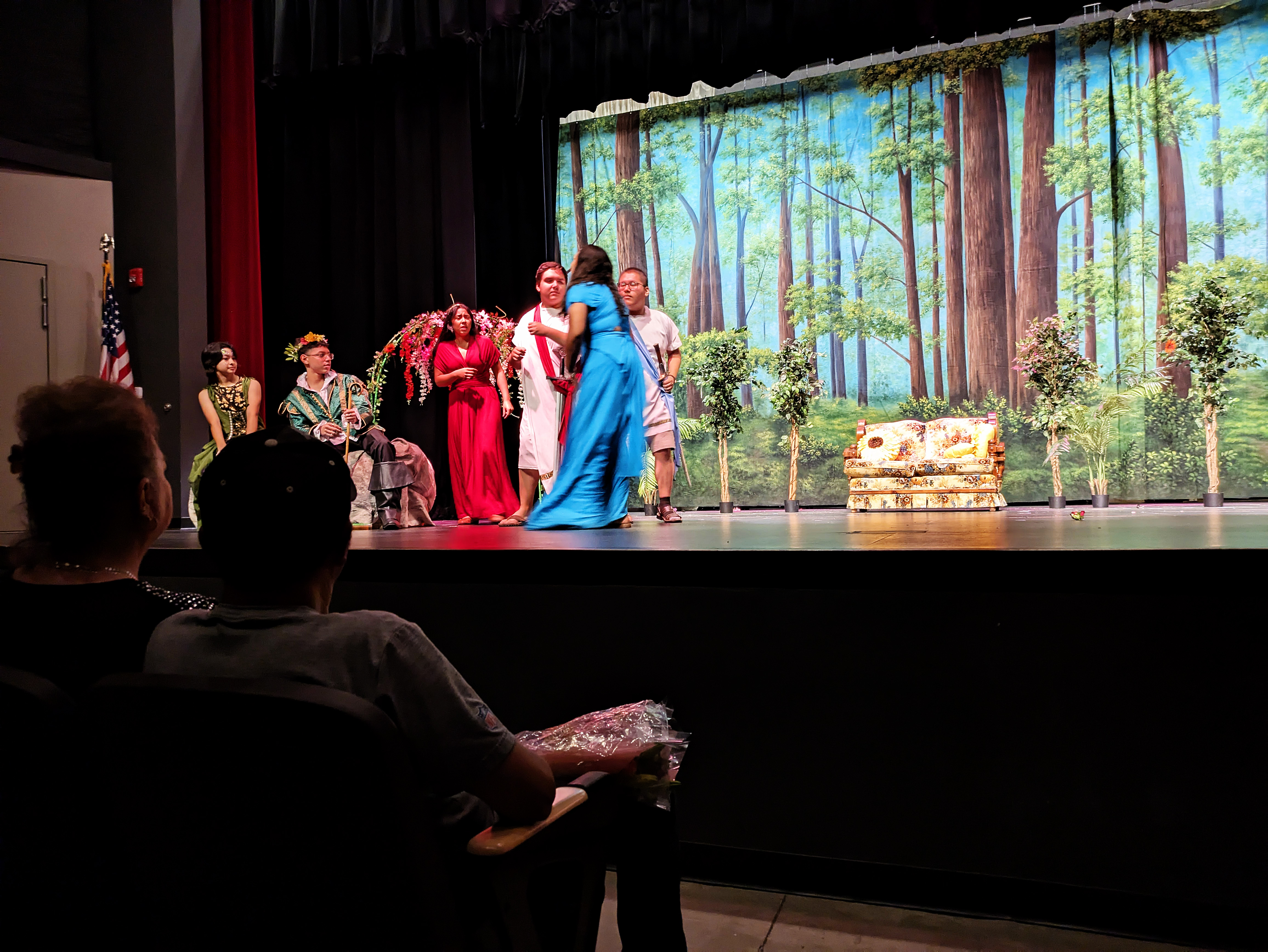 Friday night, Ellie and I had the privilege of attending the final performance of the Maryvale 11th grade drama production of Midsummer Night’s Dream. It was notable not only because Natalie was playing the part of Philostrate (as well as Stage Manager for the other performance), but also because it was the first time I have been able to walk into the Marley Center on my own two feet and sit through a performance of any kind in a regular chair rather than my wheelchair.