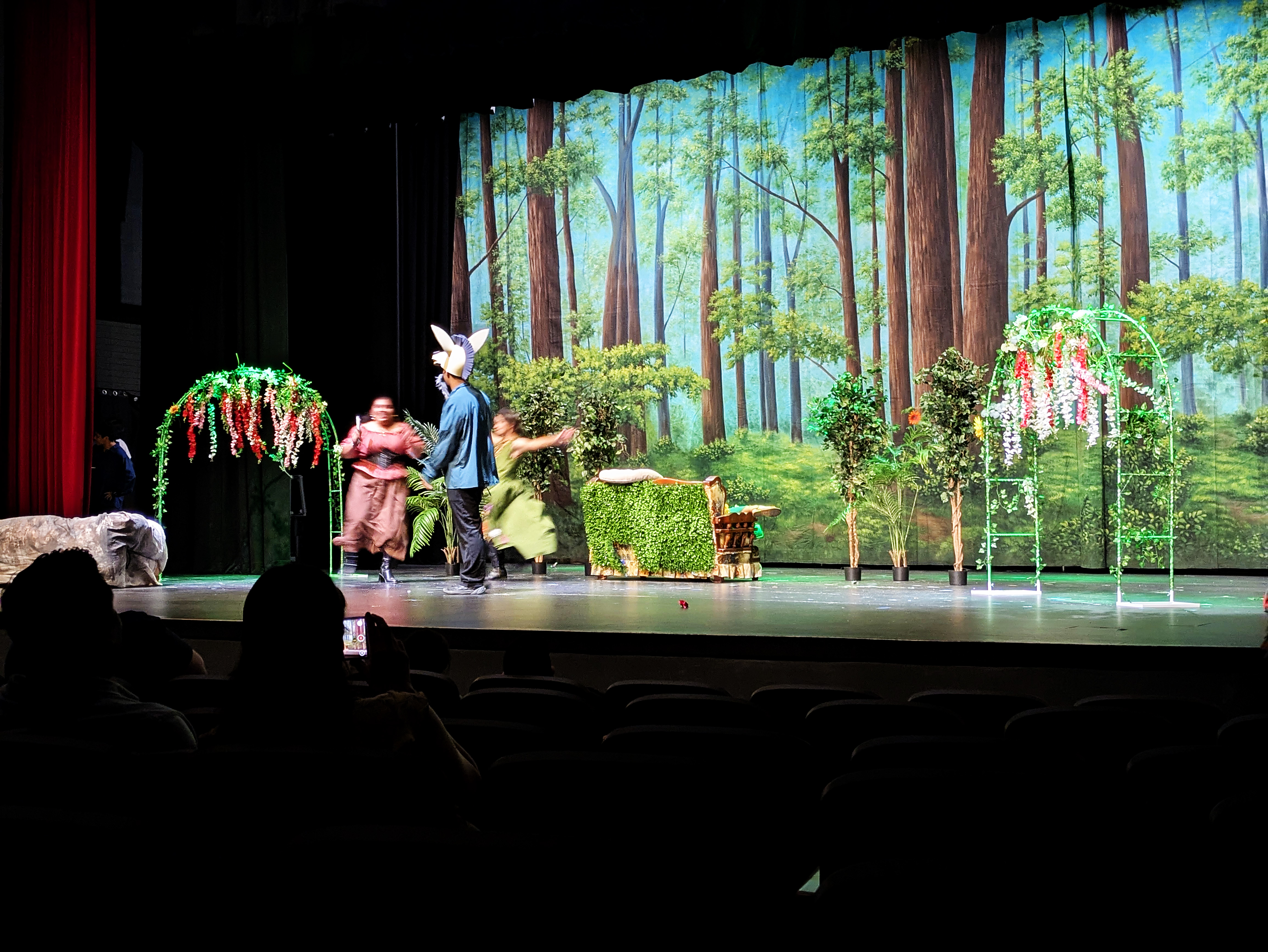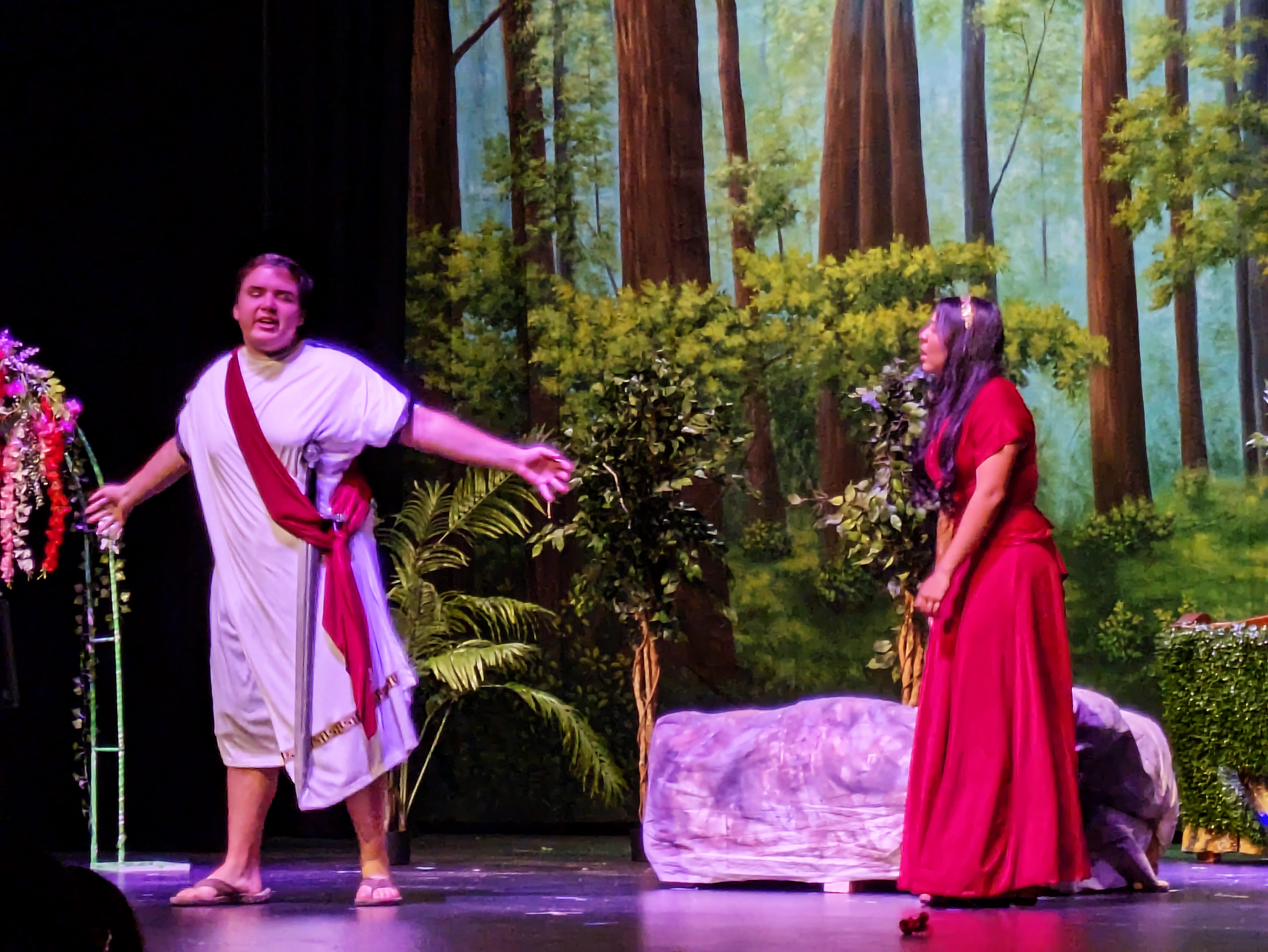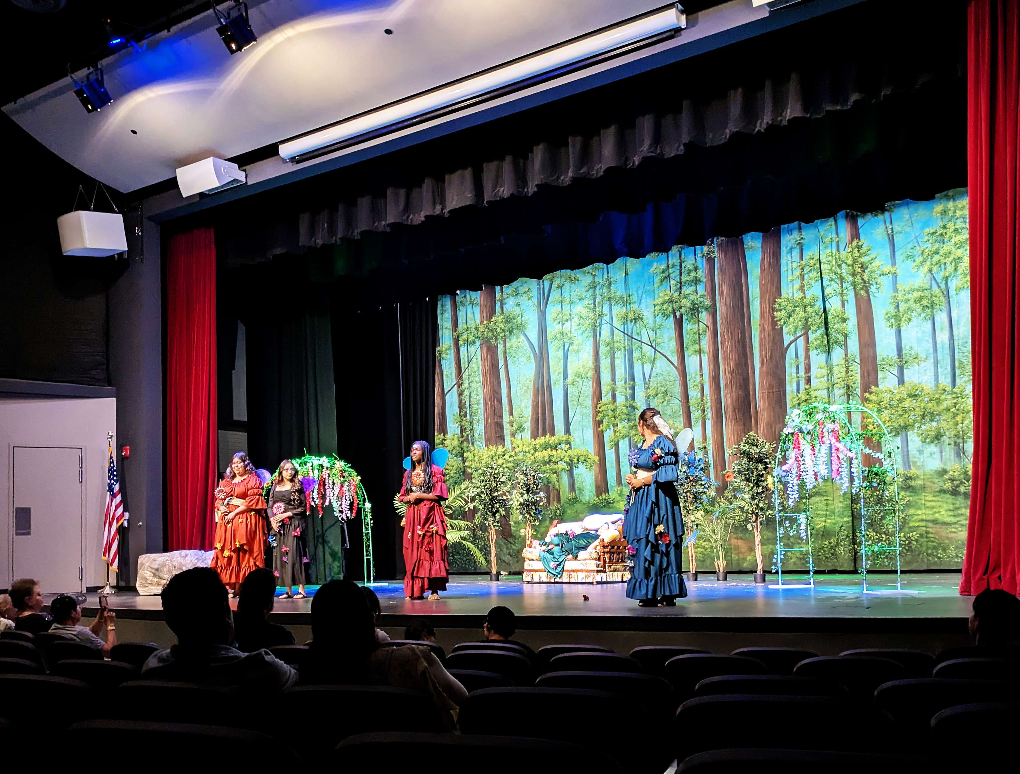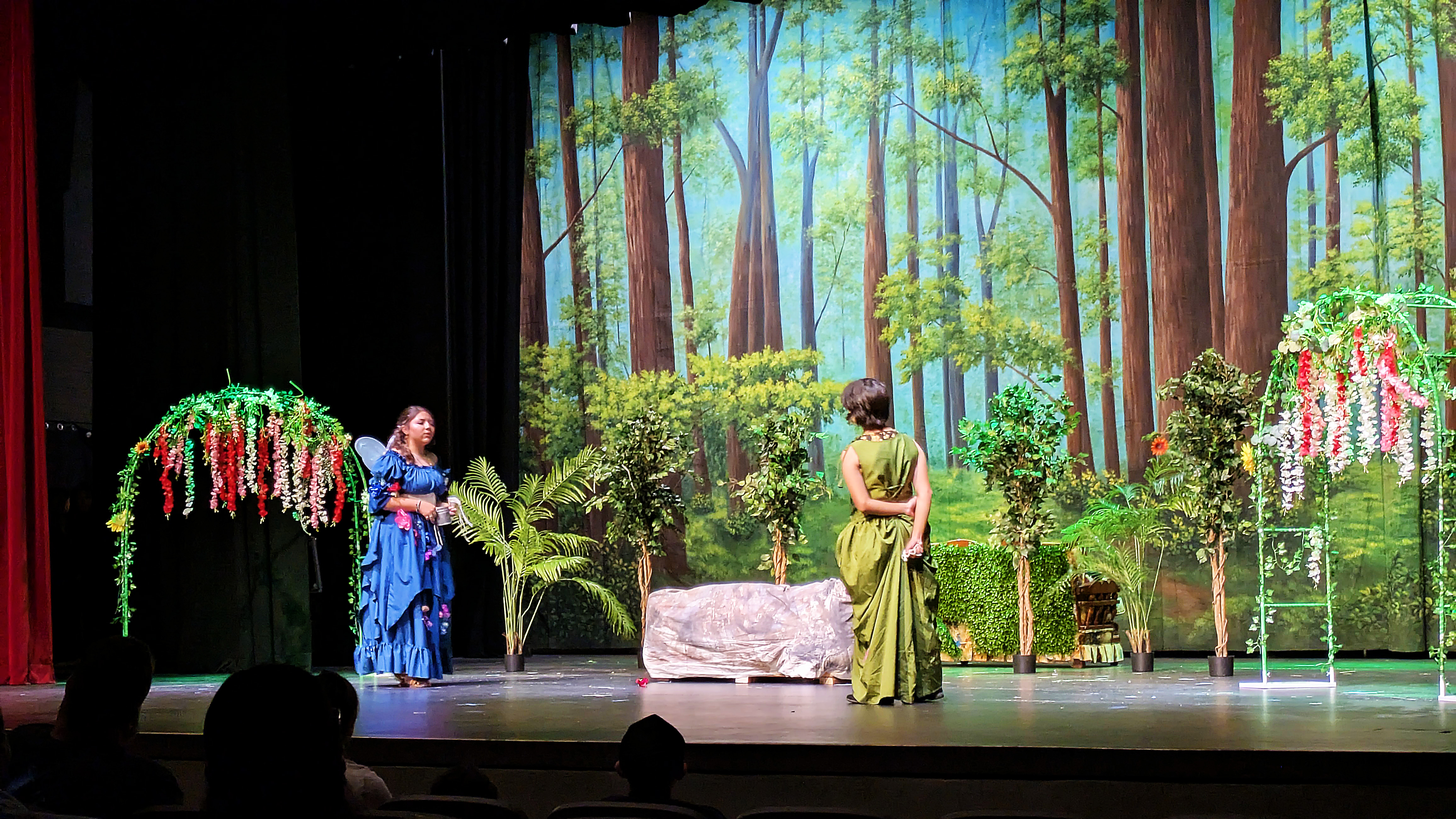 Friday night, Ellie and I had the privilege of attending the final performance of the Maryvale 11th grade drama production of Midsummer Night’s Dream. It was notable not only because Natalie was playing the part of Philostrate (as well as Stage Manager for the other performance), but also because it was the first time I have been able to walk into the Marley Center on my own two feet and sit through a performance of any kind in a regular chair rather than my wheelchair.