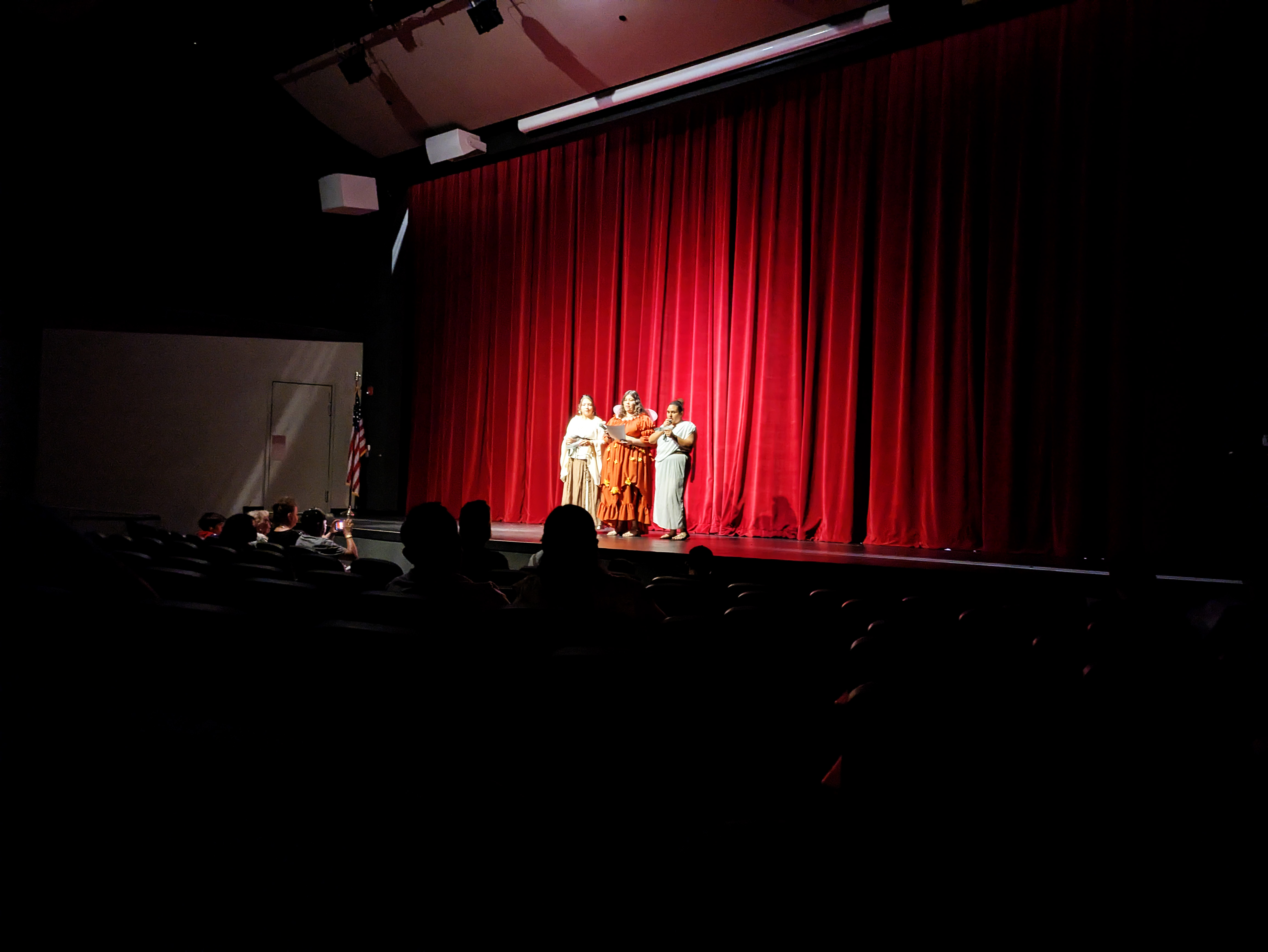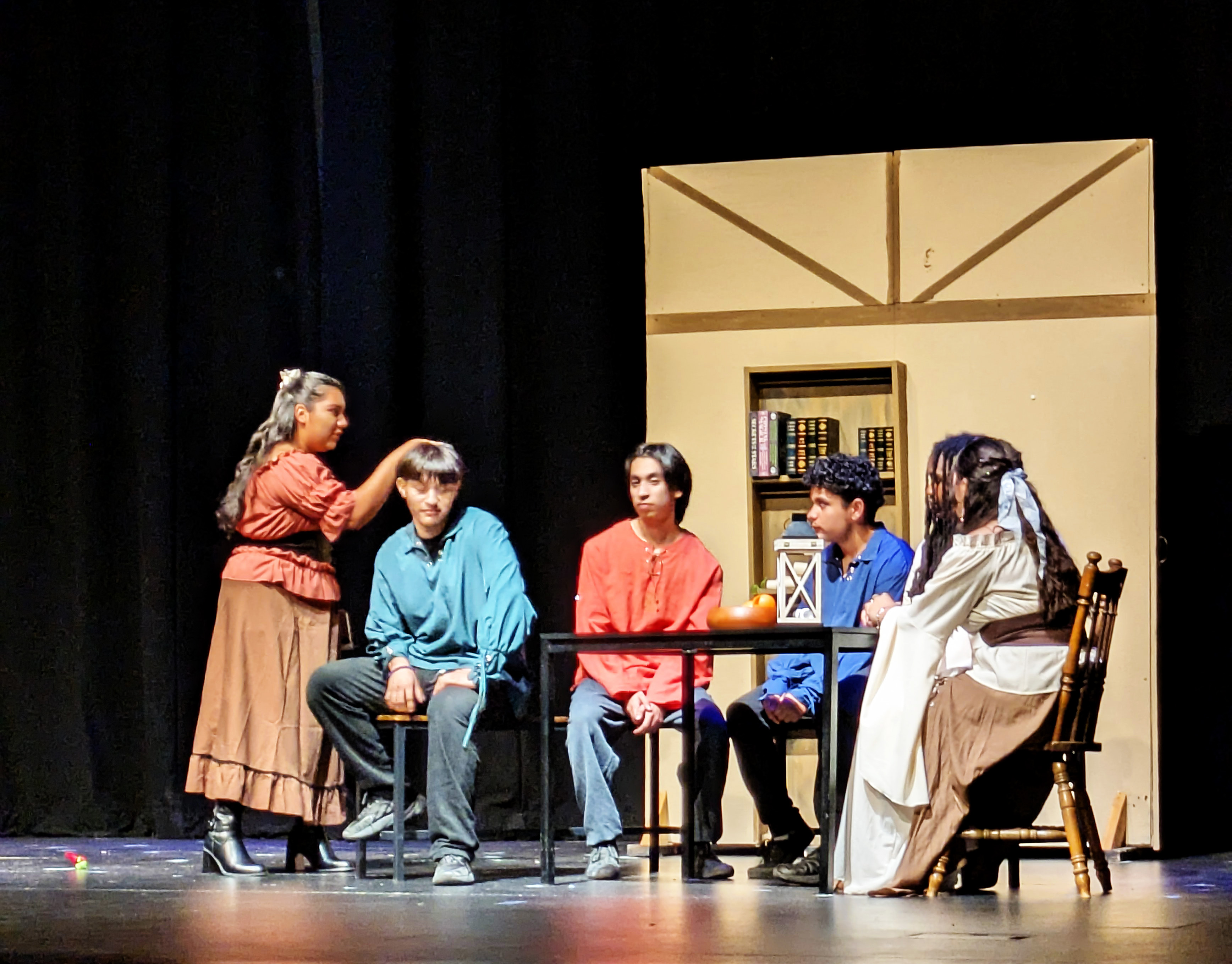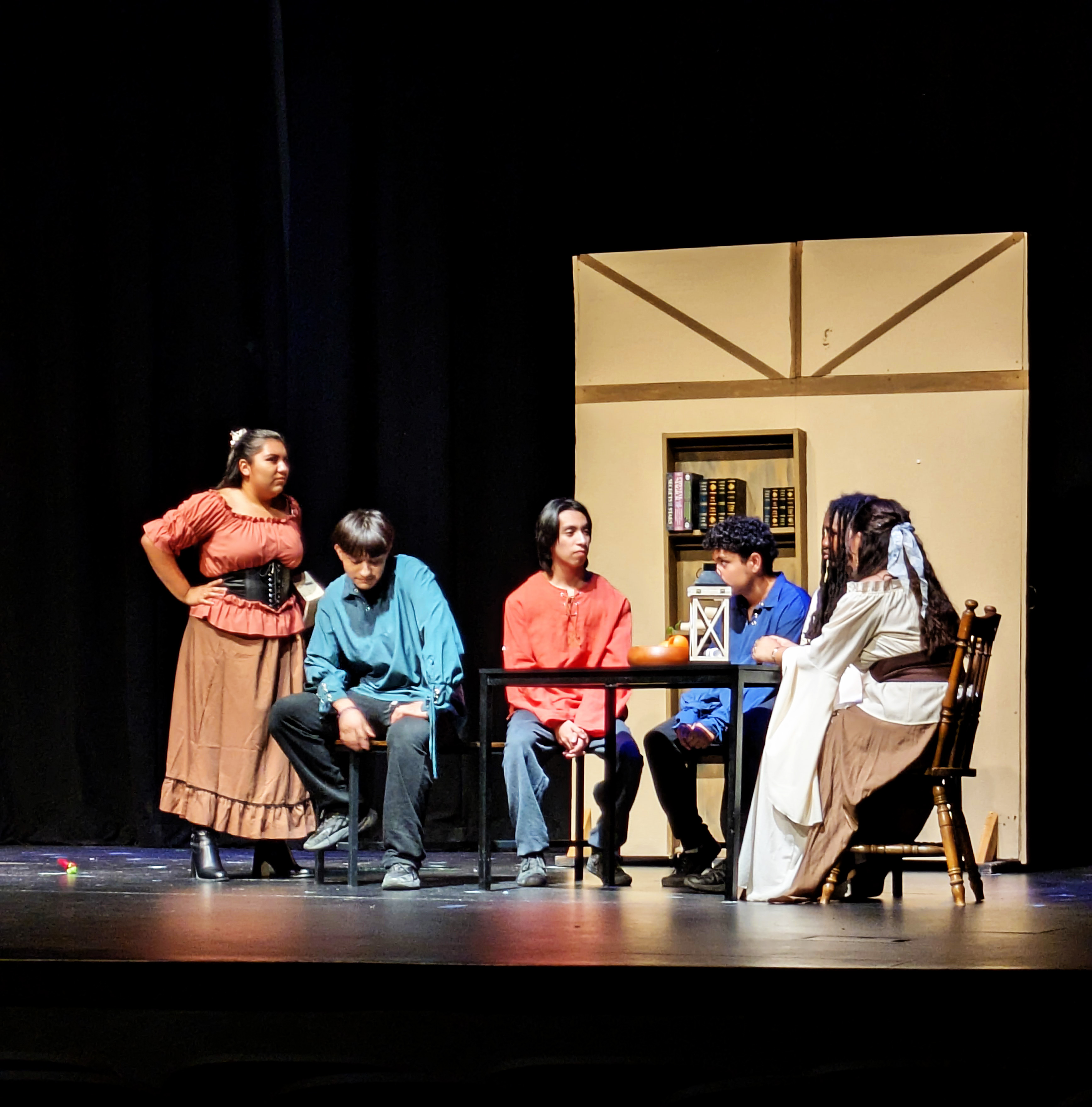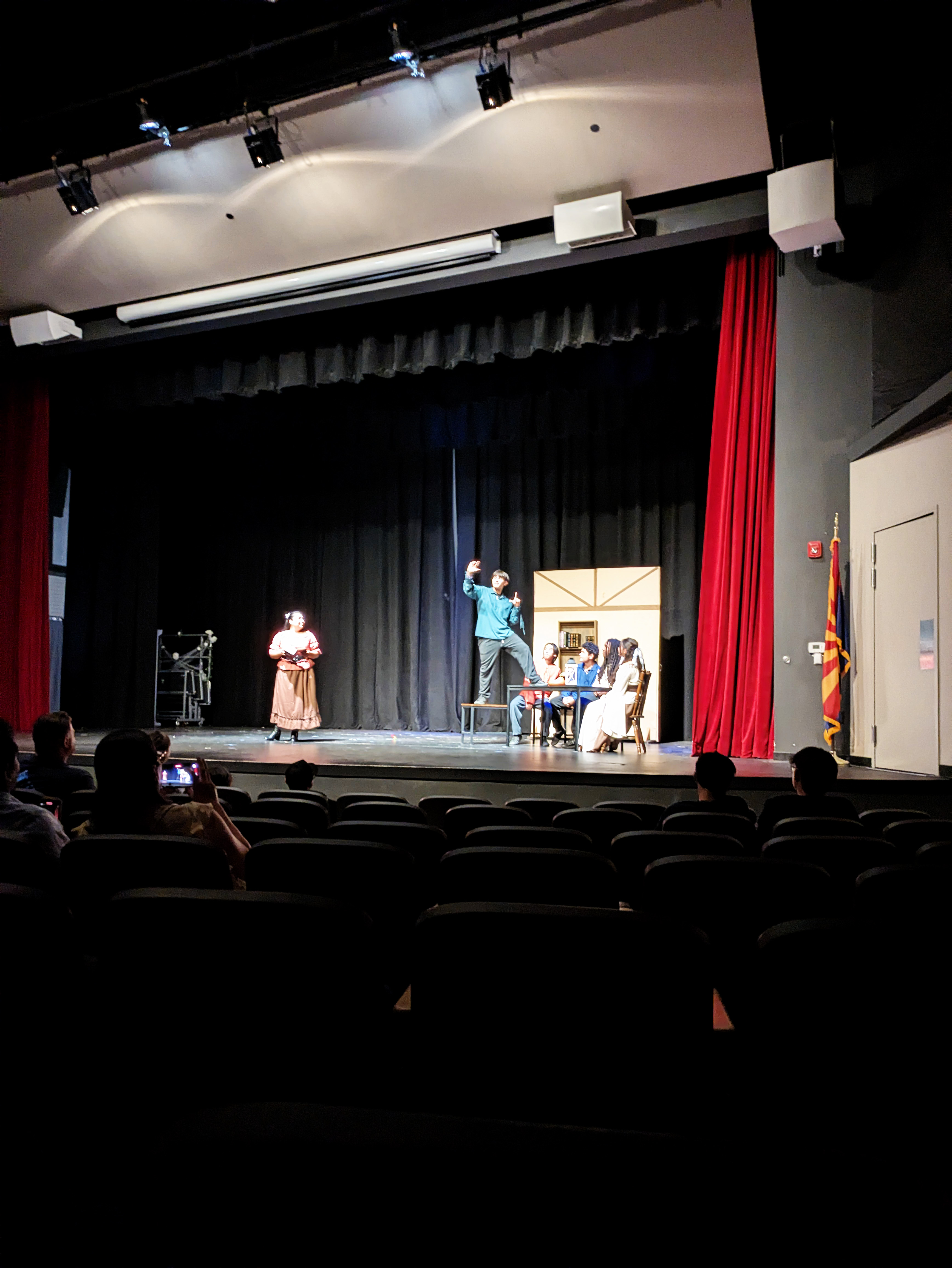 I found the whole evening extremely entertaining, as a former thespian myself. I thought the kids did a fantastic job, particularly since these are not the “theater kids” who go out for drama because it’s their thing – everybody in the class had a part in one of the two performances, and on their off night they were stage hands for the other cast. They could have totally phoned it in, but they swung for the bleachers and it was awesome. There were so many great moments, and my hat is off to the whole cast, stage crew, and their terrific director, Mrs. Rand-Lowe. Fabulous job, everyone!!