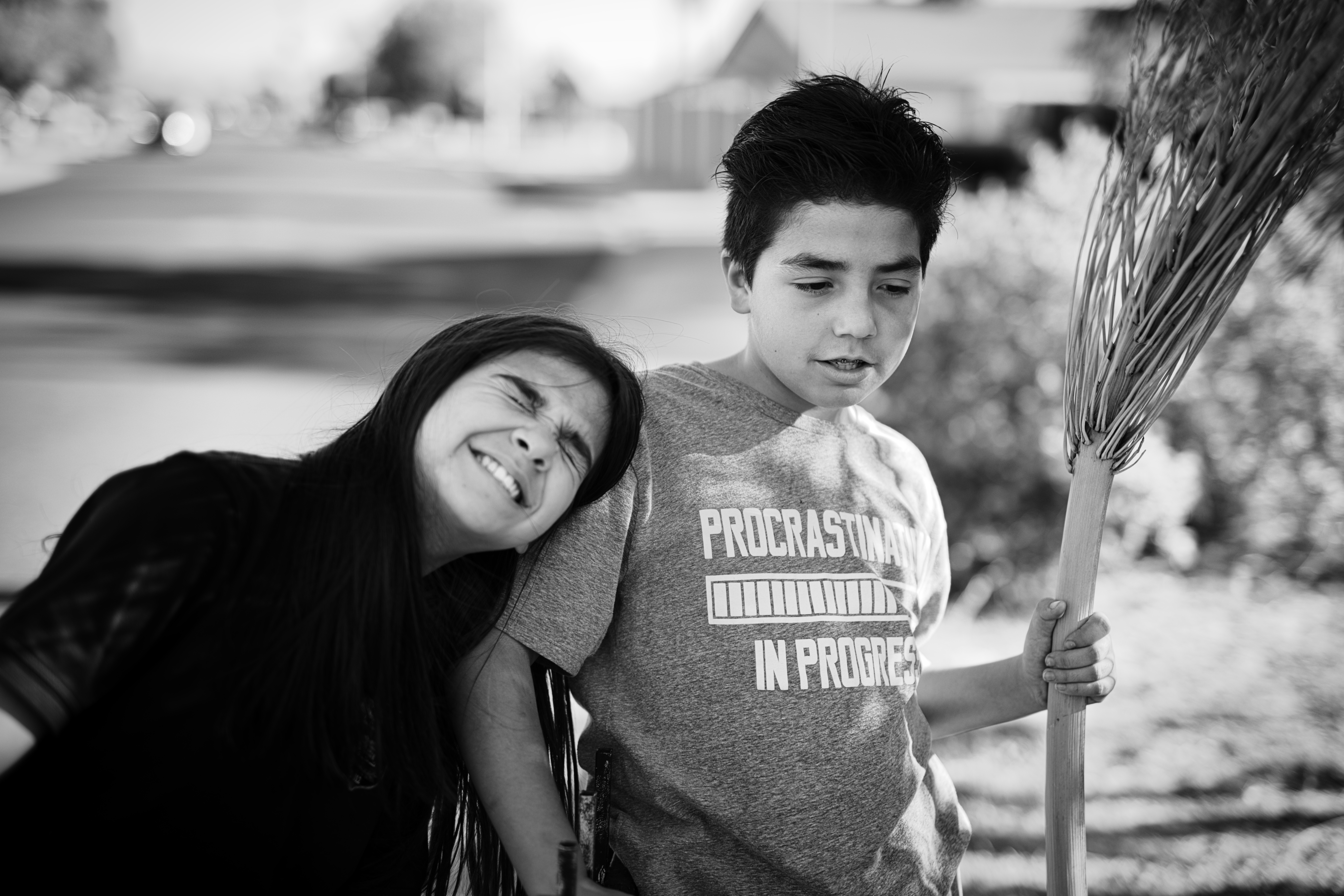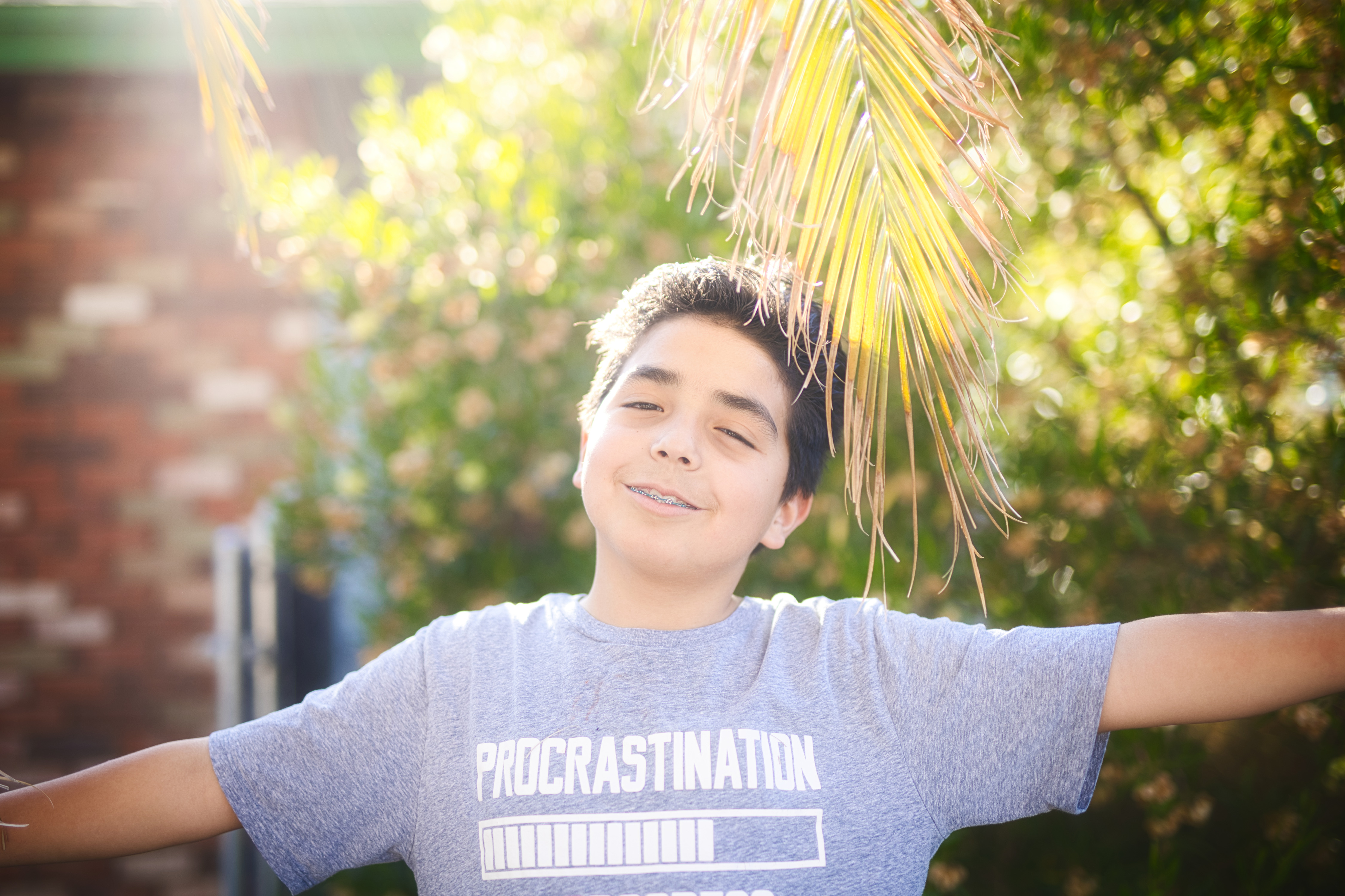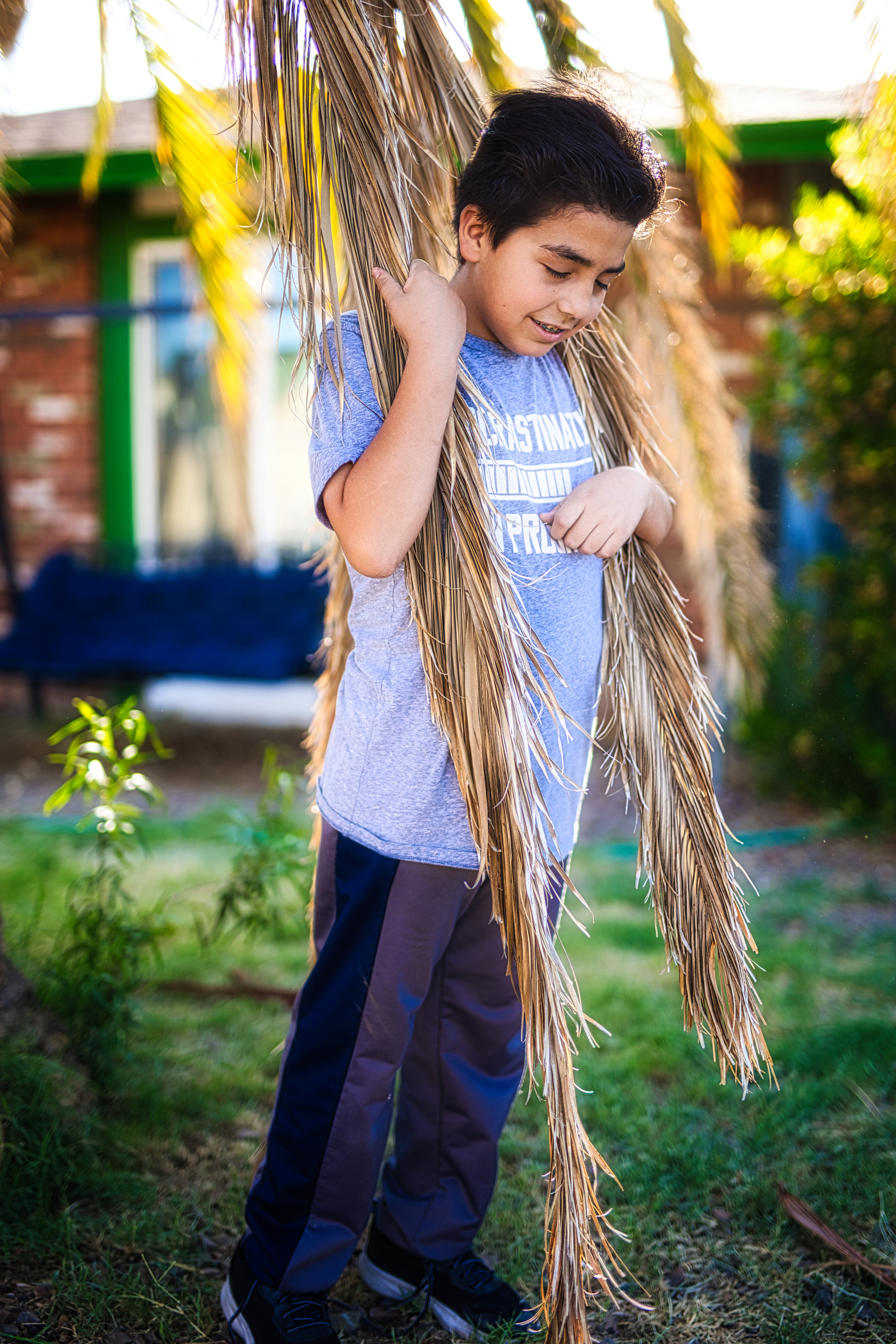Yesterday, I found my solution in the back yard – and today I found it in the front yard. Sticking close to home, I can take little breaks if I need to, and don’t need to draft anyone to drive me around in my wheelchair. My two youngest are ever so cooperative as subjects, especially provided I incentivize them with a Chiptole bowl or a box from Raisin’ Cane’s chicken.