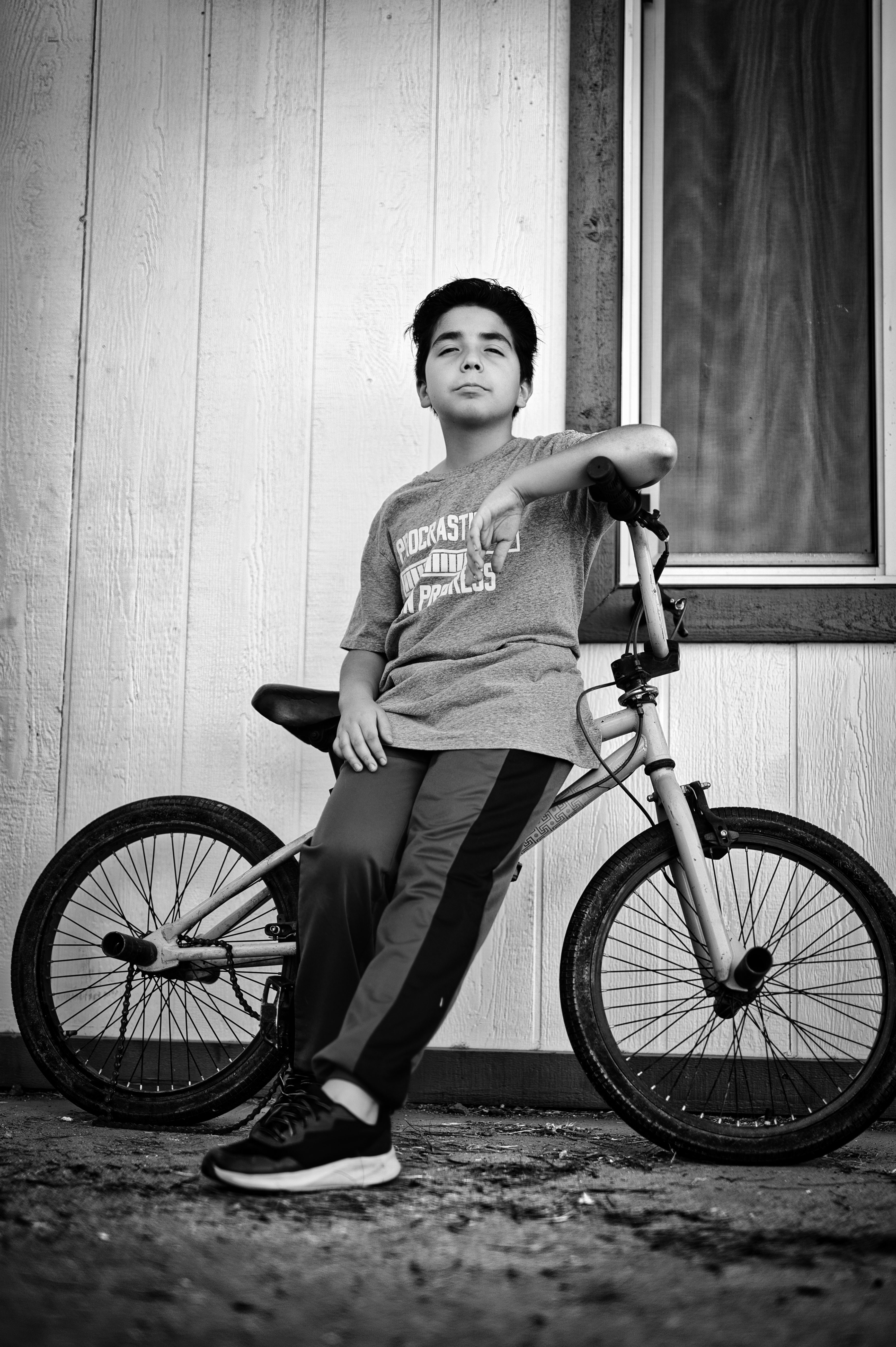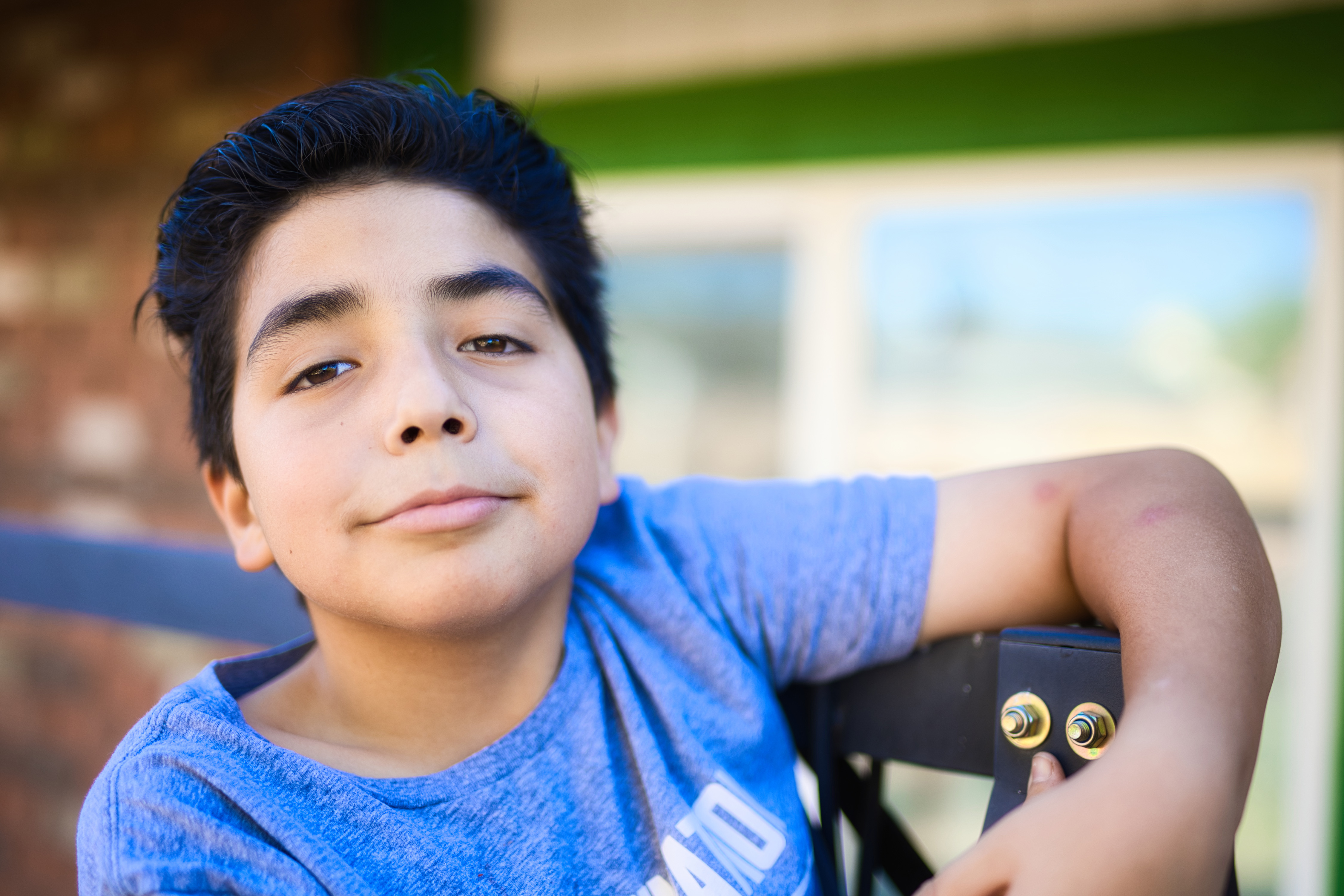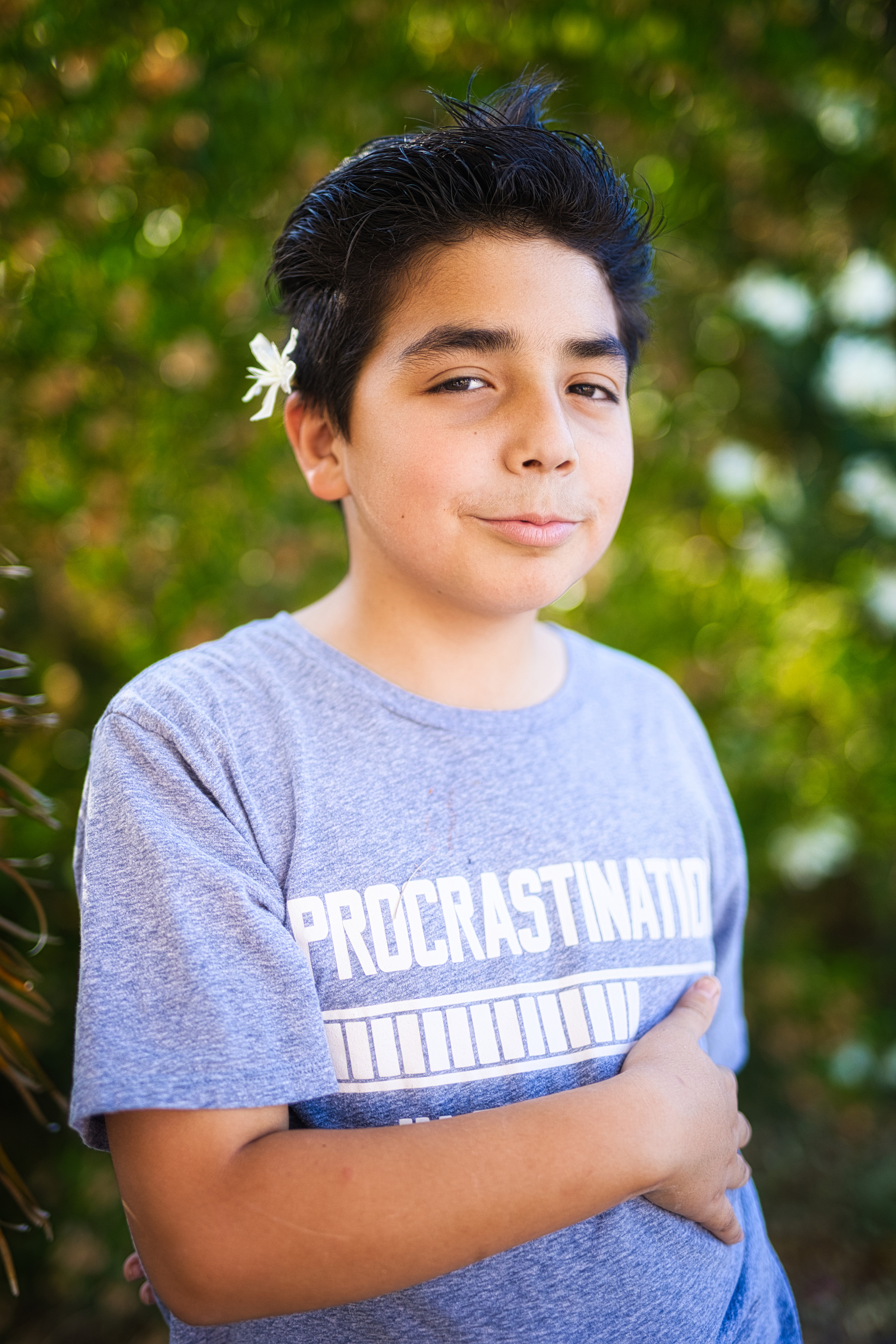 Yesterday, I found my solution in the back yard – and today I found it in the front yard. Sticking close to home, I can take little breaks if I need to, and don’t need to draft anyone to drive me around in my wheelchair. My two youngest are ever so cooperative as subjects, especially provided I incentivize them with a Chiptole bowl or a box from Raisin’ Cane’s chicken.
