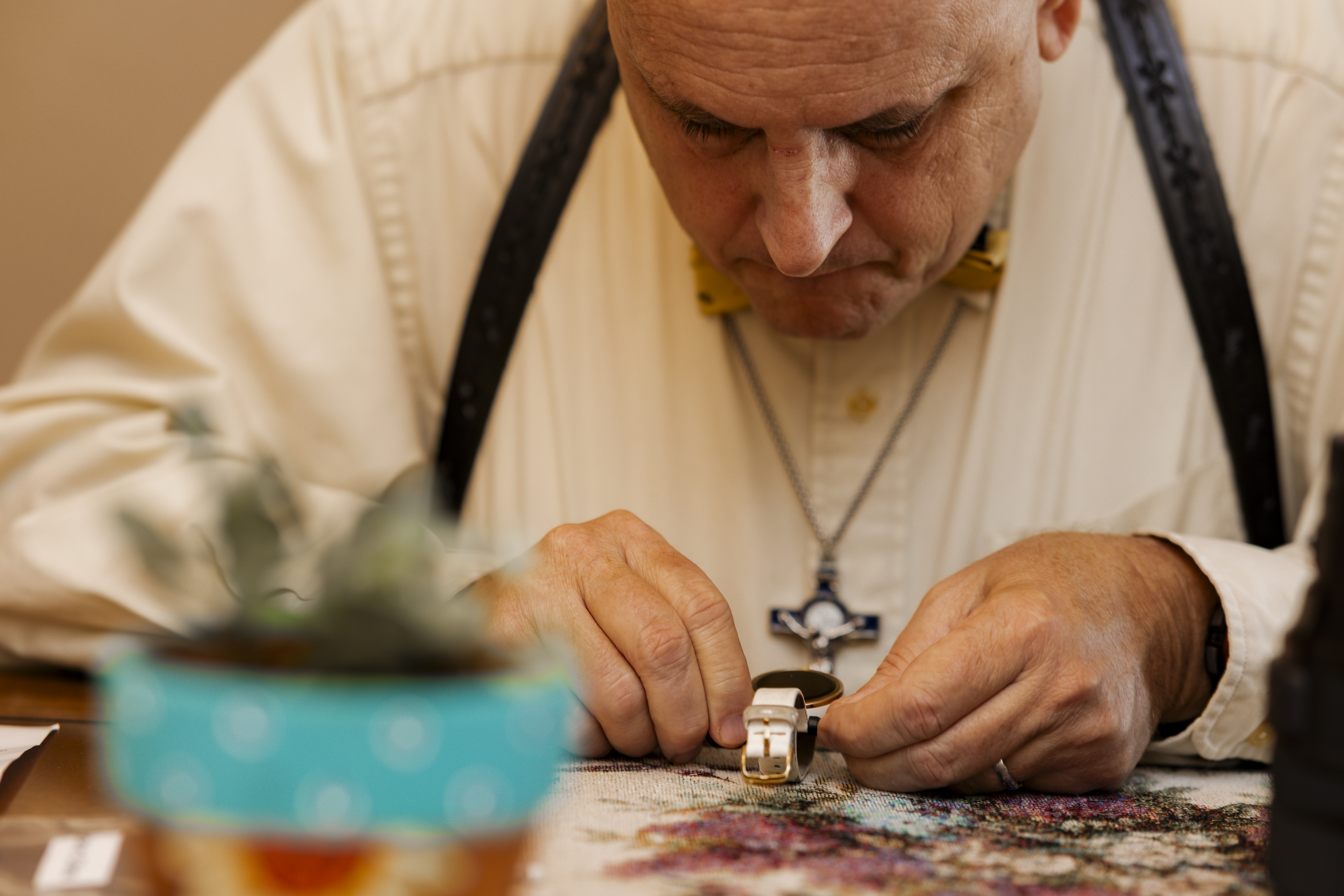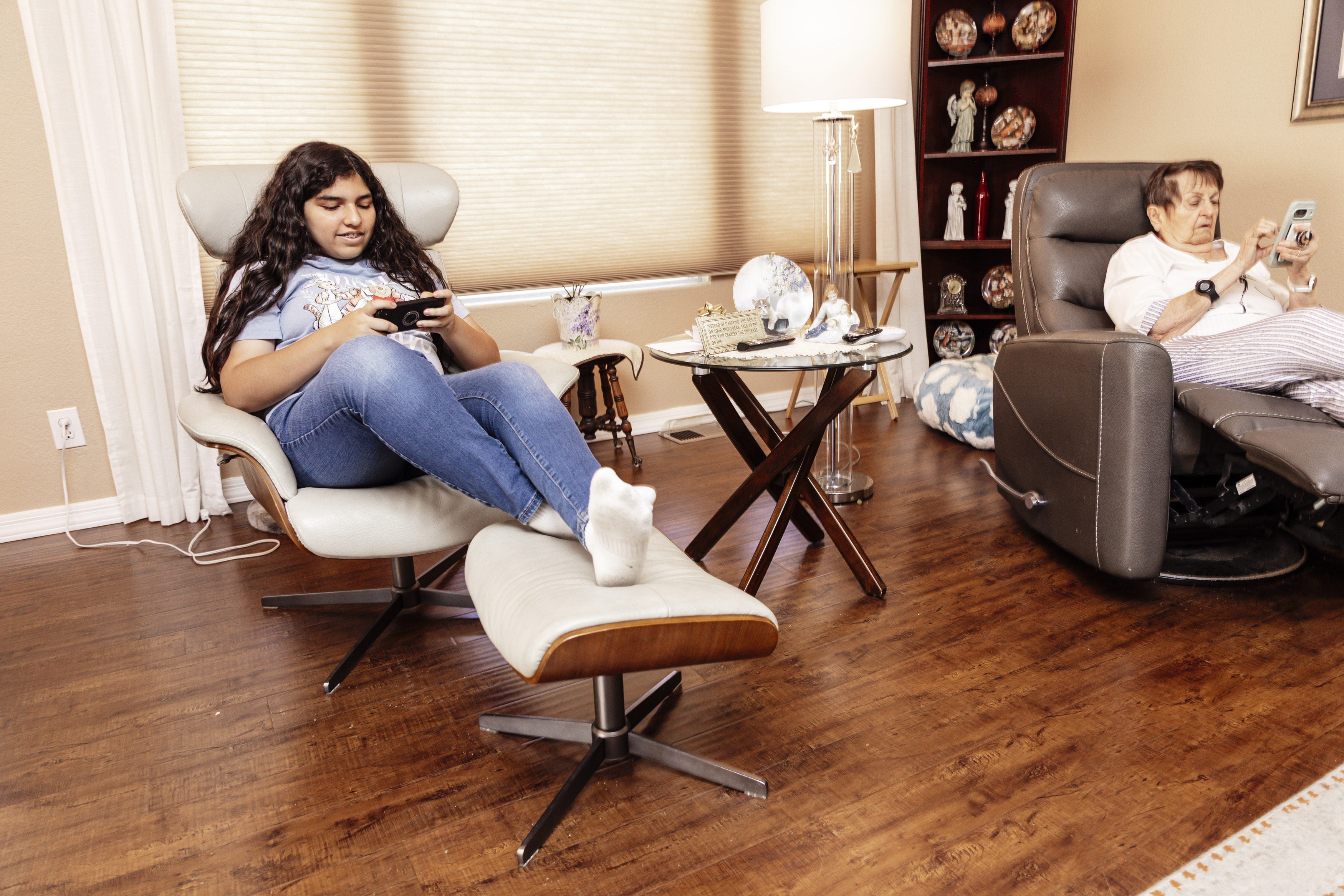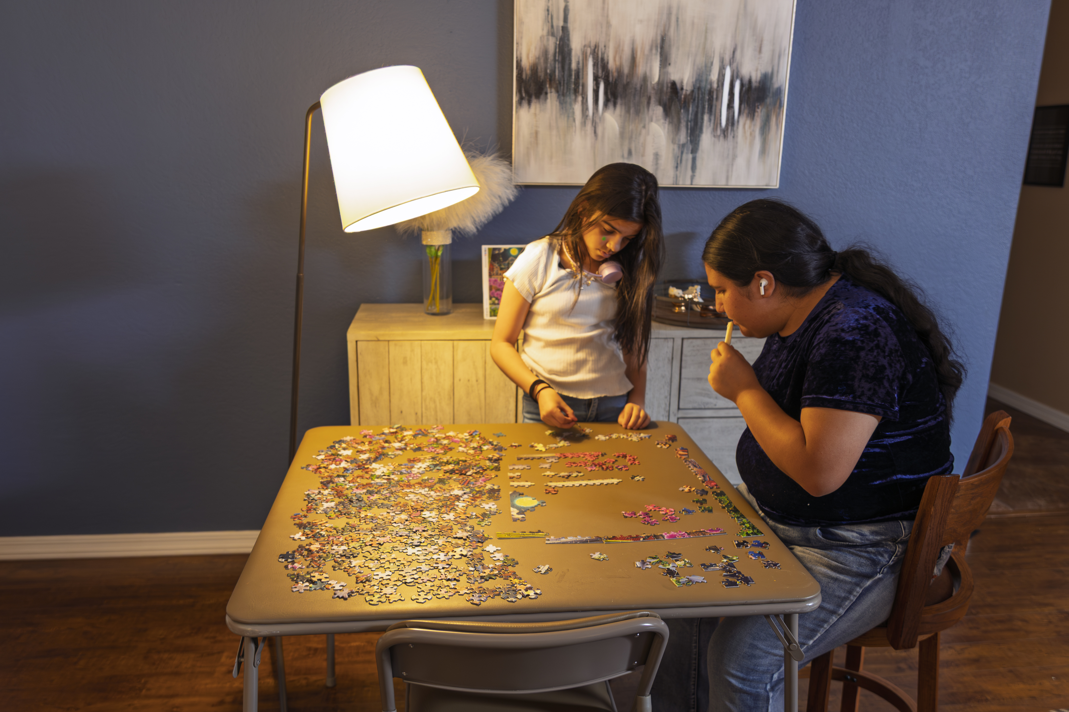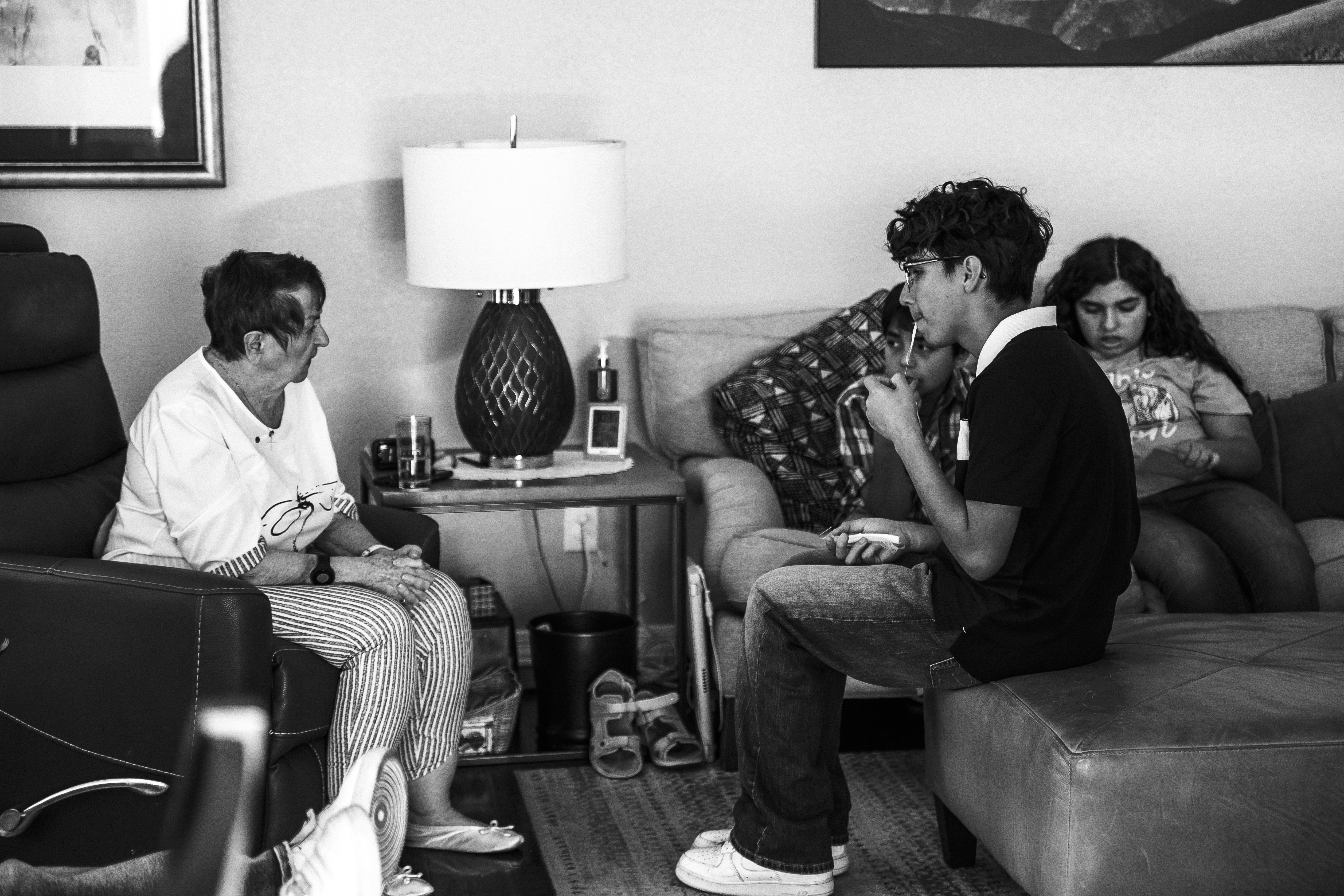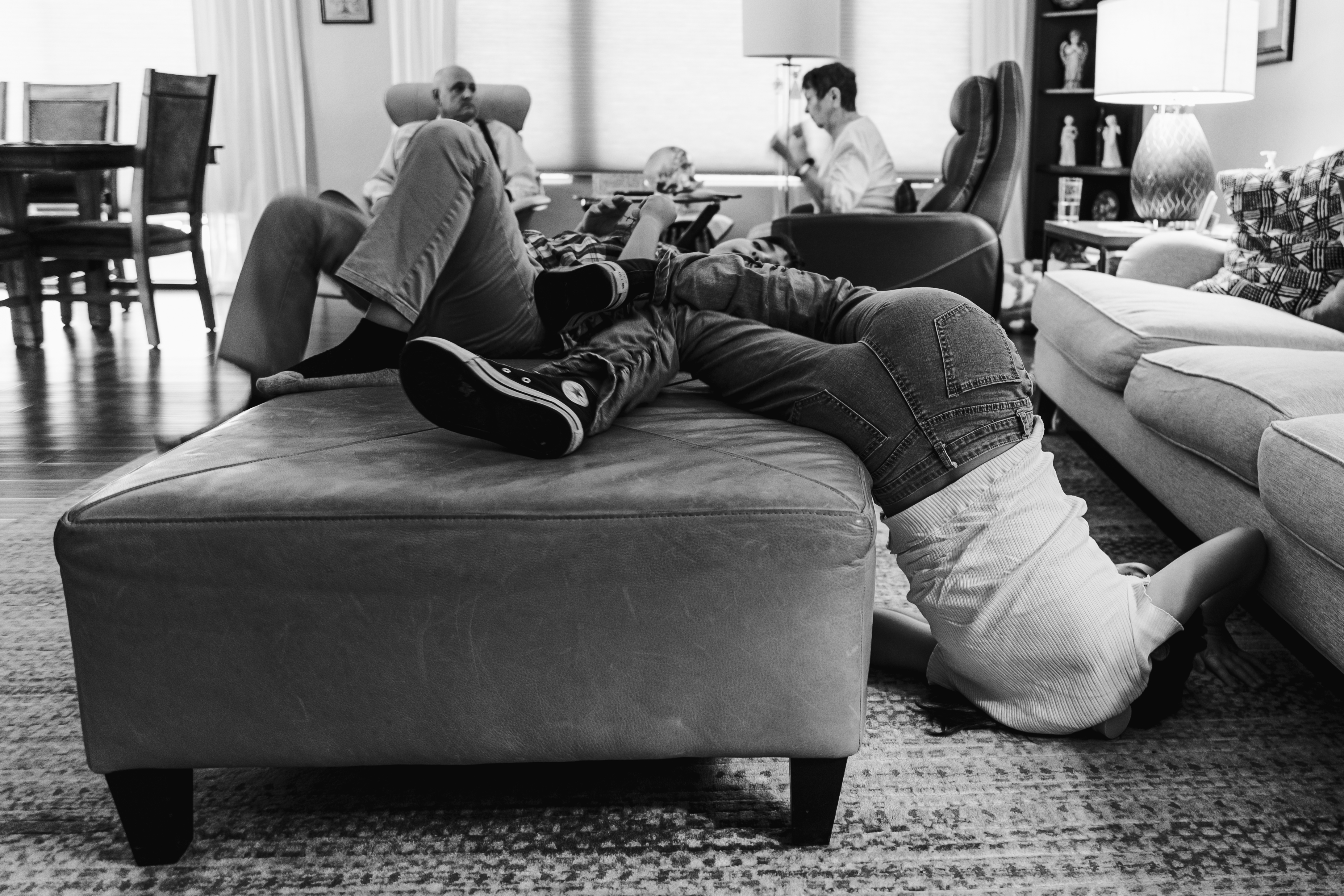 Pix of the day are mostly of the wider angle variety. I’ve been thinking in wide angles recently for some reason… there was lots of goofing around, playing on phones and tablets (Ruben took a picture of me while I took a picture of him), and putting together a big puzzle (Natalie was extremely focused on that task for the entire visit!). Paul helped Ma by putting a new watch band on her watch. Grandma gave Paul his “favorite” – a can of Vienna Sausages. 🙂