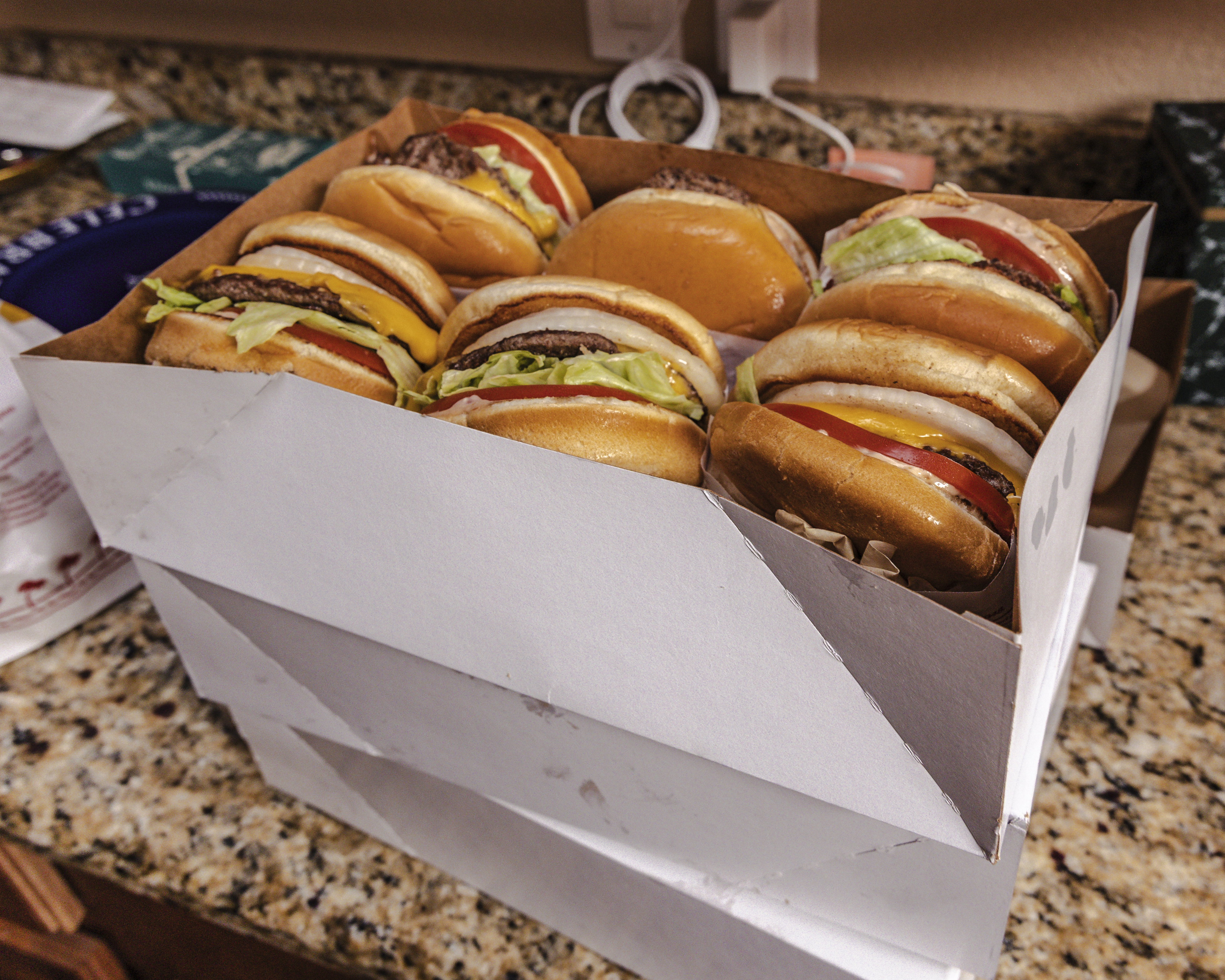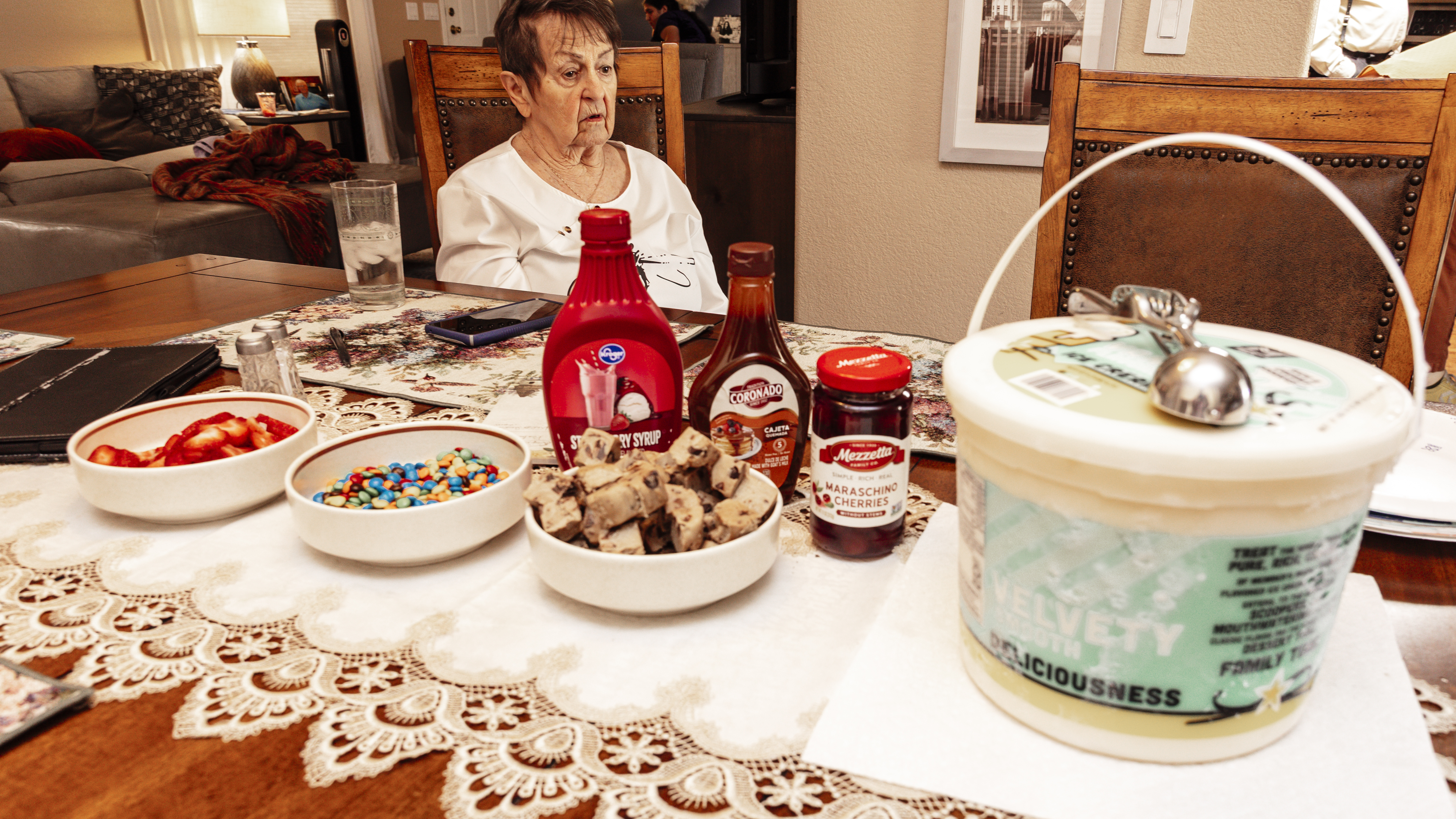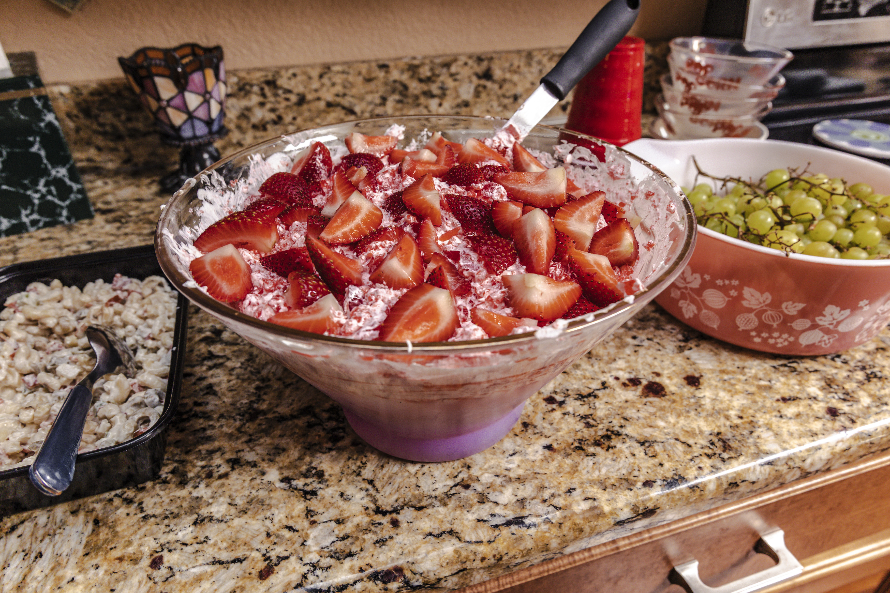 She also made a Jello, and Alyssa and Ellie mixed it up with strawberries and whipped topping for a delicious side. Paul went and picked up In-N-Out burgers and fries, and when Laurent arrived after singing her third mass of the day, she brought Ice Cream, Cookie Dough (Paul loves cookie-dough ice-cream), Mini-M&Ms, maraschino cherries, a few more sliced strawberries, and strawberry and caramel syrup for a Sundae Bar. Ugh, it was too good and very – celebratory. 😀