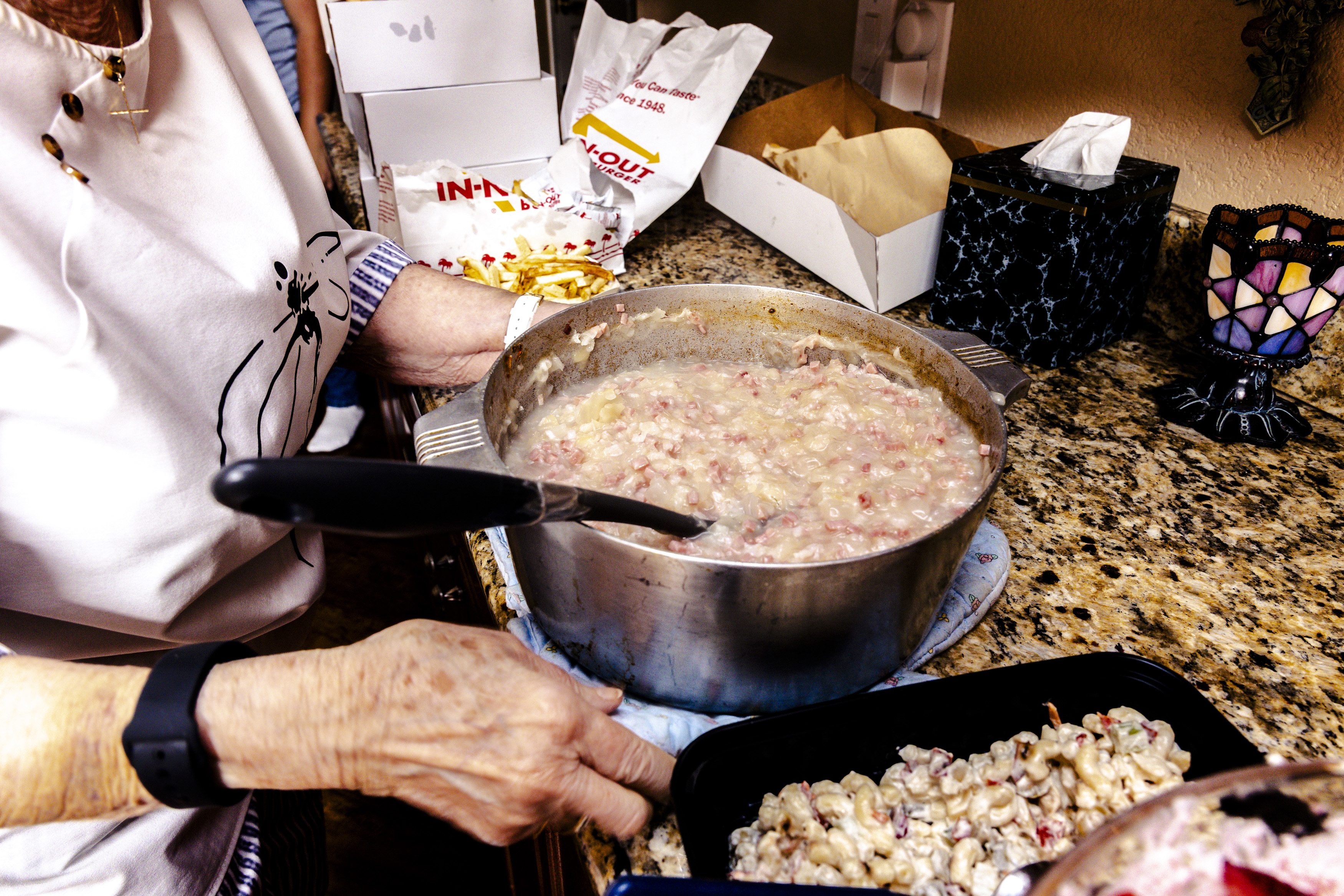 Although two of our boys, Efrain and Jake, were not feeling well today and had to stay home, the rest of us trekked over the Rio and … past Tempe Lake, to grandmother’s house, to celebrate Dad. Grandma is getting back on her feet after a few days of not doing too well, and doctor’s orders were that she keep moving, so she made Paul’s favorite family heirloom dish, “Hallupches”, the closest thing being something like Halupskie (Old German Dish). The way it has been passed down in the Heidmann family is rice is slowly cooked with ham bone and juice, sauerkraut and onions, salt and pepper, adding water and stirring frequently so it never gets too thick or dried out. It would be good with sausage as well, but the family tradition is ham, and Paul loves it!
