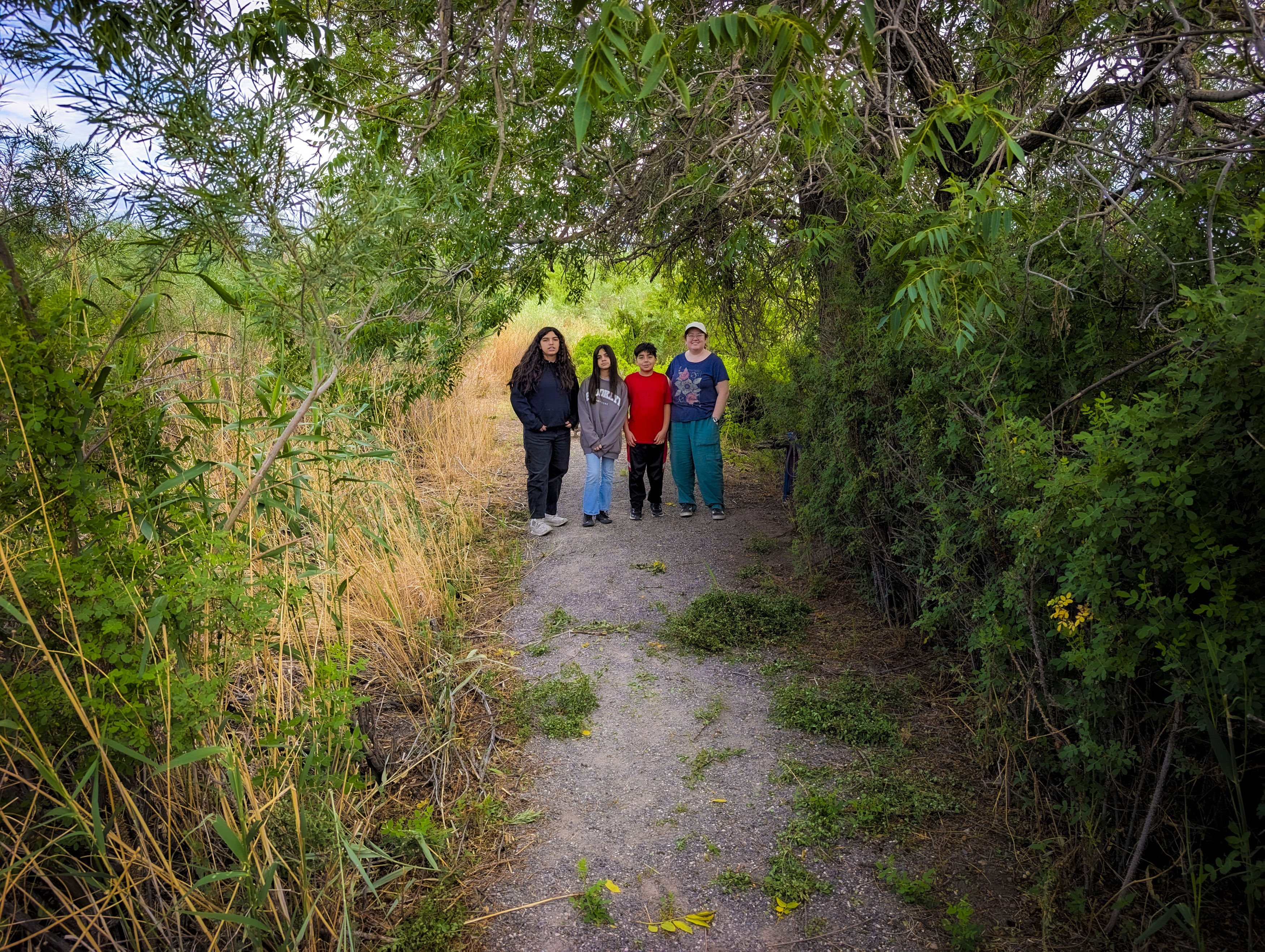 Wenima Wildlife Area is a hidden (and, I think, not well known) valley near Springerville. It has a 2.5 mile (round trip) “there and back” trail, that follows the Little Colorado River. At the end of that trail is a marsh that is home to all sorts of wildlife, with some old stable type buildings that are now the property of the Forest Service. There are several beaver dams along the way (there is a picture of one somewhere, below). Mostly, lots of messing around, being noisy (so much for the peace and quiet), and playing in the water. There are pictures of the kids having a tight squeeze through the barb wire fences. The fences are that way intentionally. Those are man-gates. They let people through, but not (larger) animals. Really pretty area.