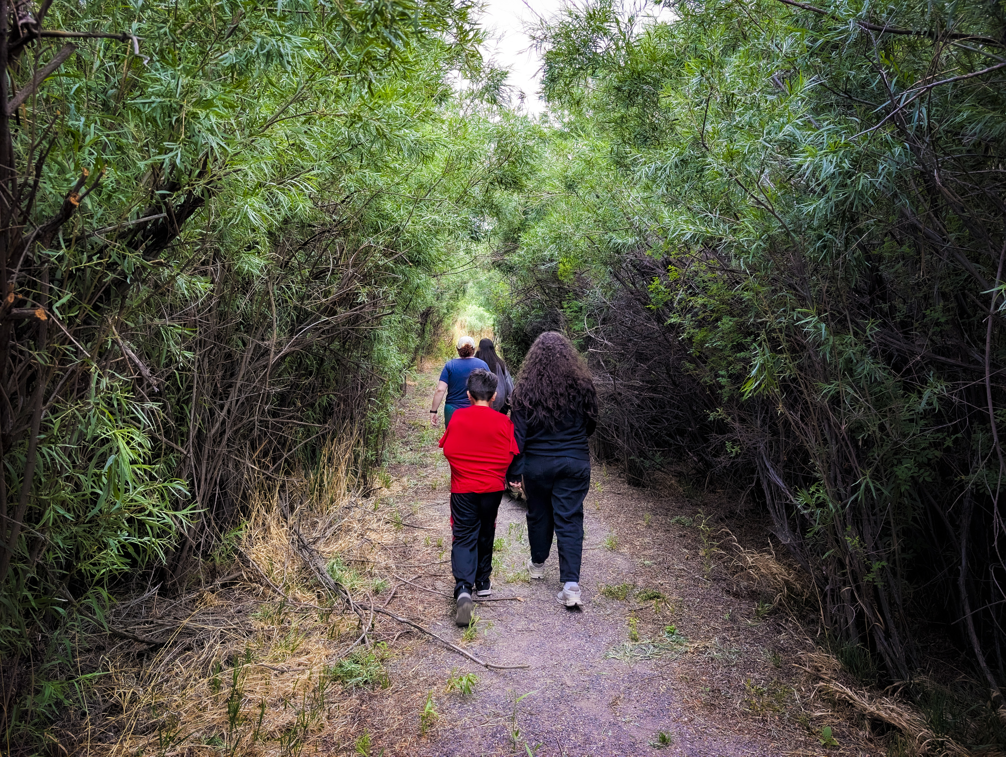 Wenima Wildlife Area is a hidden (and, I think, not well known) valley near Springerville. It has a 2.5 mile (round trip) “there and back” trail, that follows the Little Colorado River. At the end of that trail is a marsh that is home to all sorts of wildlife, with some old stable type buildings that are now the property of the Forest Service. There are several beaver dams along the way (there is a picture of one somewhere, below). Mostly, lots of messing around, being noisy (so much for the peace and quiet), and playing in the water. There are pictures of the kids having a tight squeeze through the barb wire fences. The fences are that way intentionally. Those are man-gates. They let people through, but not (larger) animals. Really pretty area.