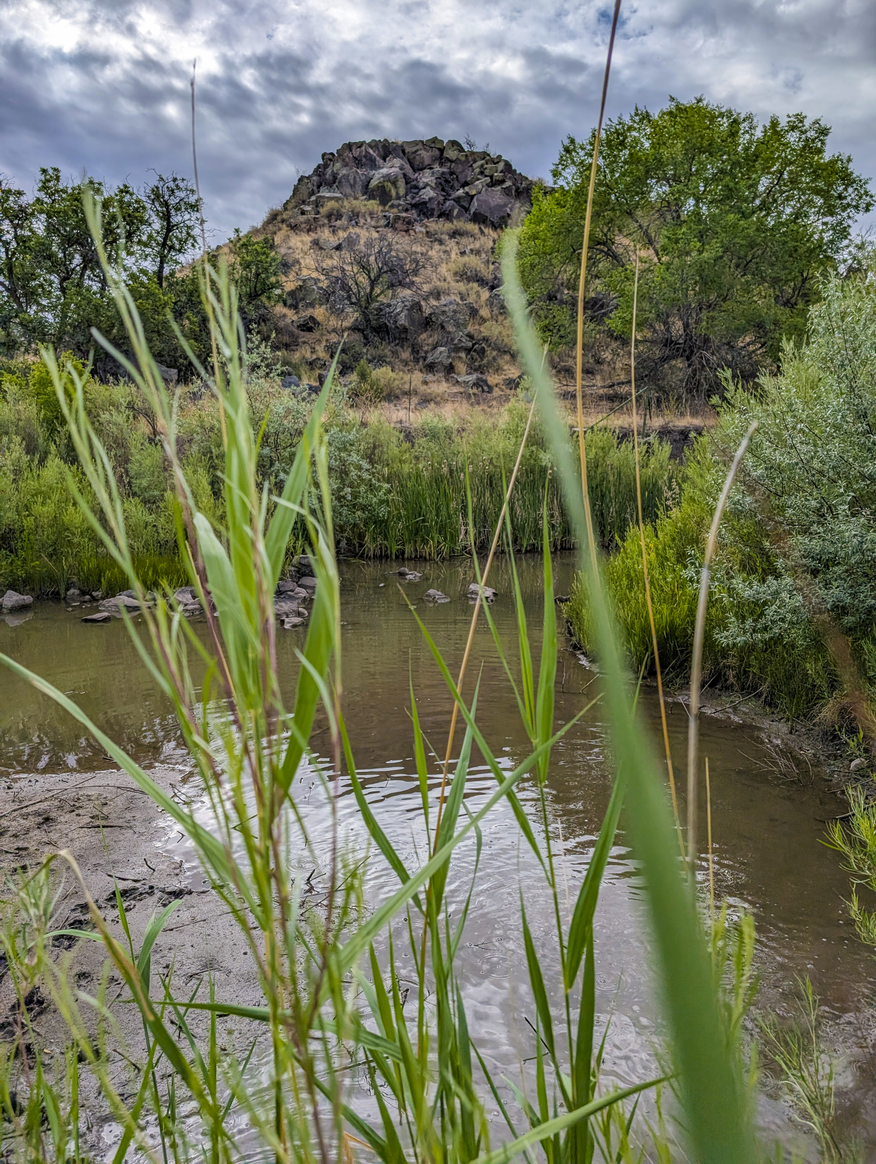 Wenima Wildlife Area is a hidden (and, I think, not well known) valley near Springerville. It has a 2.5 mile (round trip) “there and back” trail, that follows the Little Colorado River. At the end of that trail is a marsh that is home to all sorts of wildlife, with some old stable type buildings that are now the property of the Forest Service. There are several beaver dams along the way (there is a picture of one somewhere, below). Mostly, lots of messing around, being noisy (so much for the peace and quiet), and playing in the water. There are pictures of the kids having a tight squeeze through the barb wire fences. The fences are that way intentionally. Those are man-gates. They let people through, but not (larger) animals. Really pretty area.