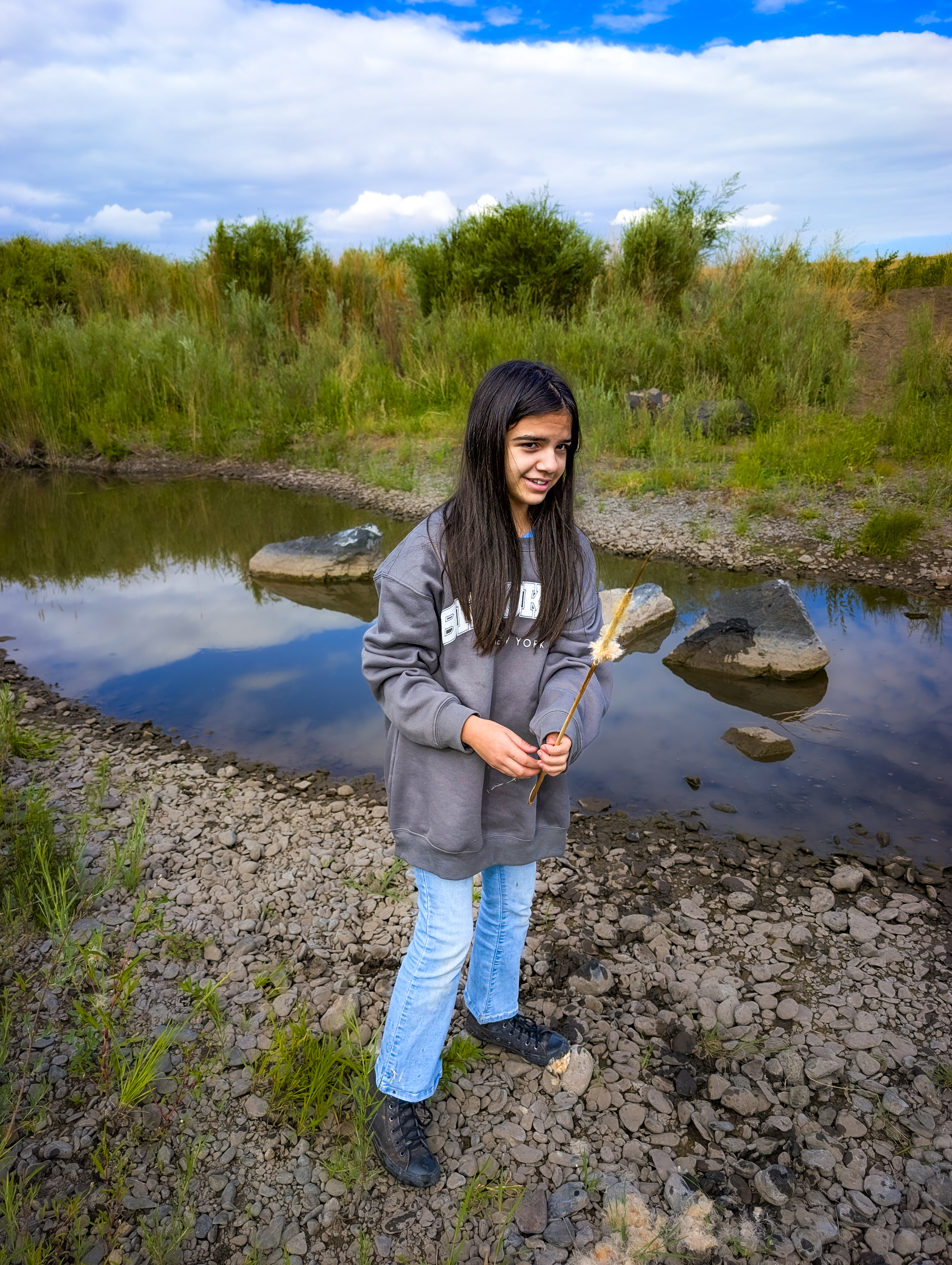 Wenima Wildlife Area is a hidden (and, I think, not well known) valley near Springerville. It has a 2.5 mile (round trip) “there and back” trail, that follows the Little Colorado River. At the end of that trail is a marsh that is home to all sorts of wildlife, with some old stable type buildings that are now the property of the Forest Service. There are several beaver dams along the way (there is a picture of one somewhere, below). Mostly, lots of messing around, being noisy (so much for the peace and quiet), and playing in the water. There are pictures of the kids having a tight squeeze through the barb wire fences. The fences are that way intentionally. Those are man-gates. They let people through, but not (larger) animals. Really pretty area.