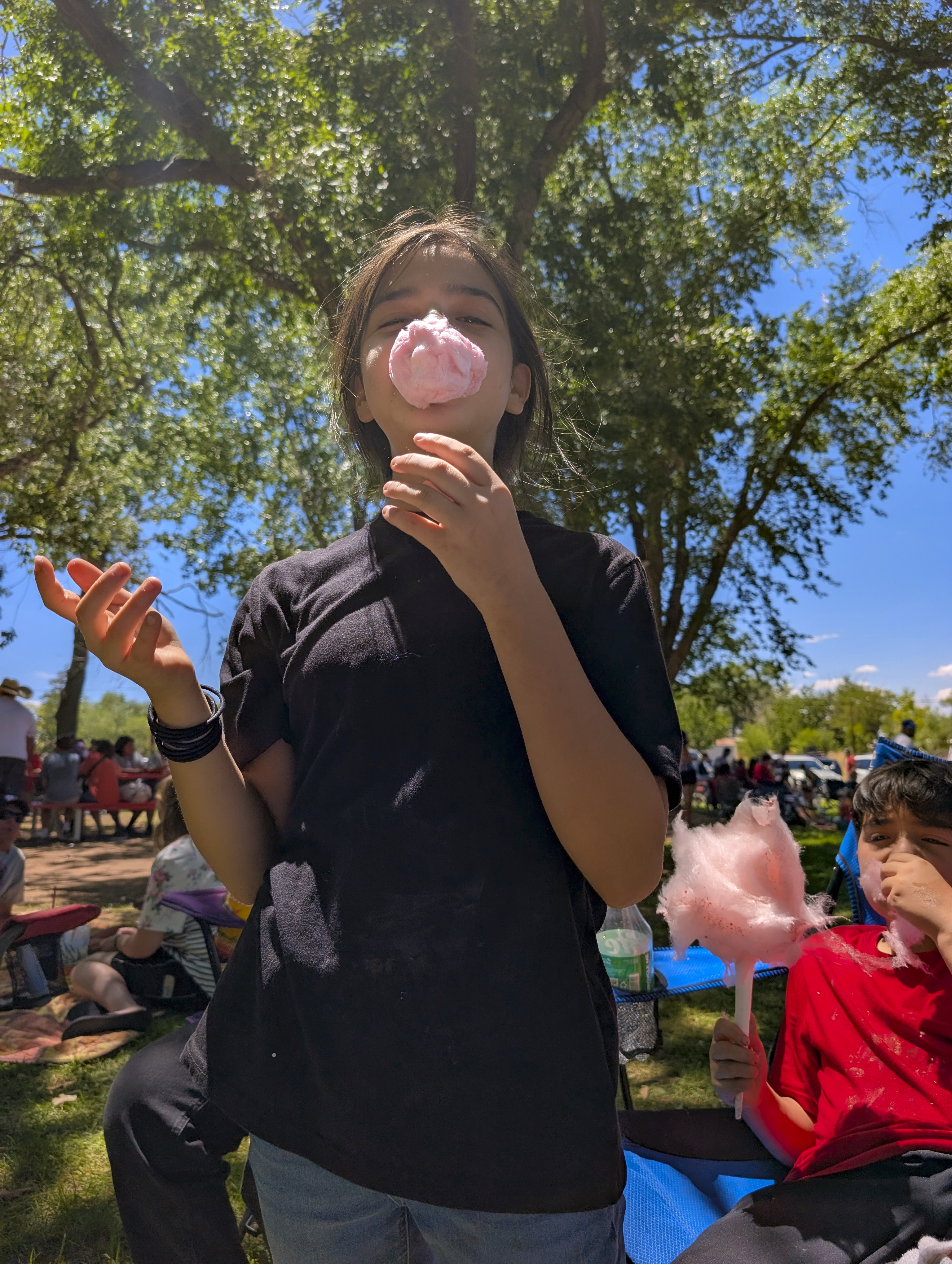 I never take pictures of what I am eating. This time, I made an exception, because, to my surprise, all that food was FREE. St. Johns was advertising a BBQ in the park, so we thought we’d show up and have some. I stopped by the ATM first, and withdrew a bunch of cash, because I thought I’d be spending a fortune! The whole town was there too. I ate so much I hurt.