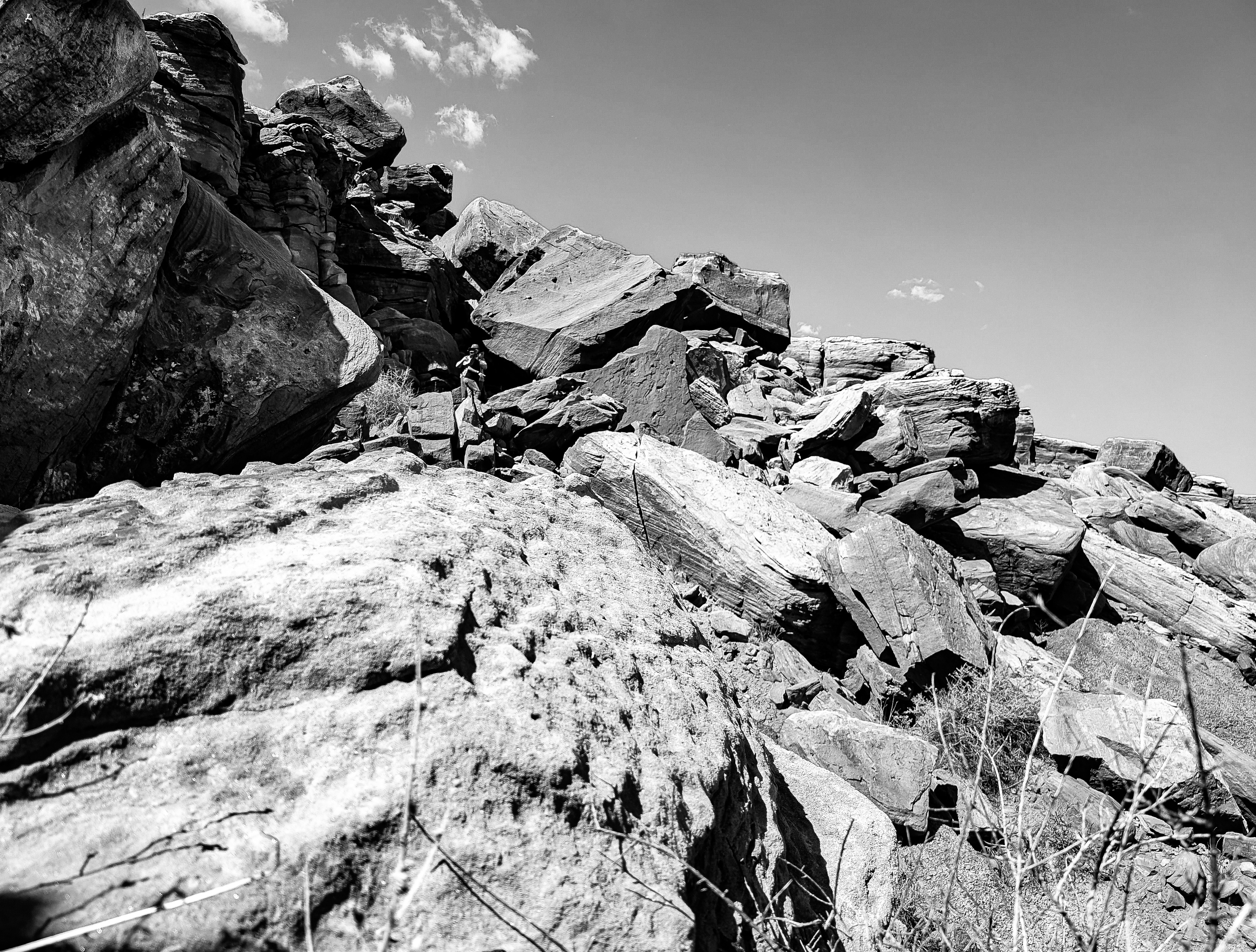 I keep bringing the kids back here, never remembering that this is a bad idea. The entire hillside is bentonite clay (decomposed volcanic ash), which is very crumbly and slick. This makes many of the rocks unstable (because they rest on the bentonite). Further, most of the rocks are either sandstone or mudstone, which means they are prone to cleaving (breaking up). So, we end up climbing this slick steep hill, grabbing onto rocks that either slide away or break up. The hill is bigger than it looks in that first picture too. In a few of the pictures, if you look closely down in the valley below, you’ll see the little white dot that is my Tacoma. That should give you an idea. We sure had fun, though. We made it up and down, with no injuries!