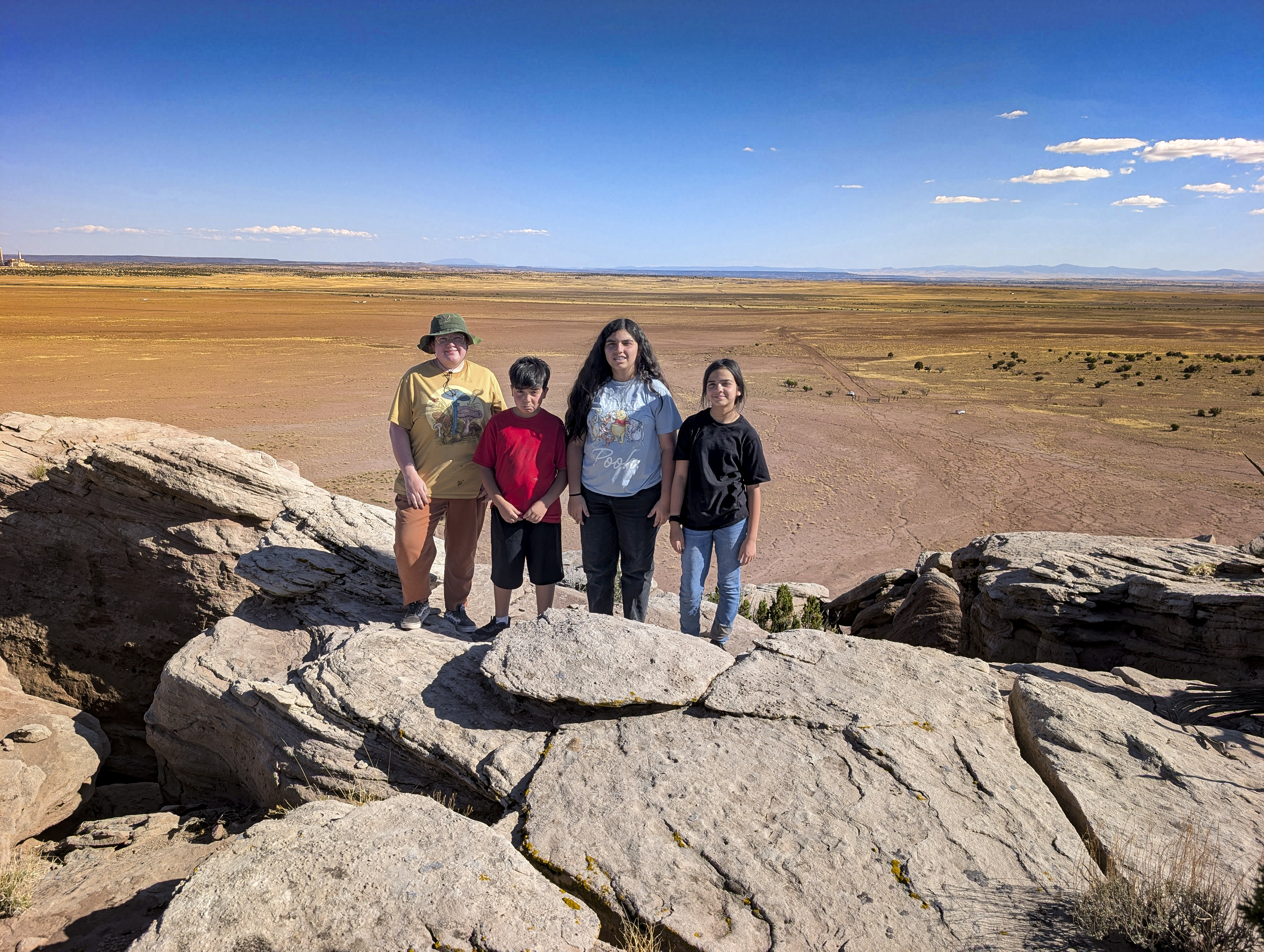 Right at the base of “Bald Spot Mountain” is Jarvis Wash. That’s a very wide (and very sandy) wash that runs for many miles. Right next to the “road” (if you can call it that) that takes us to the base of Bald Spot Mountain is a shade tree that is perfect for a picnic. So, after our hike, that’s just what we did. I forgot to throw the chairs into the back of the Tacoma, so the kids had to sit on the tailgate (and I was relegated to sitting on the ground). Tasty sandwiches!
