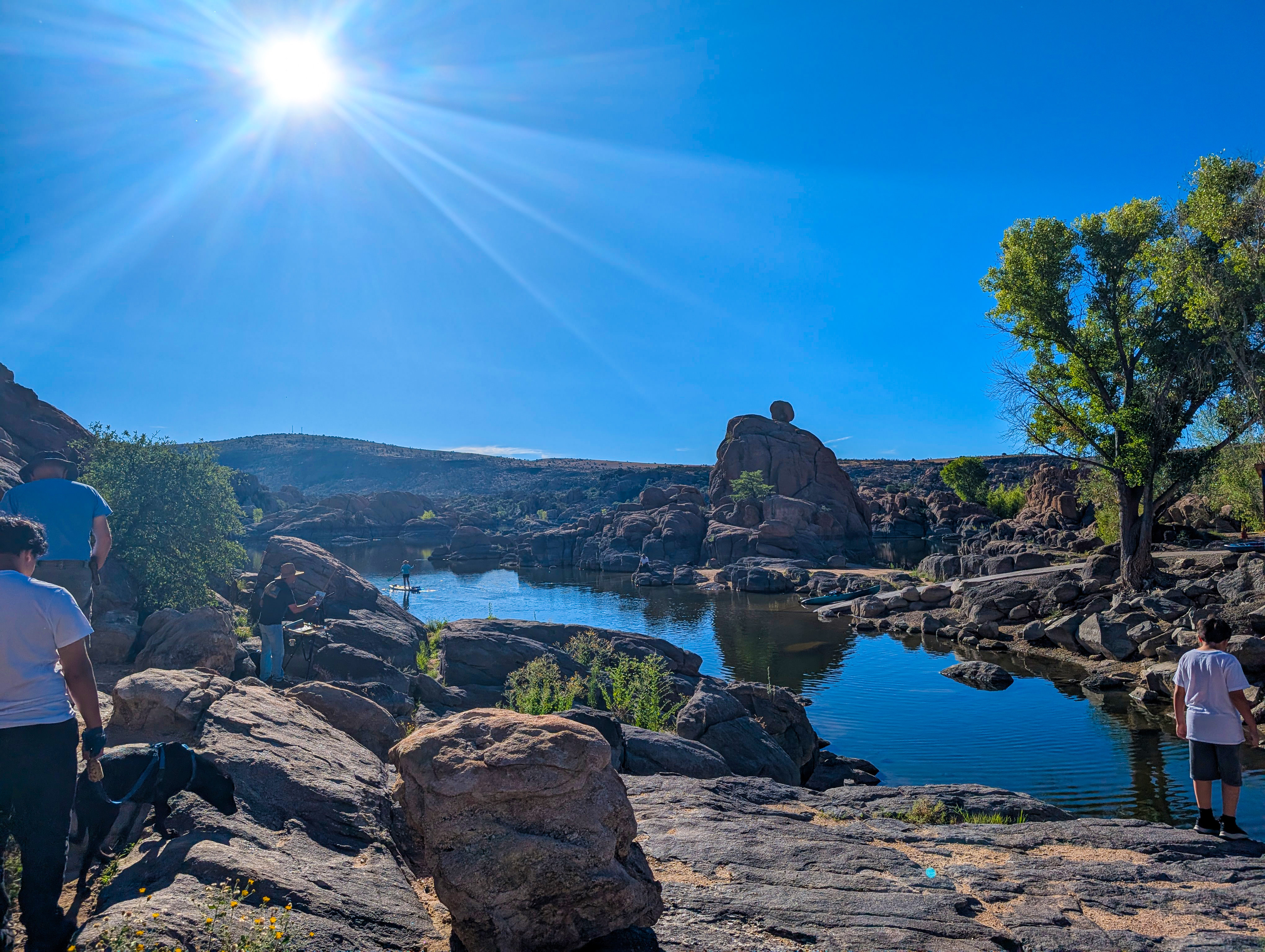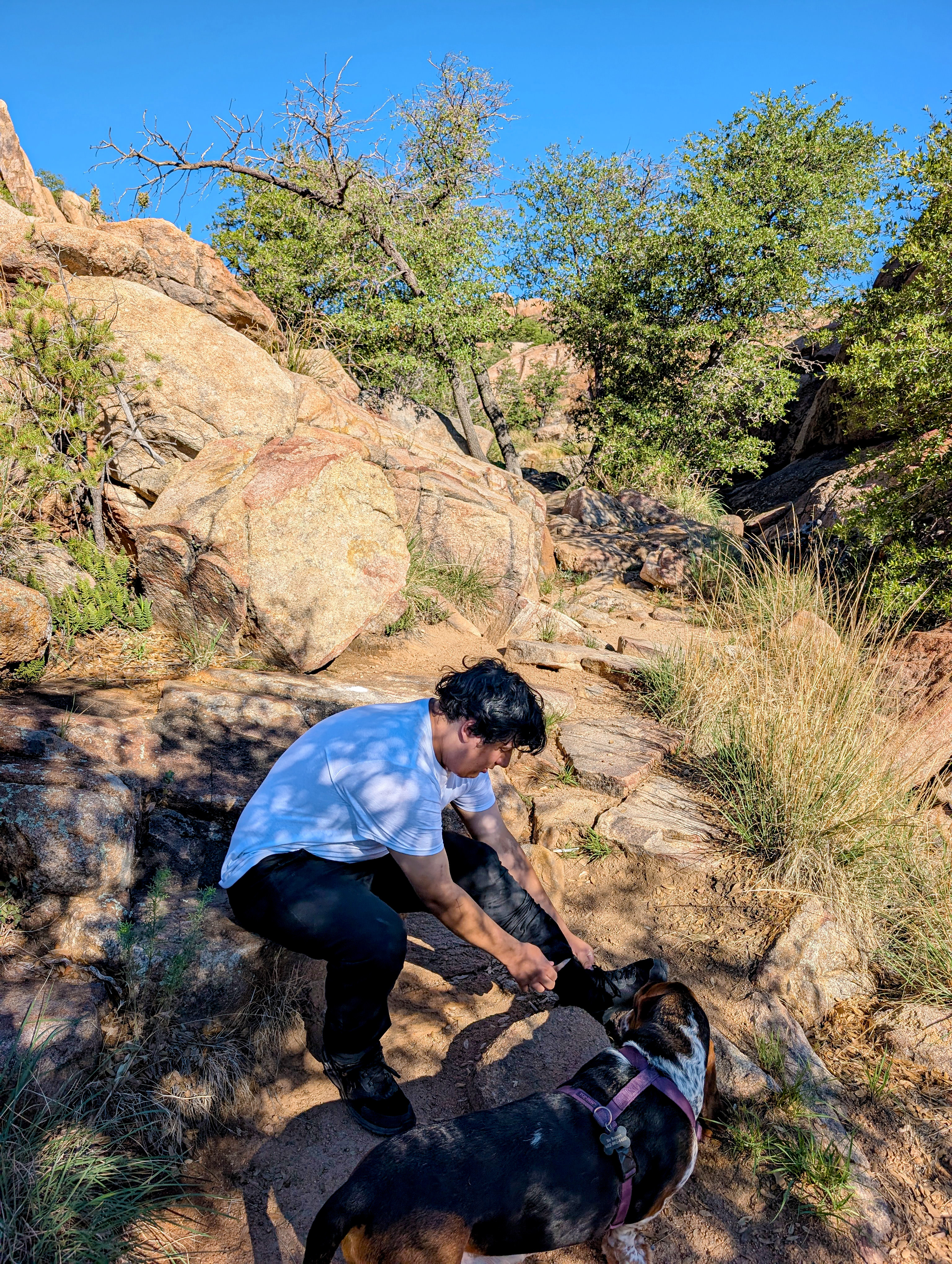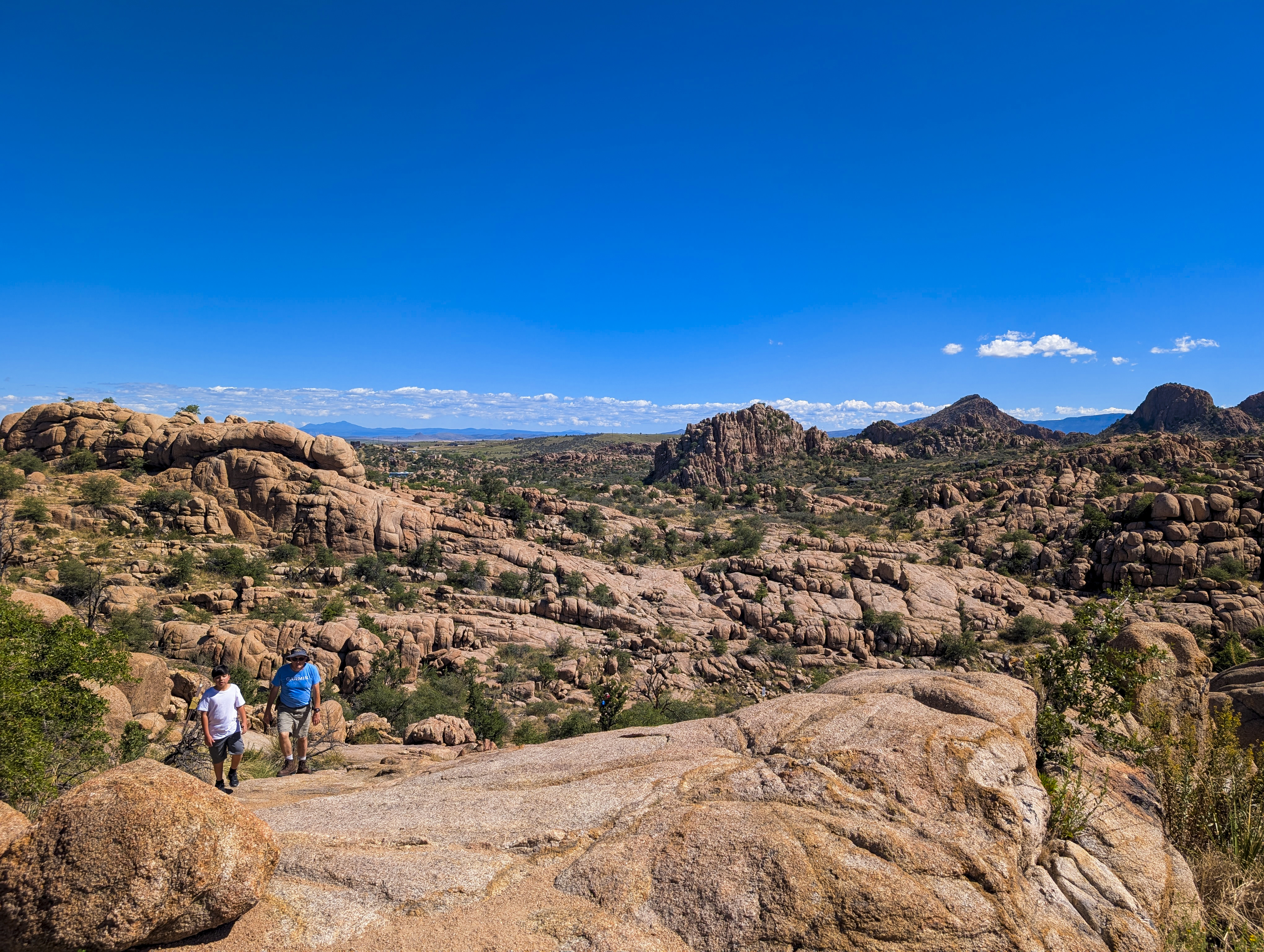 Saturday, being the day after my excursion to the hospital, was not a day for me to go hupping around in the hills of Prescott. However, Paul and Laurent, together with Efrain and Ruben and Nyx and Rupert, all bundled themselves into her little Toyota and traveled a little bit north to a little bit higher and a little bit cooler terrain, and had themselves a hike around Watson Lake, one of Arizona’s iconic landscapes. I would have Paul give you a detailed and dramatic telling of their sojourn; however, apparently it didn’t go so well for Ruben, who was suddenly and inexplicably very concerned about the bugs, and possibly other elements of nature. In any case, it was a very beautiful place for a walk. 10/10 recommend, if you can handle a little climbing.