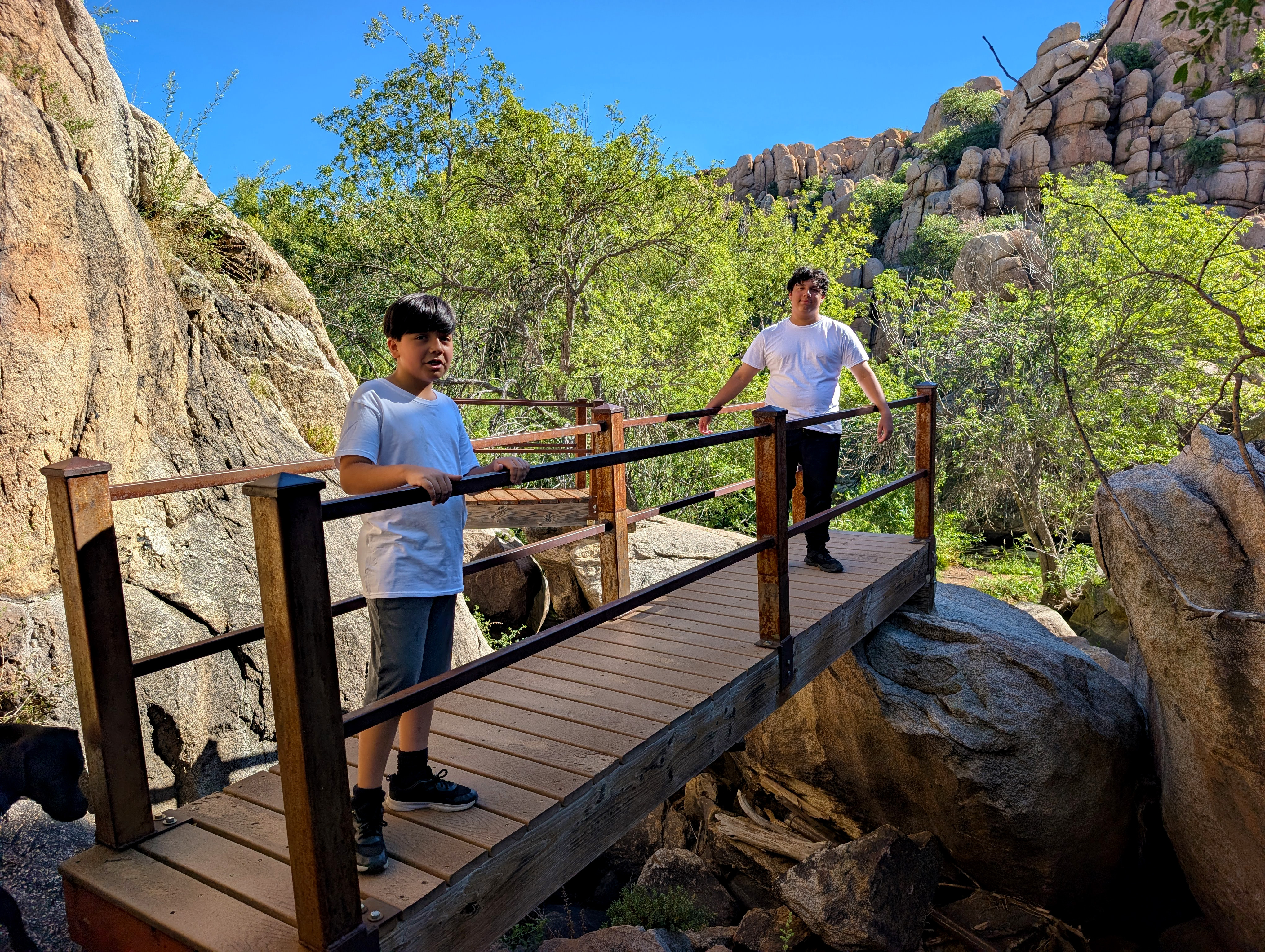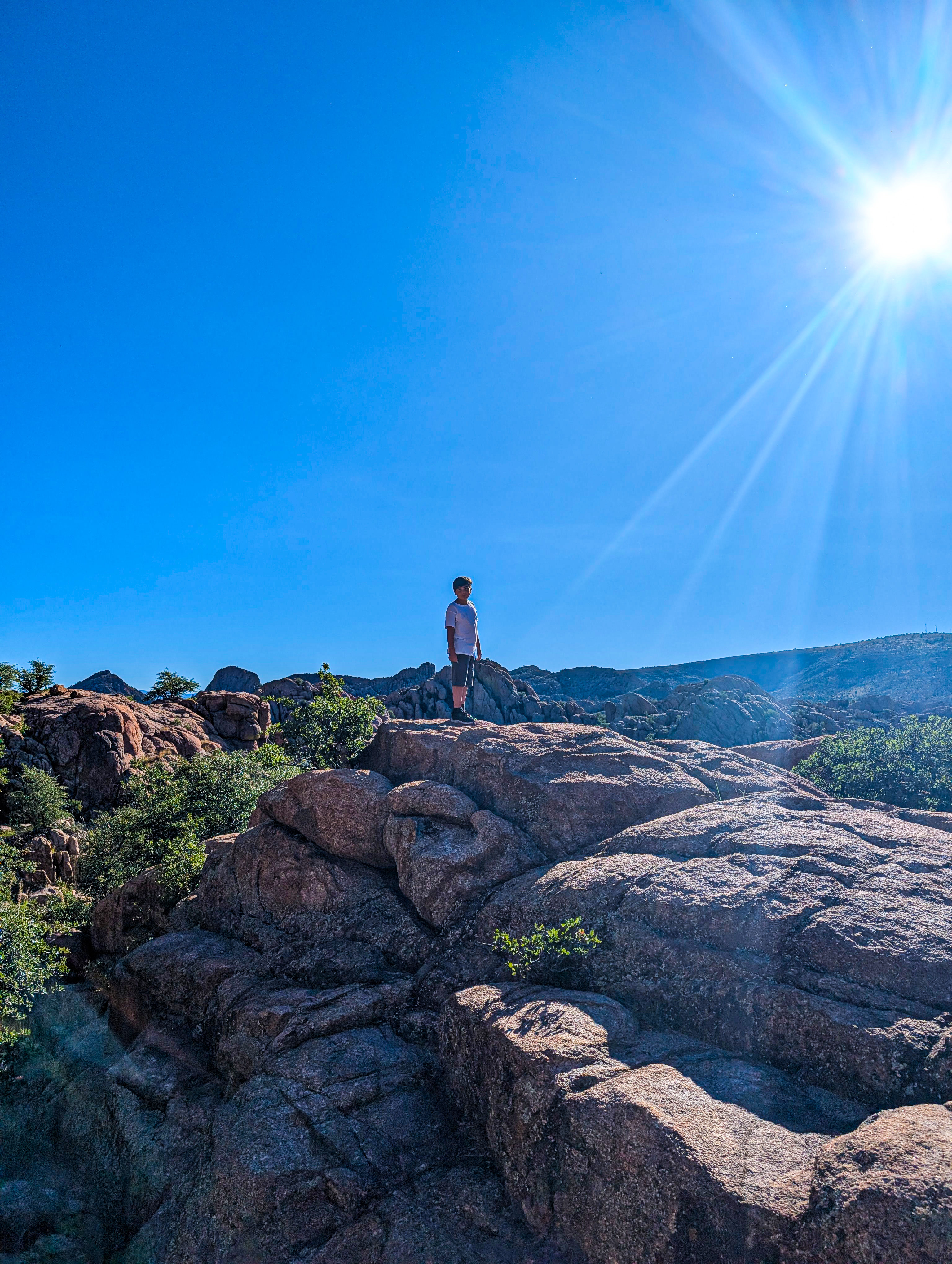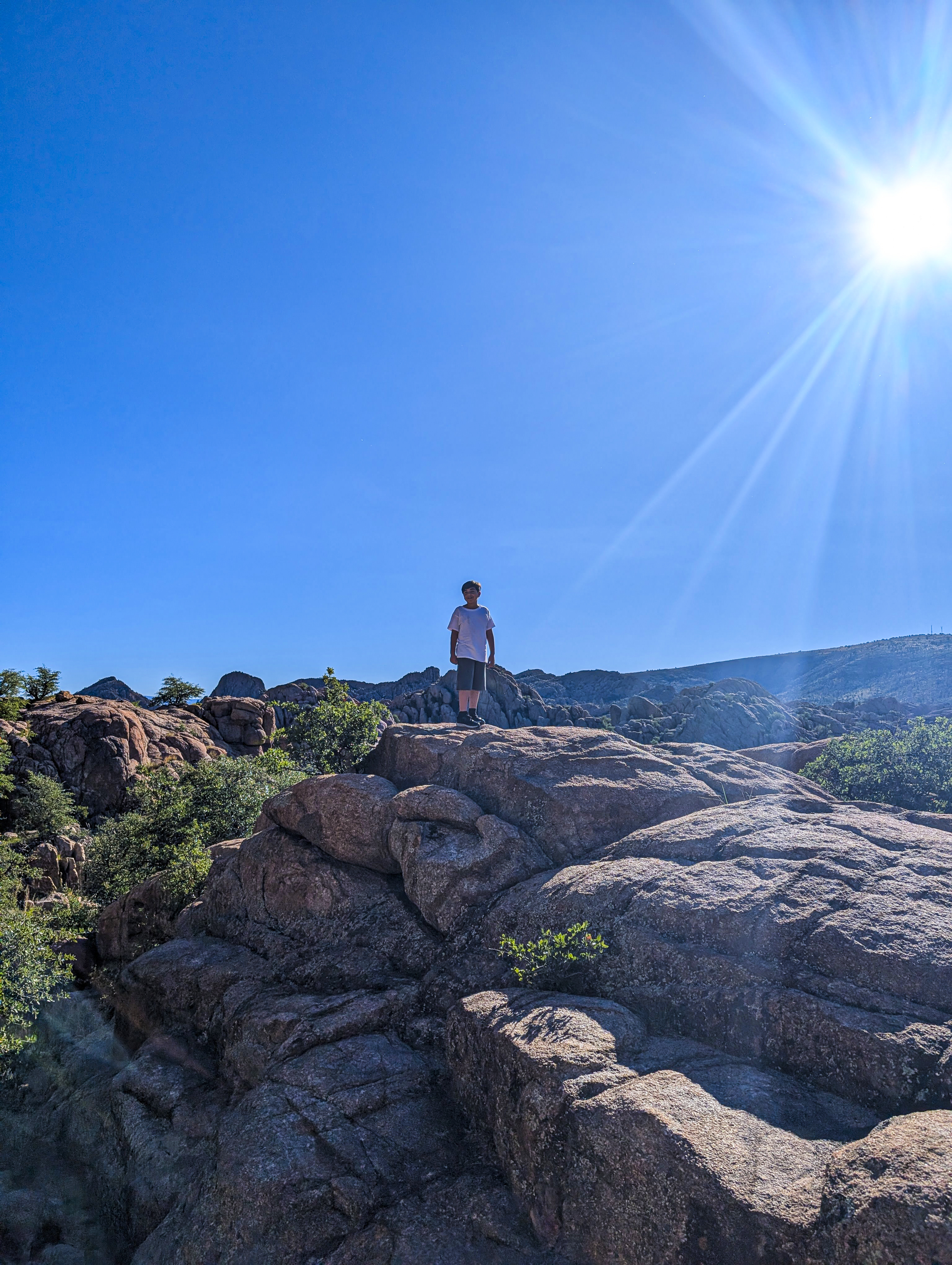 Saturday, being the day after my excursion to the hospital, was not a day for me to go hupping around in the hills of Prescott. However, Paul and Laurent, together with Efrain and Ruben and Nyx and Rupert, all bundled themselves into her little Toyota and traveled a little bit north to a little bit higher and a little bit cooler terrain, and had themselves a hike around Watson Lake, one of Arizona’s iconic landscapes. I would have Paul give you a detailed and dramatic telling of their sojourn; however, apparently it didn’t go so well for Ruben, who was suddenly and inexplicably very concerned about the bugs, and possibly other elements of nature. In any case, it was a very beautiful place for a walk. 10/10 recommend, if you can handle a little climbing.