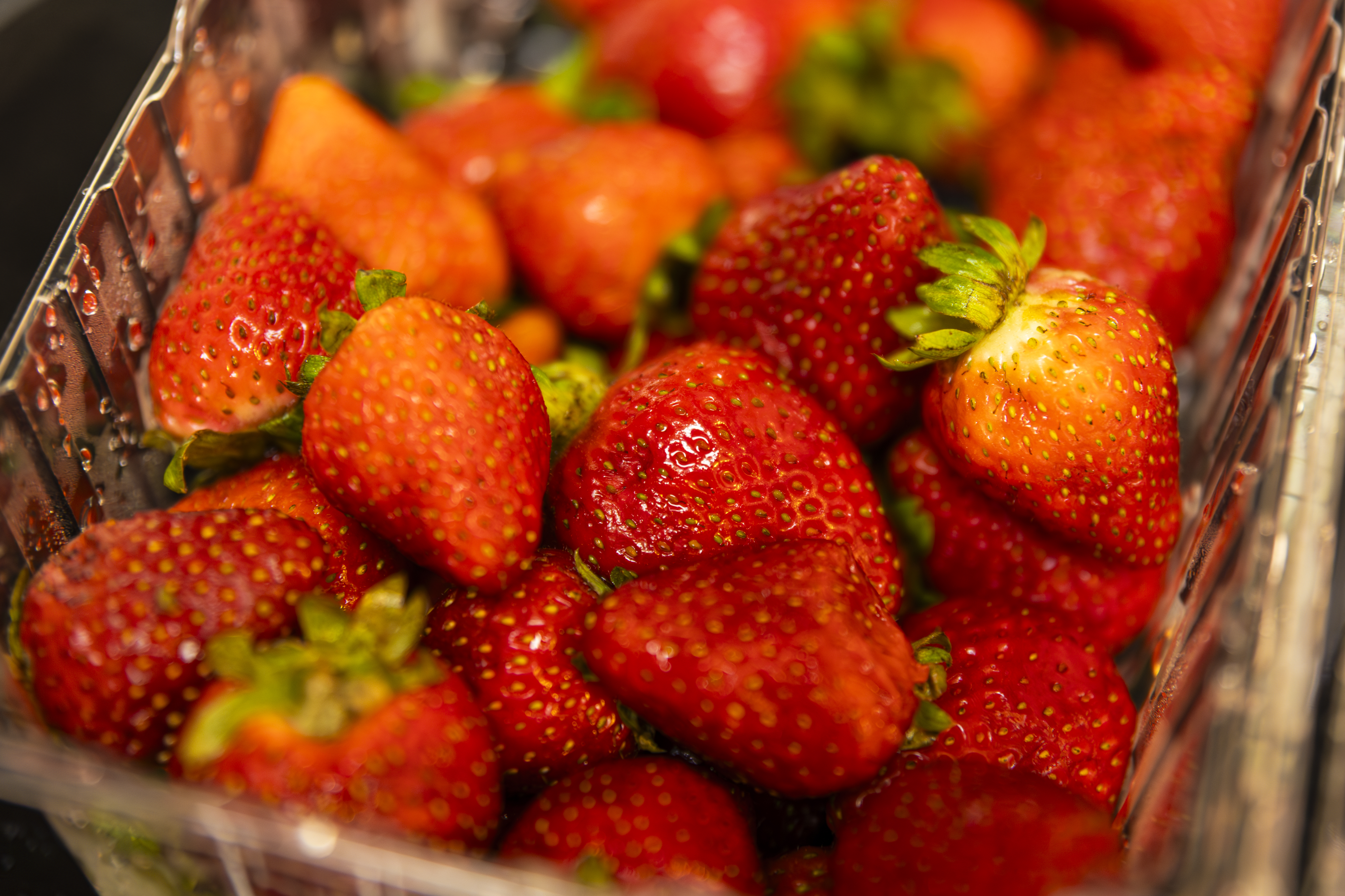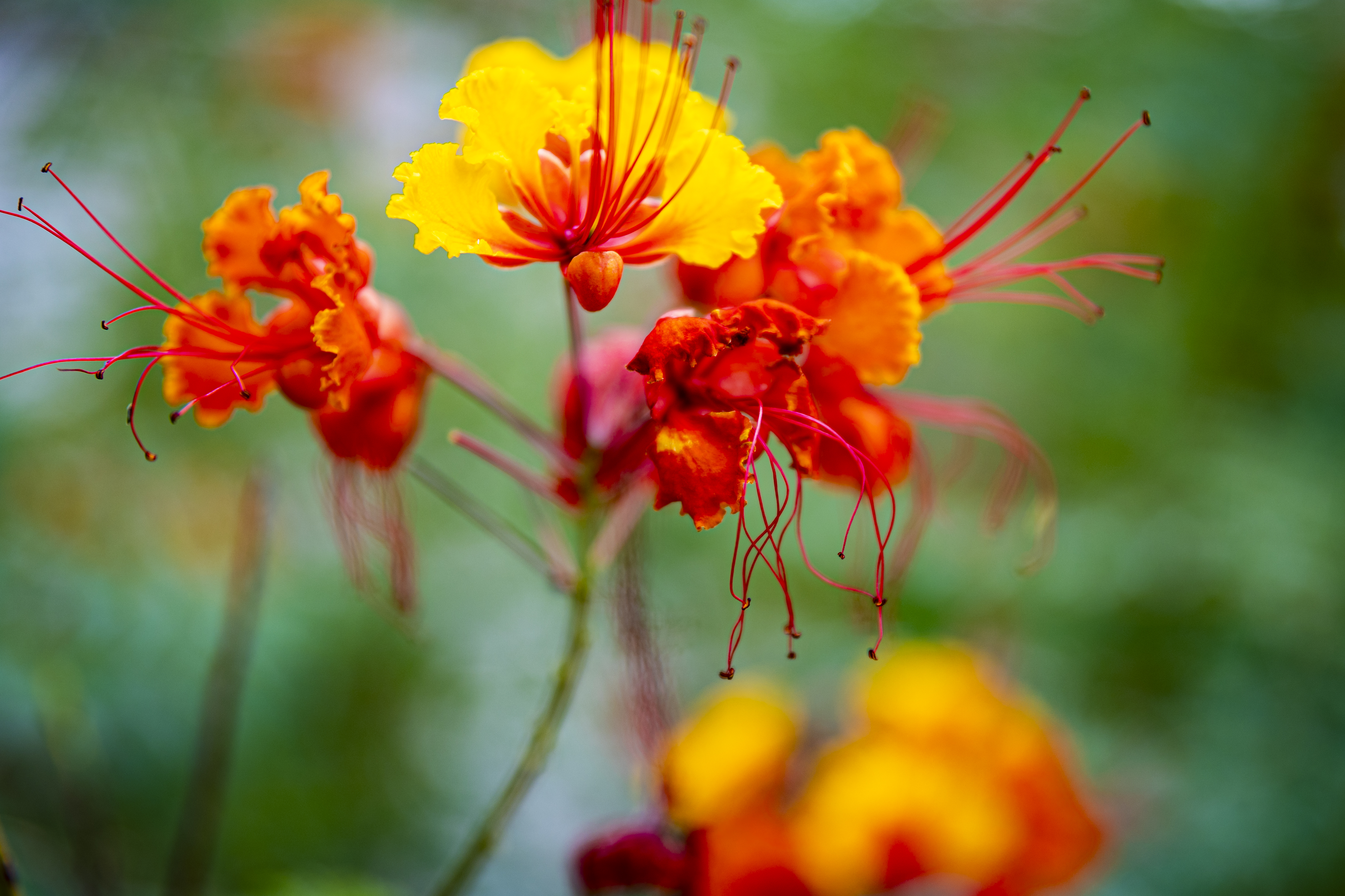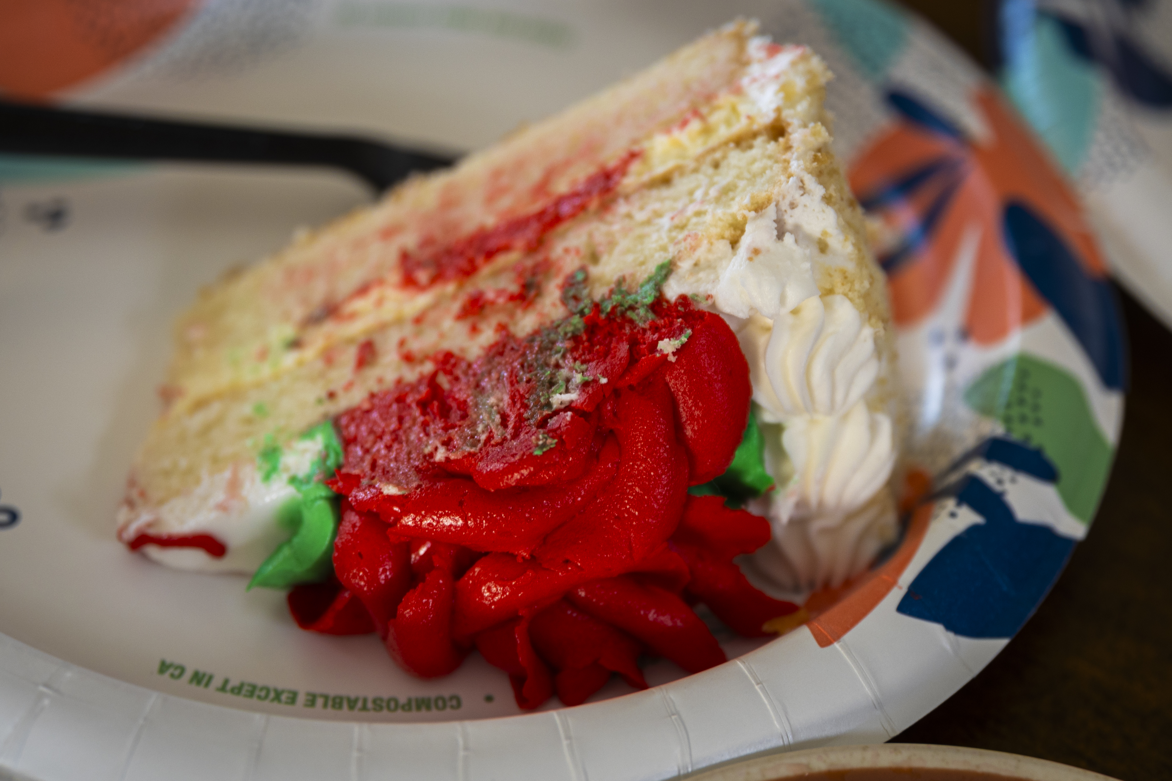 And, though he didn’t want a big whoop-de-do for his birthday, we had to do a little celebrating. At Grandma’s for the typical Sunday festivities, in addition to the In-N-Out burgers, there were veggies, shrimp cocktail, strawberries and whipped cream o’plenty, and of course delicious cake. (And I may have stepped out onto the patio to try to capture one of the many bees buzzing around Granda’s enormus Desert Bird Of Paradise bush – no joy, they were too fast for me – but the flowers are beauteous!)