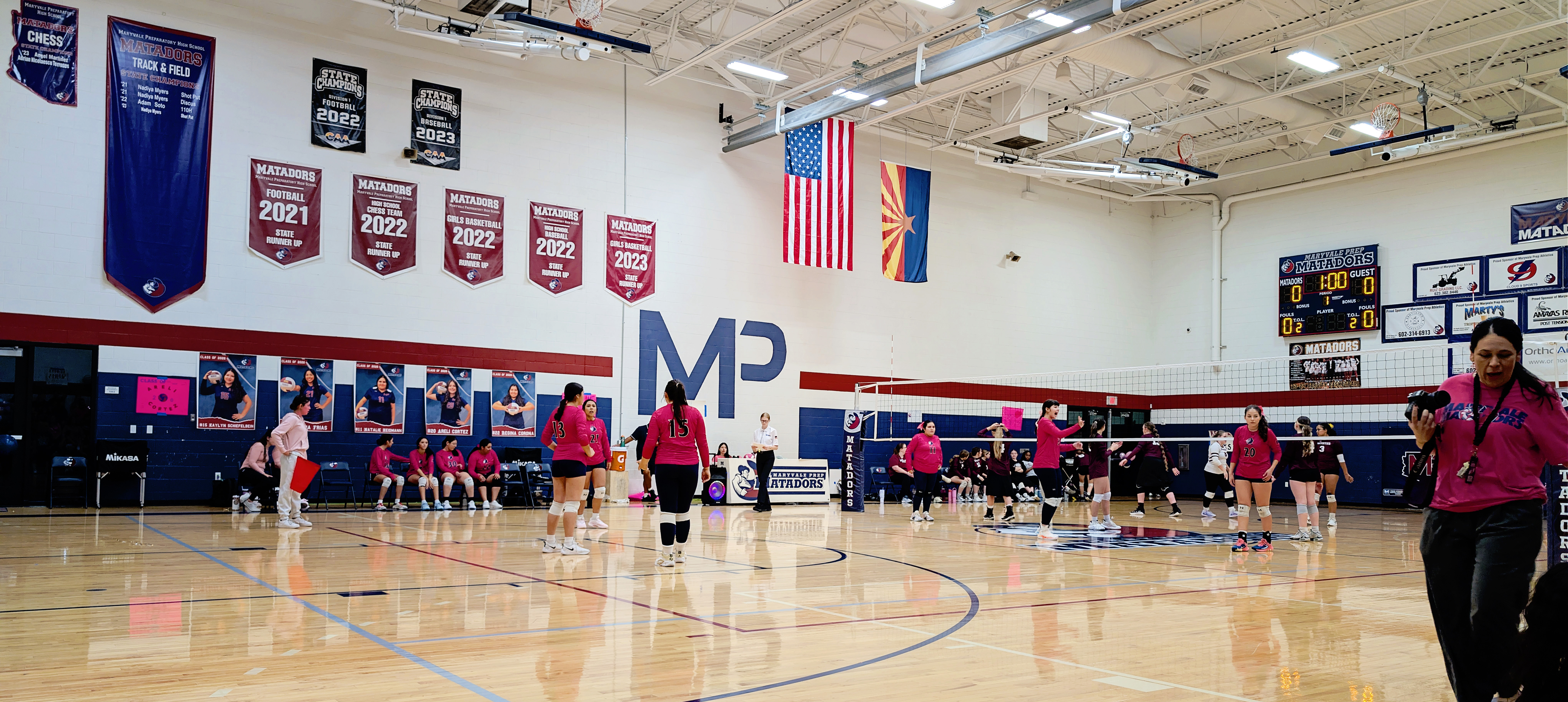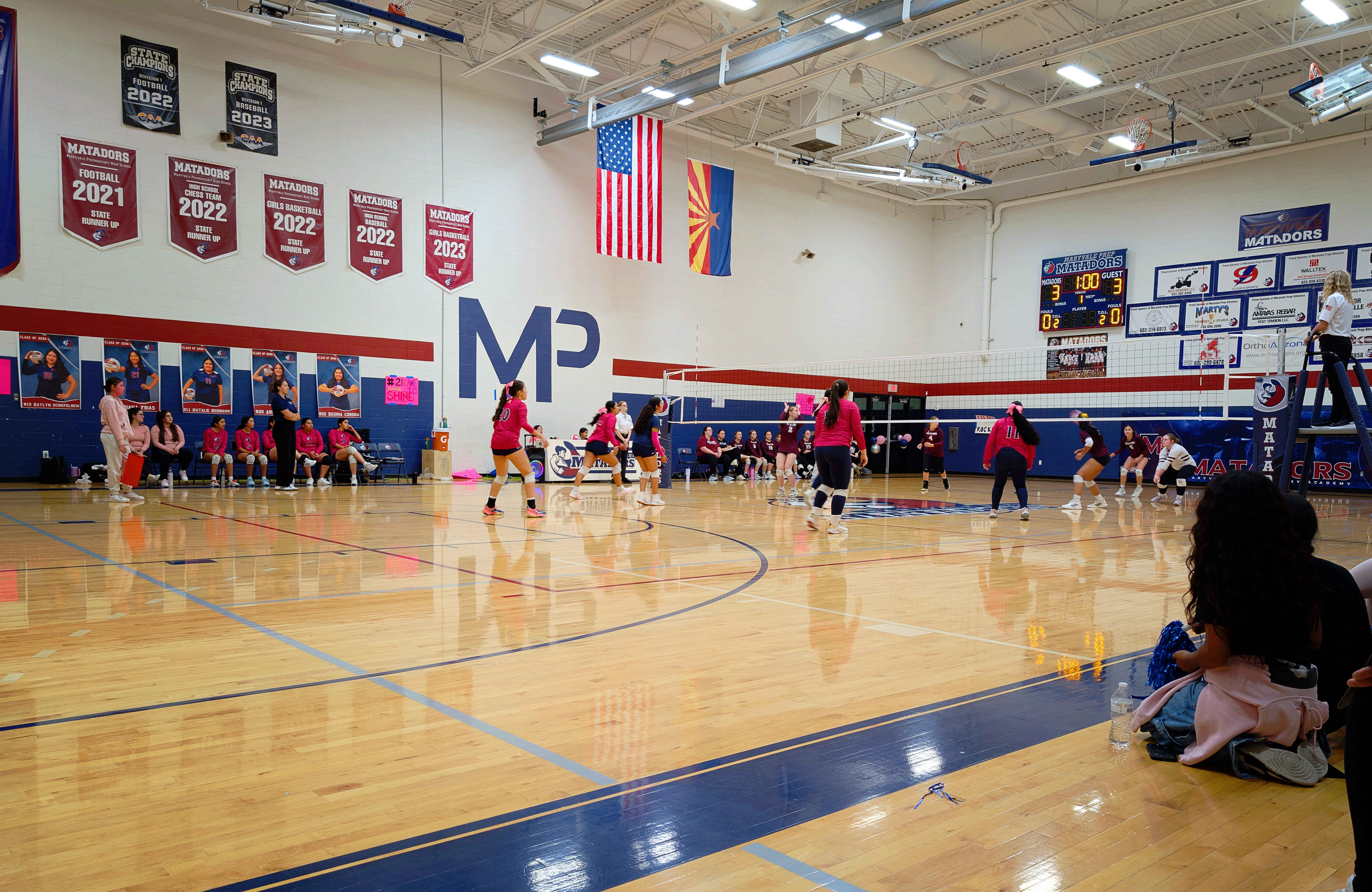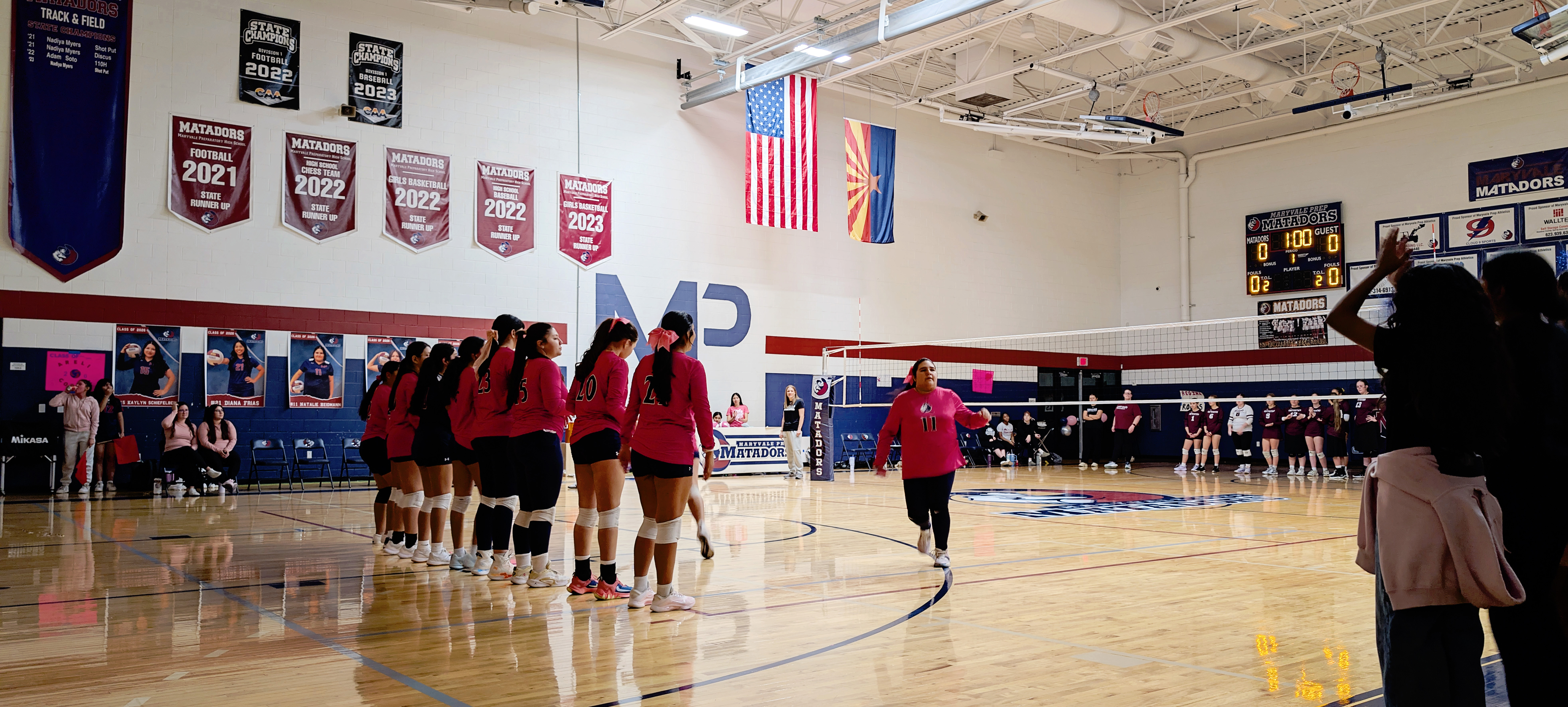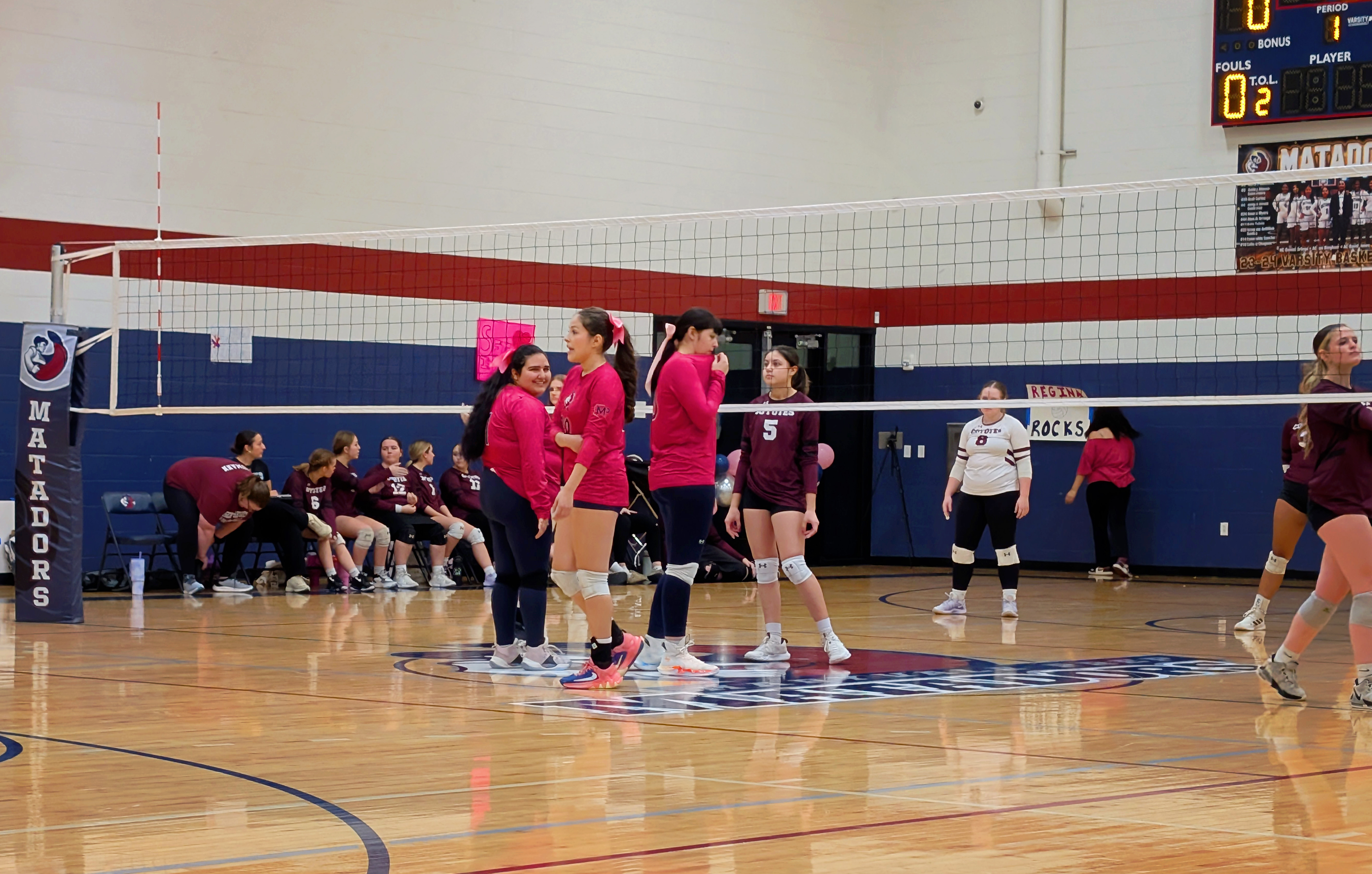 Here are my sad attempts at photos from the evening, all from my phone except the first which was taken by one of the staff before the game – each senior got to walk a red carpet up the middle of the gym with their parents and pose by the balloons. The gifts Natalie is carrying include a basket of treats, necklaces made of candy wrapped in cellophane, flowers, sash and tiara – they really go all out!