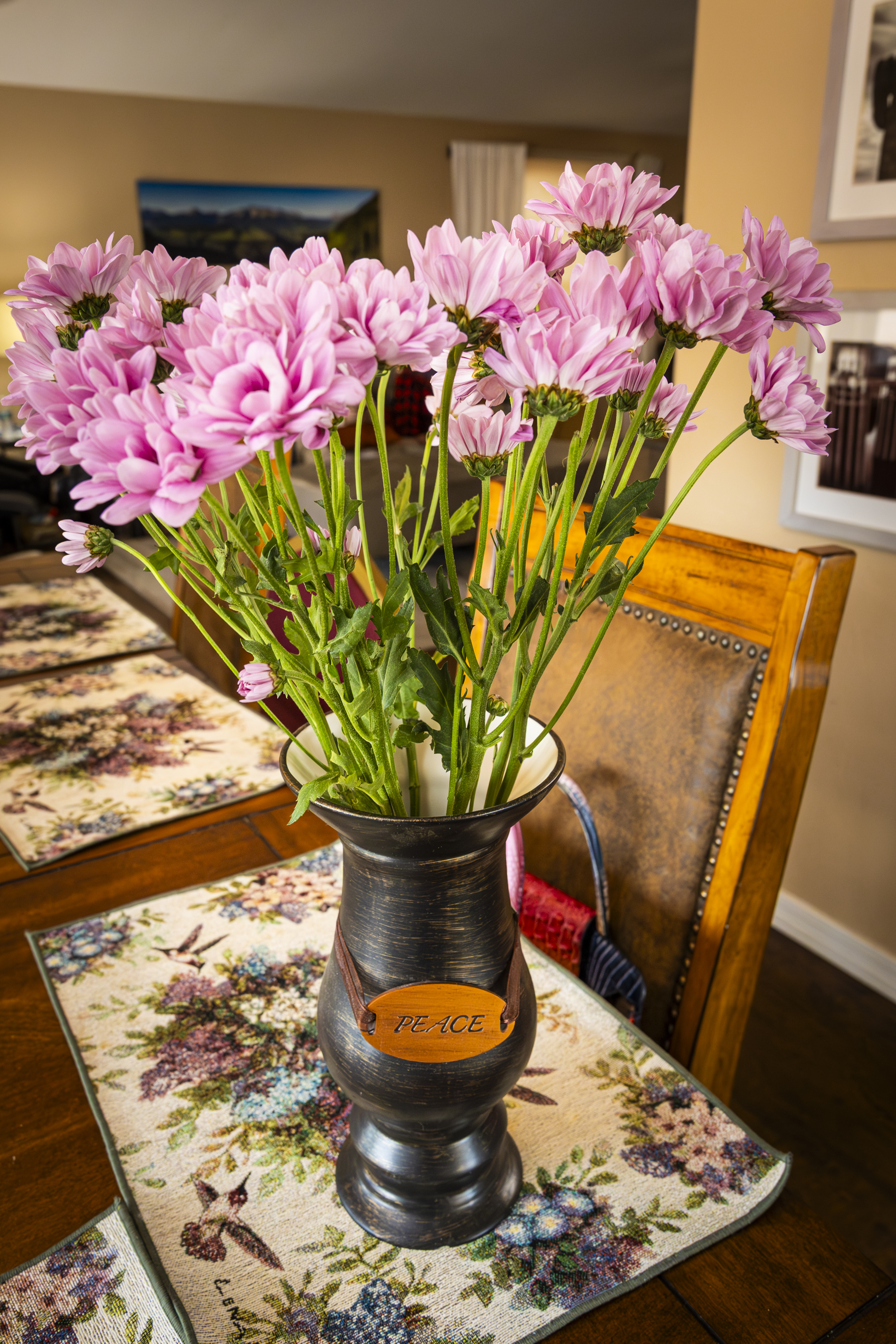 Back home again I got that dish mixed, got the buns prepared, to go with Grandma’s baked chicken, wild rice, and honeyed carrots, and set out the bowl of jelly beans (an Easter staple). Geneva and Mark were there when we got back too, and brought me a lovely bouquet for my birthday.