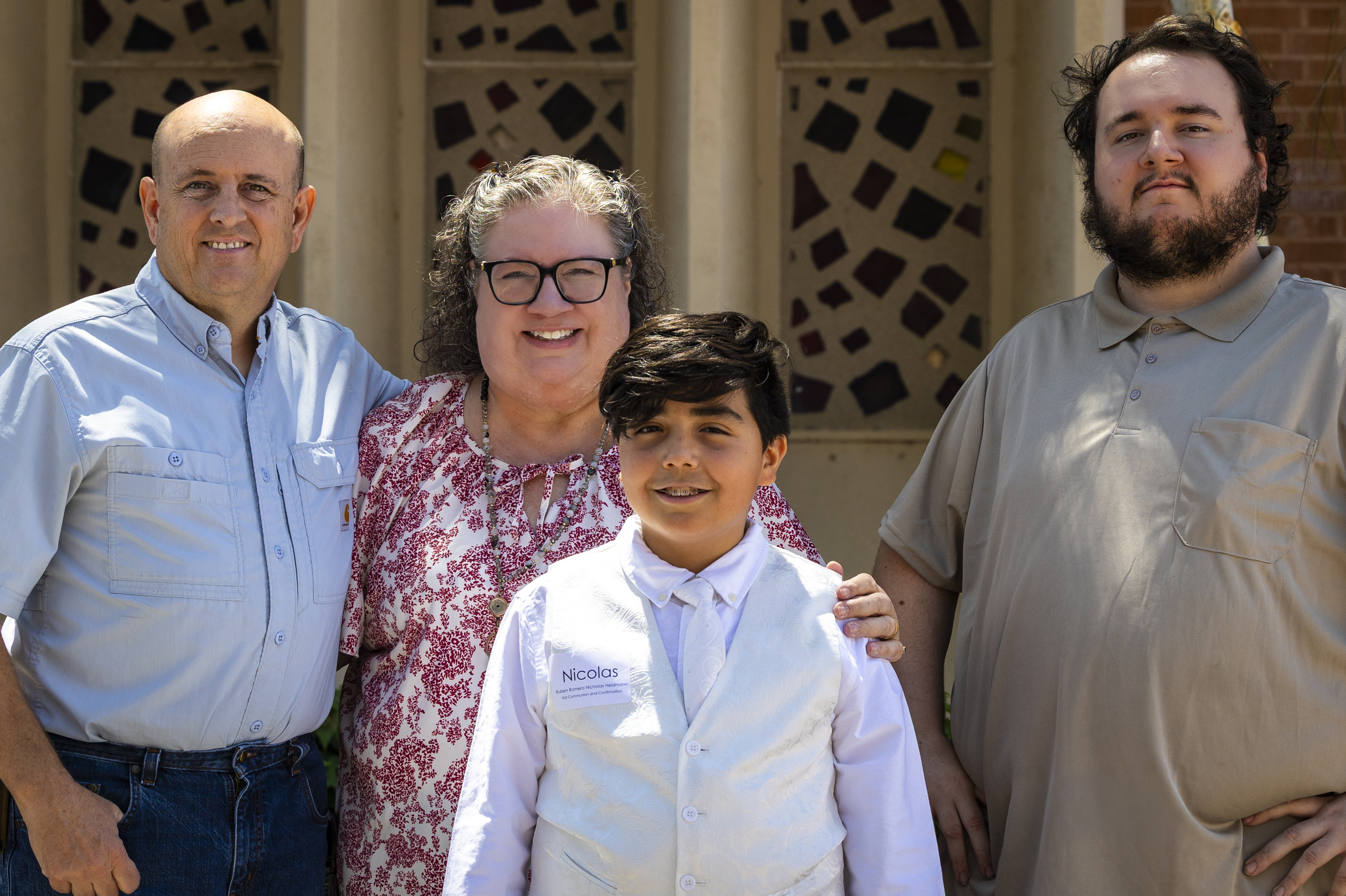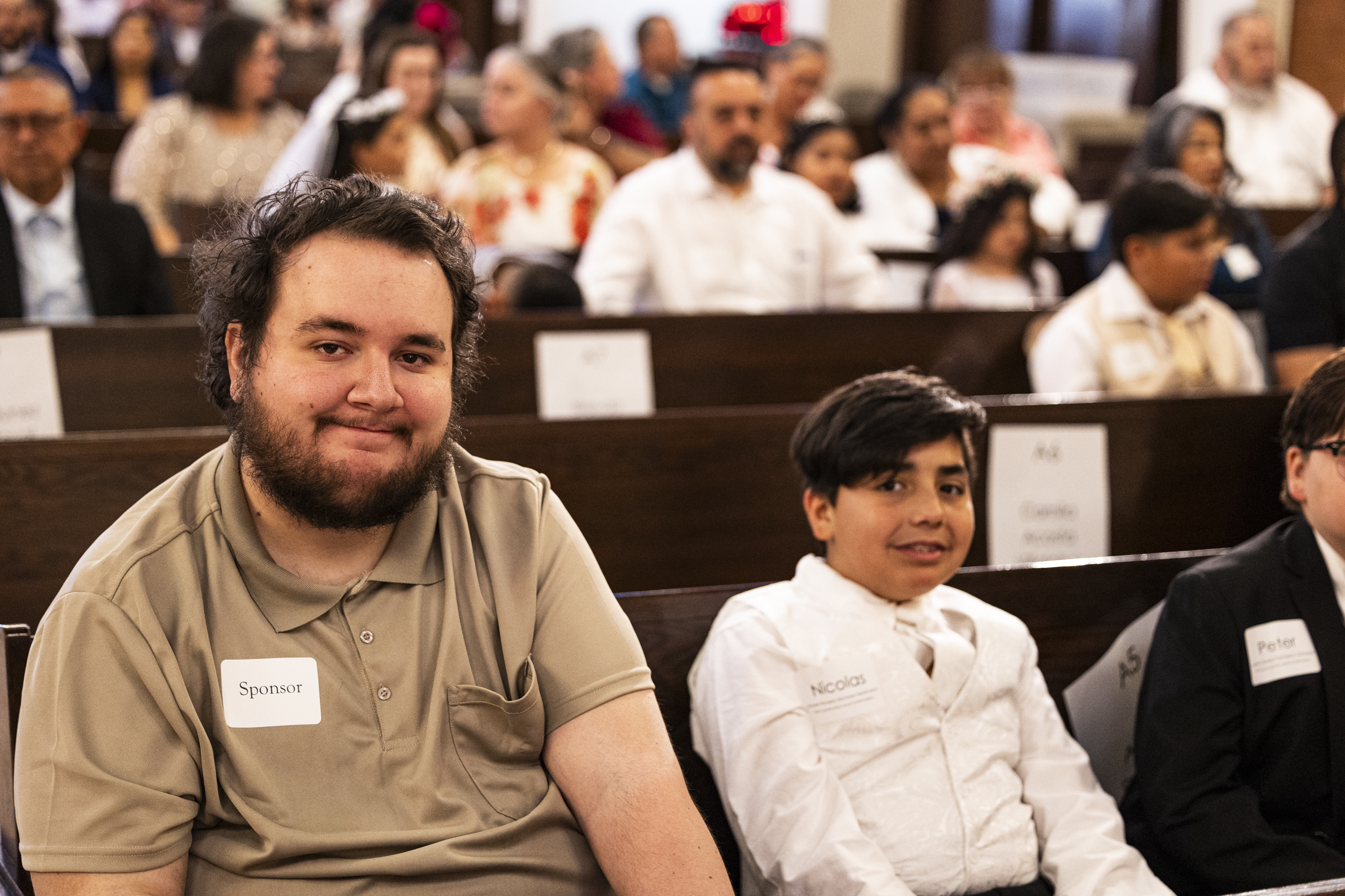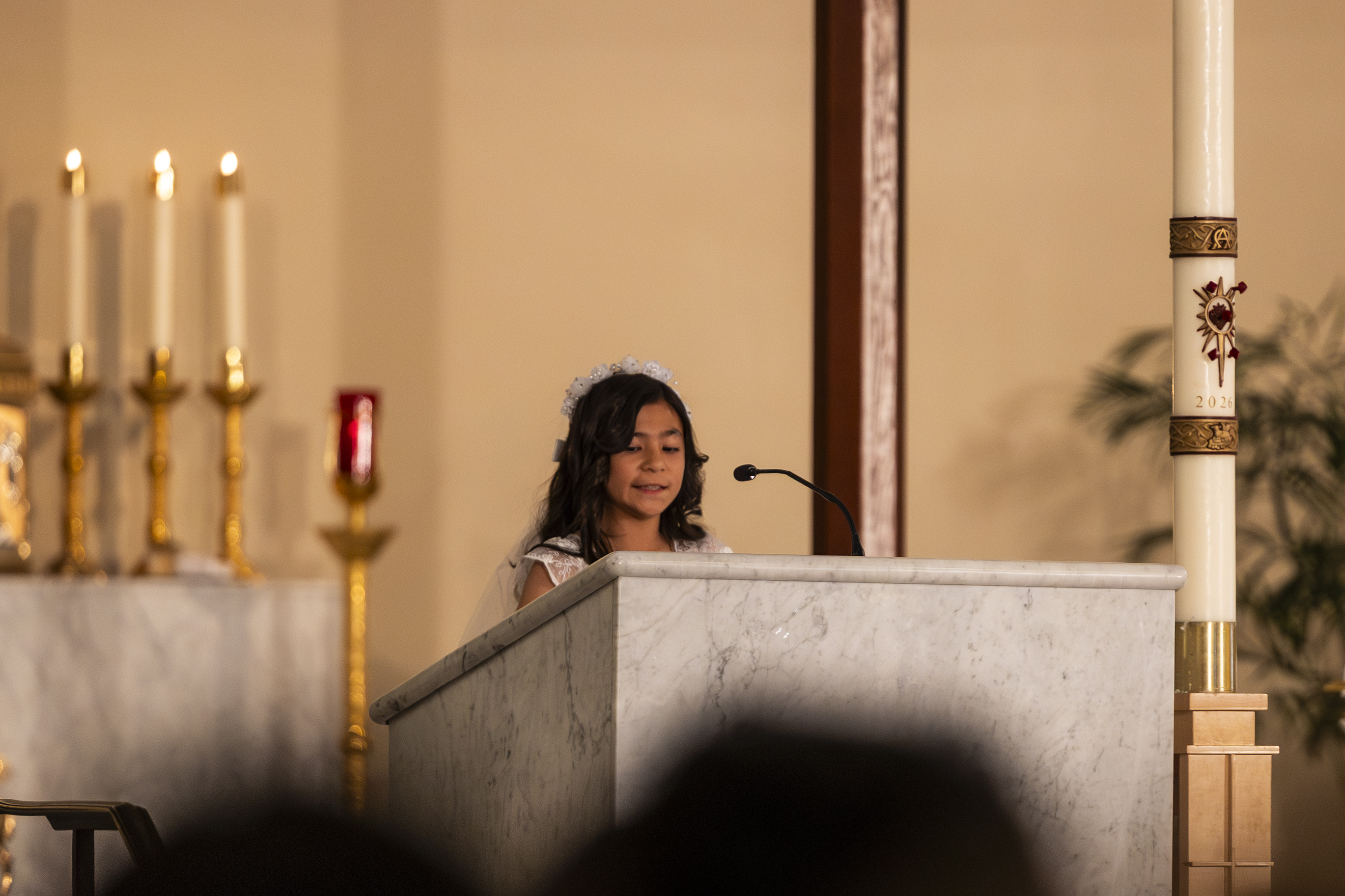 Mass was scheduled to begin at 10am. We arrived shortly after 9am, and Paul was just a few minutes before us. Even at that he was barely early enough to save the one seat I wanted. I knew I needed to be able to get up to the front at the right moment to get photos (among the throngs of parents vying for a prime spot) but because my walking is so limited, I needed to have my wheelchair parked in the handicapped spot right on the outside aisle on whichever side Ruben would be seated. Got the spot, and the two seats next to it in the pew for Paul and Ellie, and then it was just a matter of waiting for everything to get started.