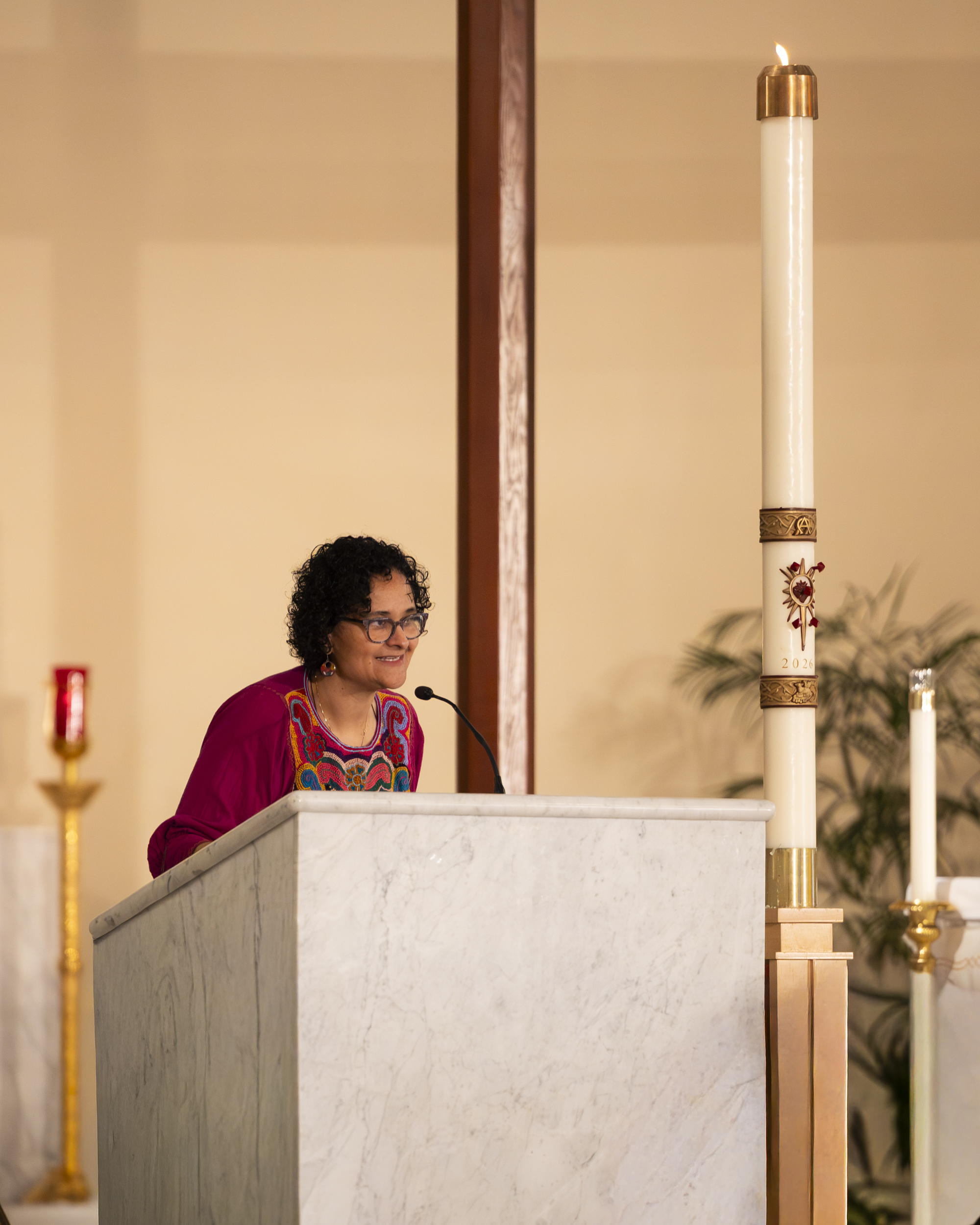 In between praying for the confirmands and their sponsors and families, I tested my camera settings with some images of the crucifix above the altar and Our Lady of Guadalupe directly in front of our section. Paul found Jacob and Ruben and tried to get a photo of them – unfortunately the settings weren’t quite right, but he got something to commemorate the moment at least. Also got a photo of Miss Ana Luisa, Director of Religious Education, giving last minute reminders and admonishing everyone to remember where we were and, essentially, “pipe down!”