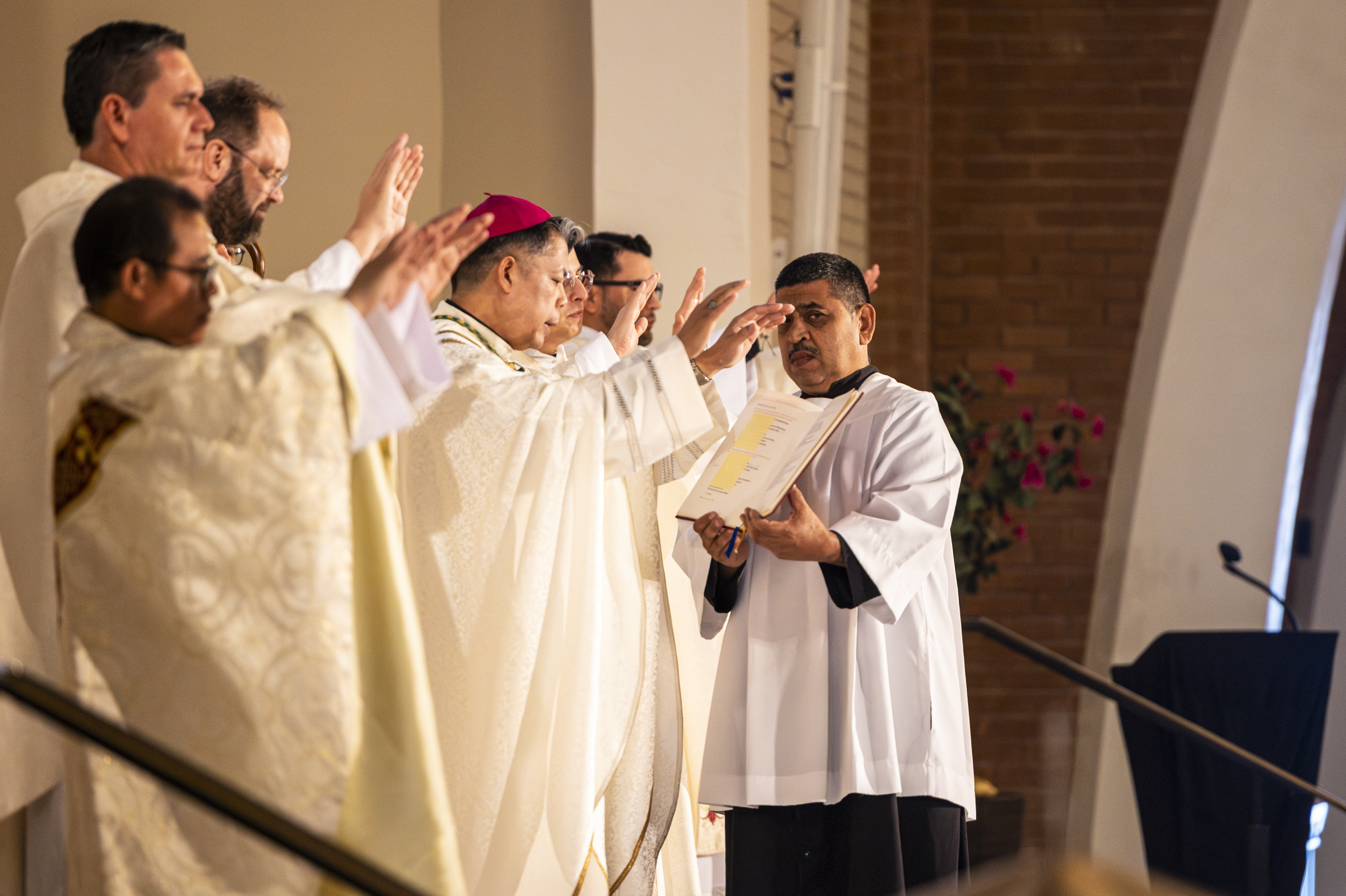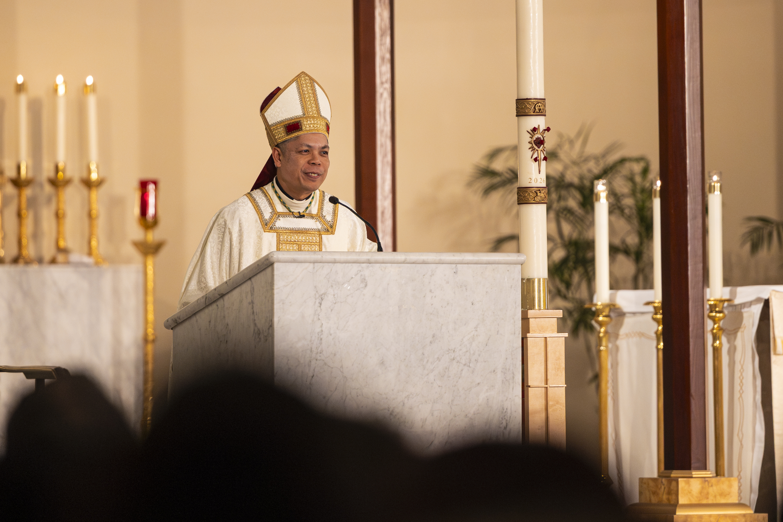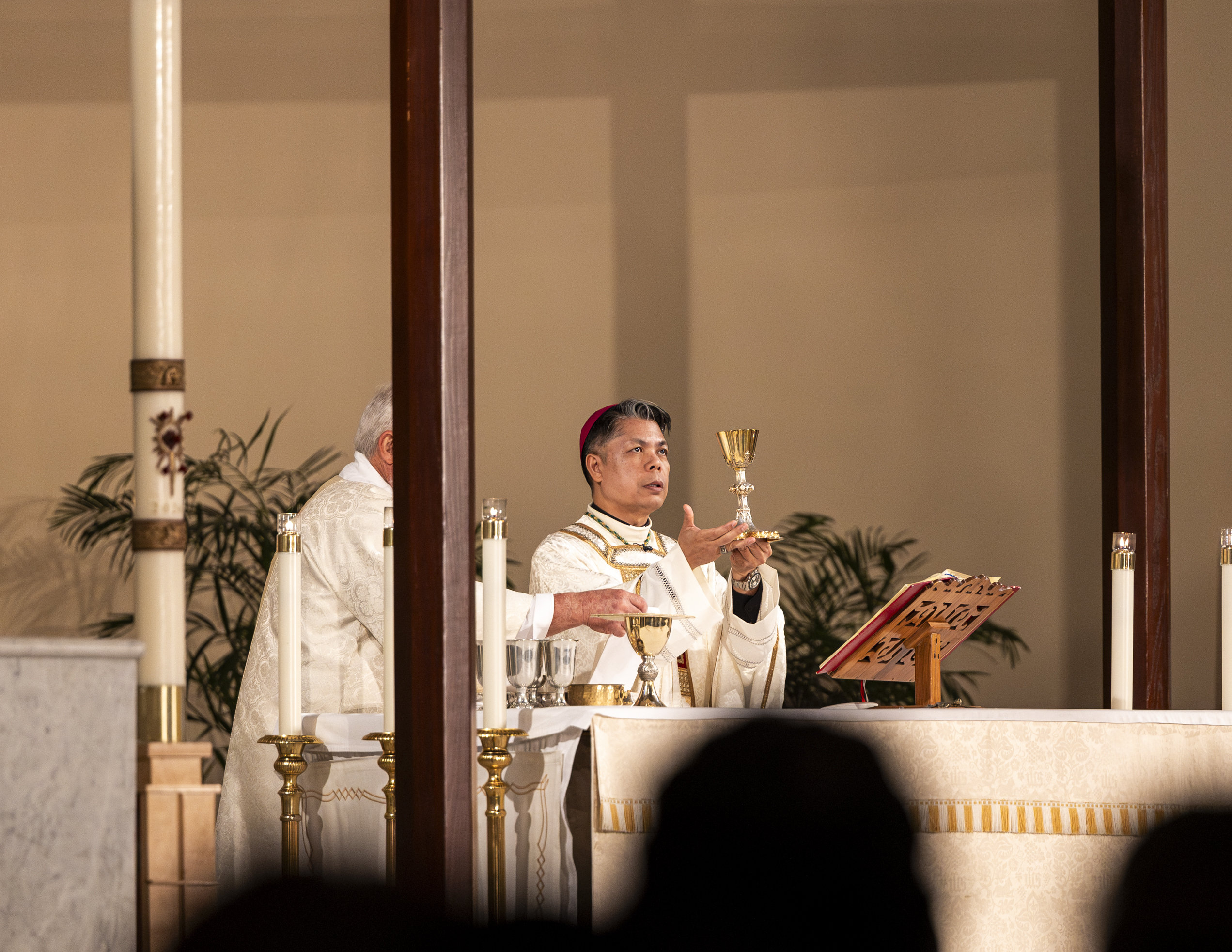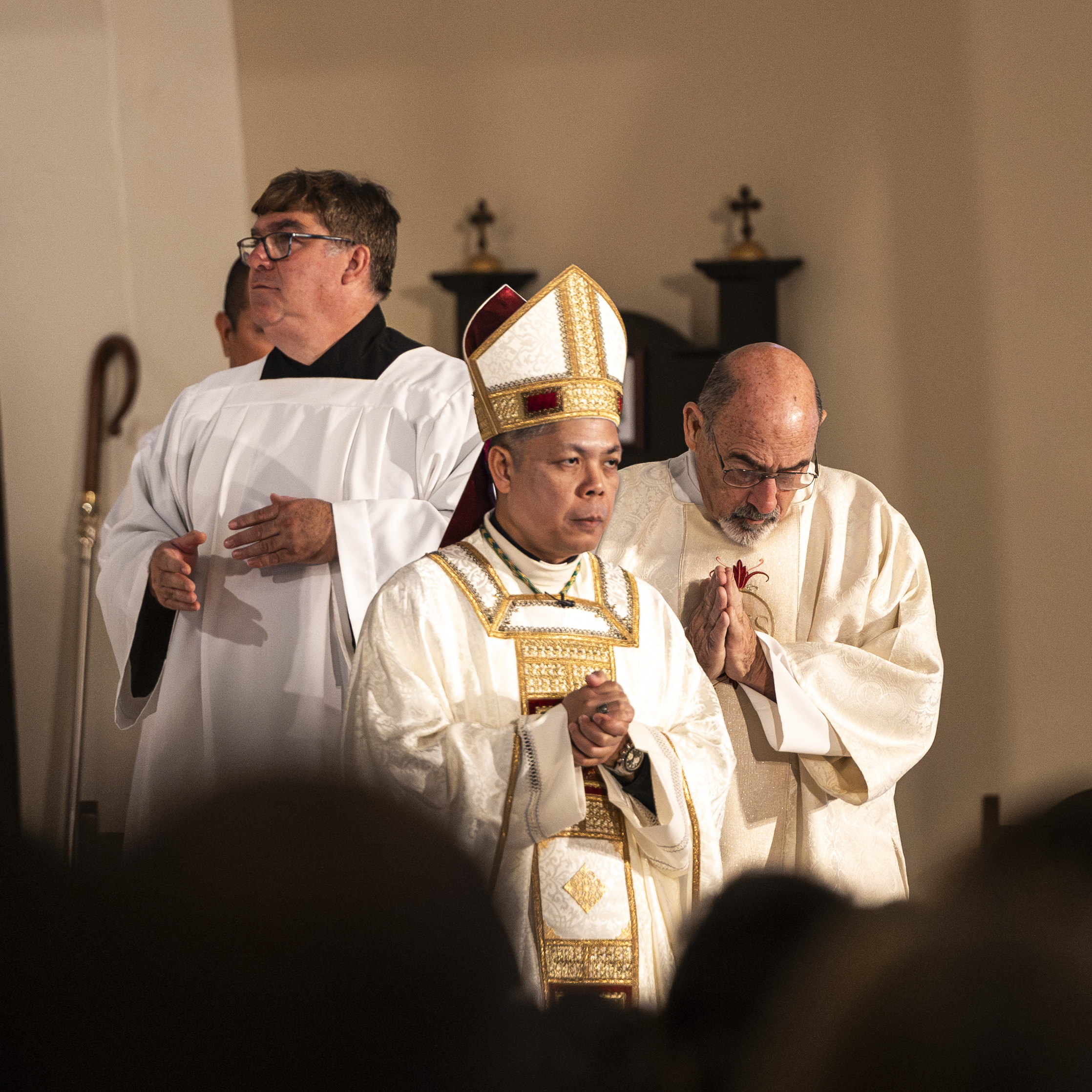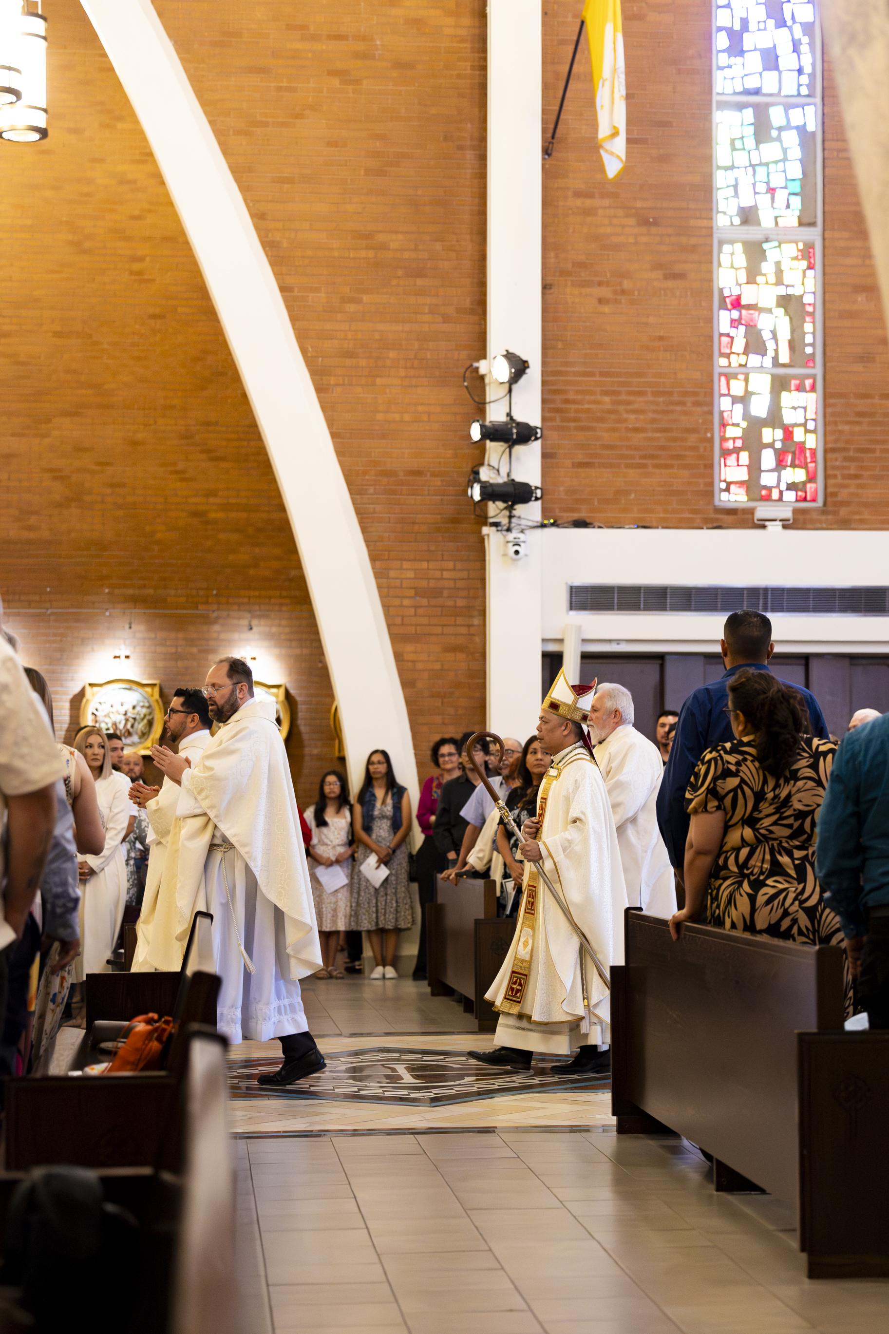As the bishop and priests processed in I was situated perfectly to grab a photo of them from my spot on the back row of the front section (and you can see the people lining the walls on the other side of the church!). We didn’t know until they walked down the aisle that we were to have our brand new bishop, Bishop Bui! What a wonderful surprise!
